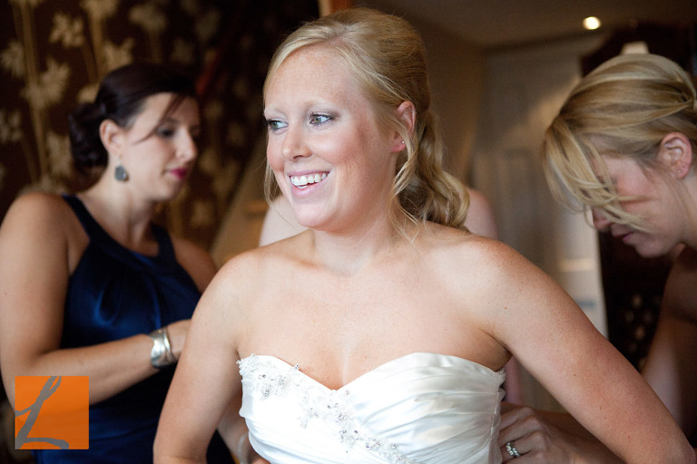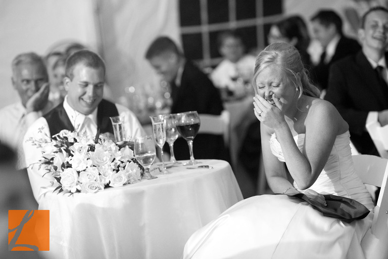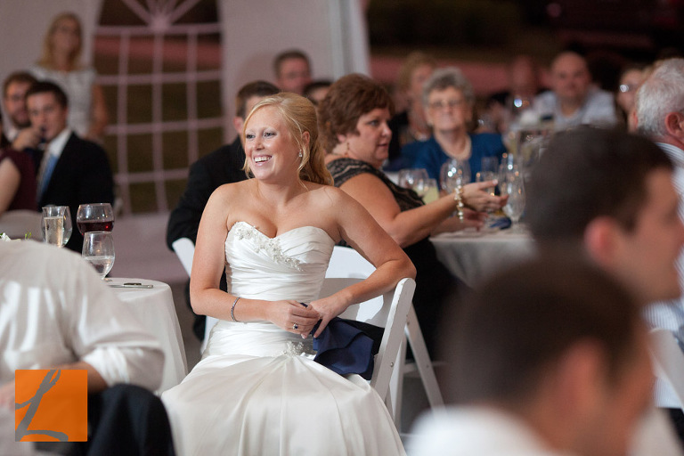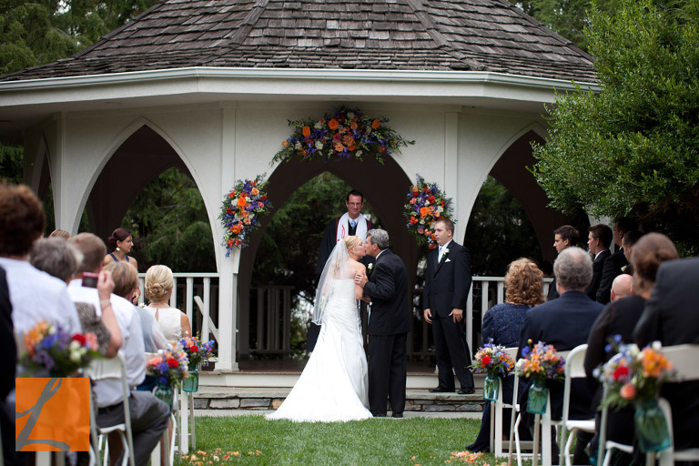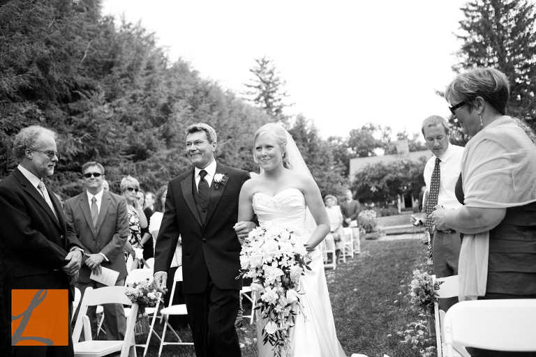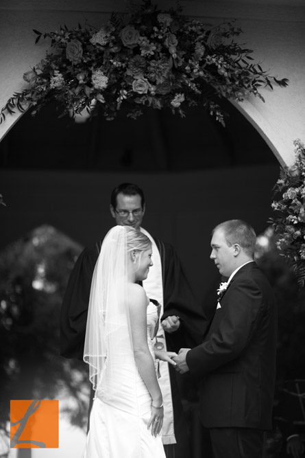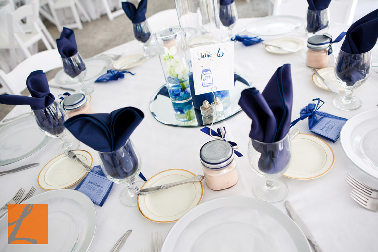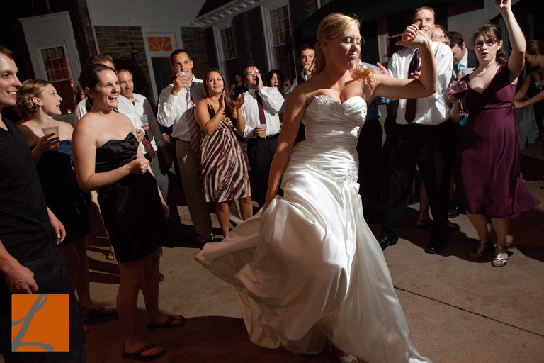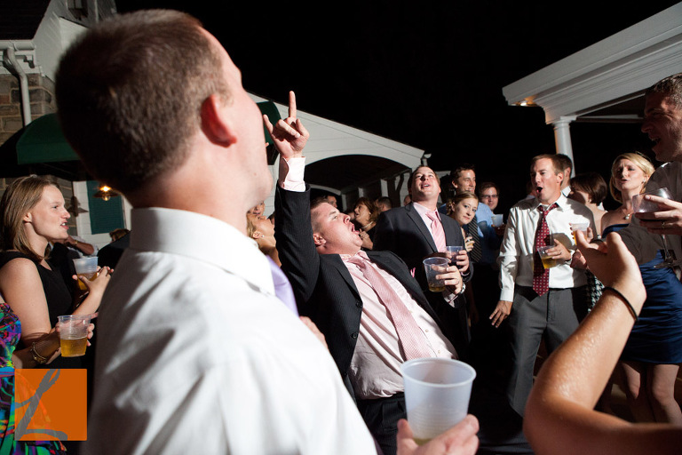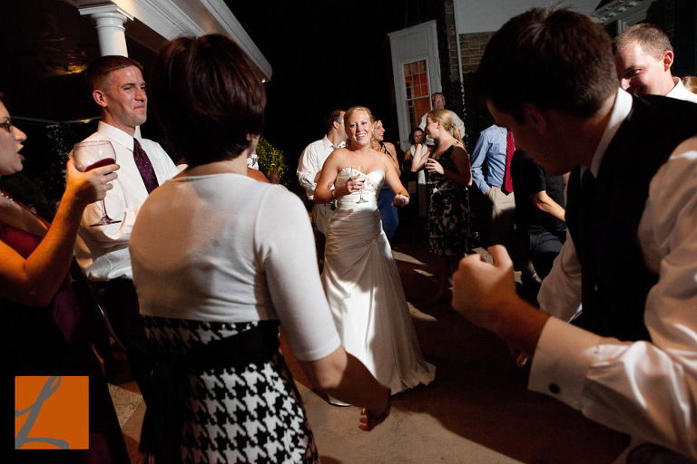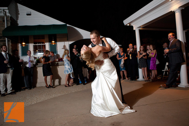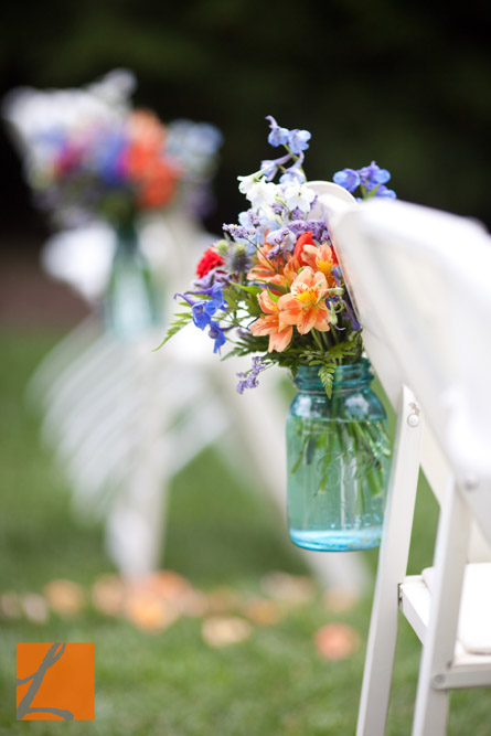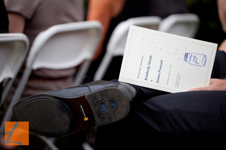 Kim and Scott nervously watched the weather forecasts all week, tracking Hurricane Irene’s path up the east coast. They were blessed – It just missed our region! They chose the beautiful Nesselrod on the New River in Radford, Virginia and said their vows next to the gazebo. Their friends and families enthusiastically took to the dance floor afterwards and had a hilarious time. Their wedding had a firefly theme with hand painted programs and table cards, along with mason jars filled with glowing fireflies. Each guest received a packet of Kim’s famous pretzel dip which she religiously prepares for every Virginia Tech football tailgate party. These diehard hokies love their football so much a toast was given during the reception for a great upcoming season!