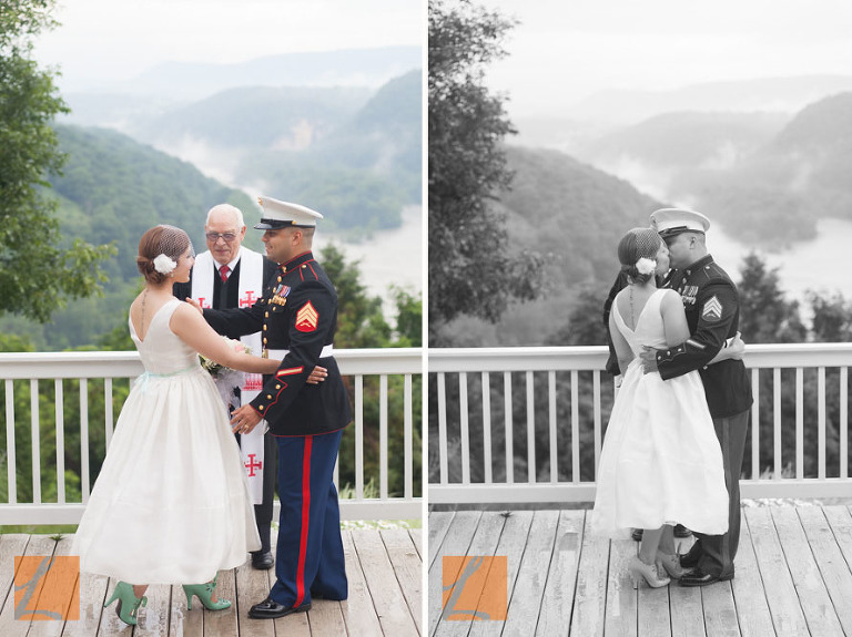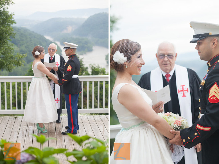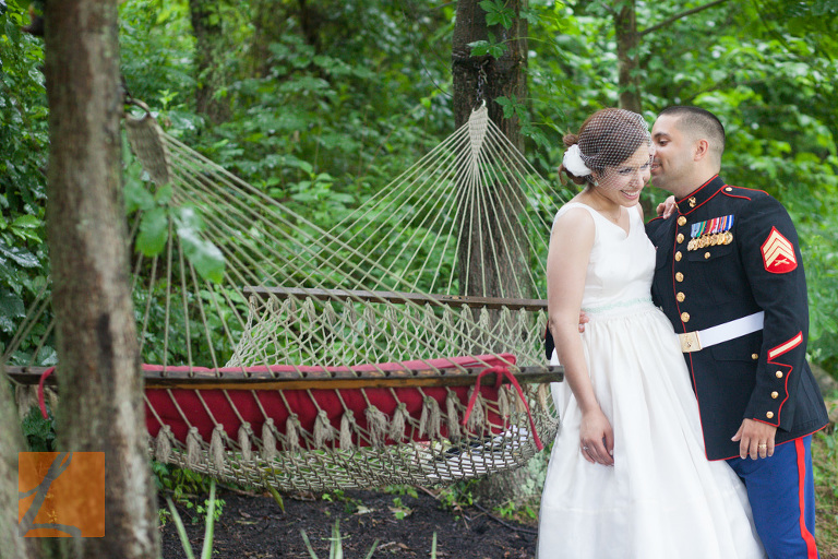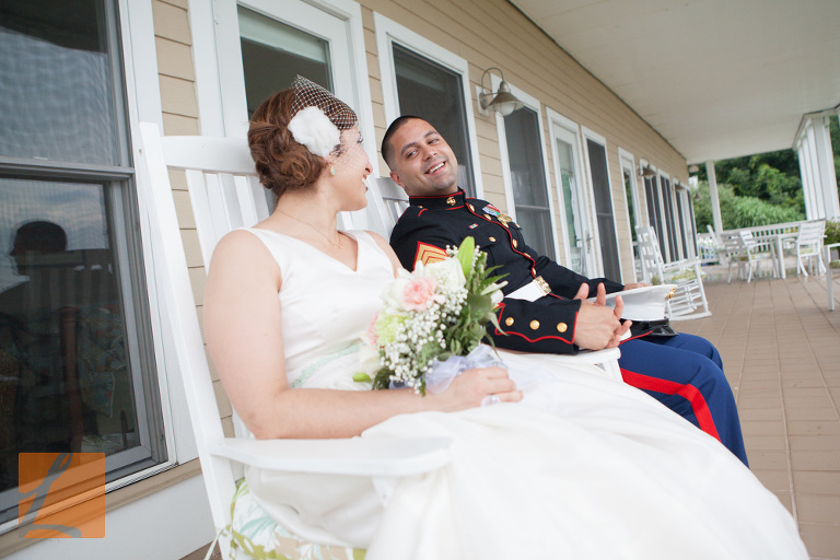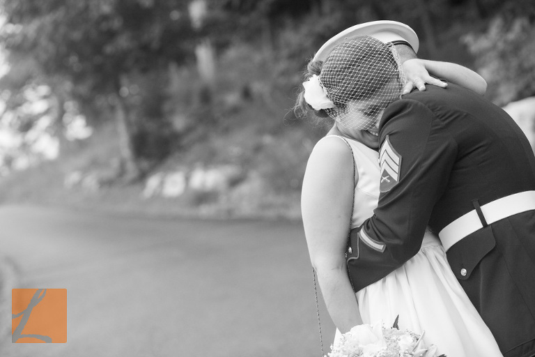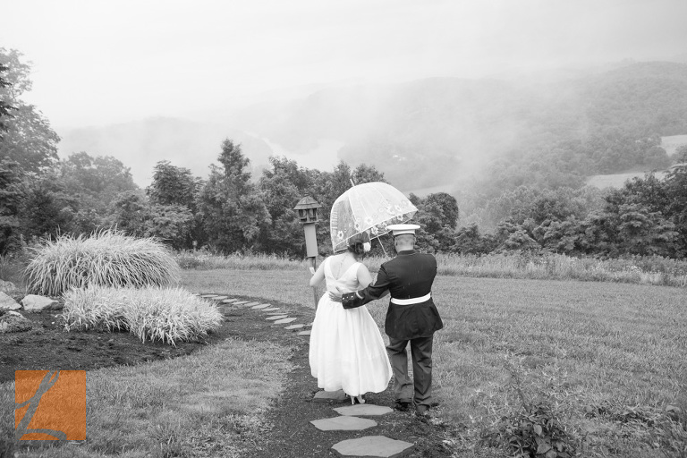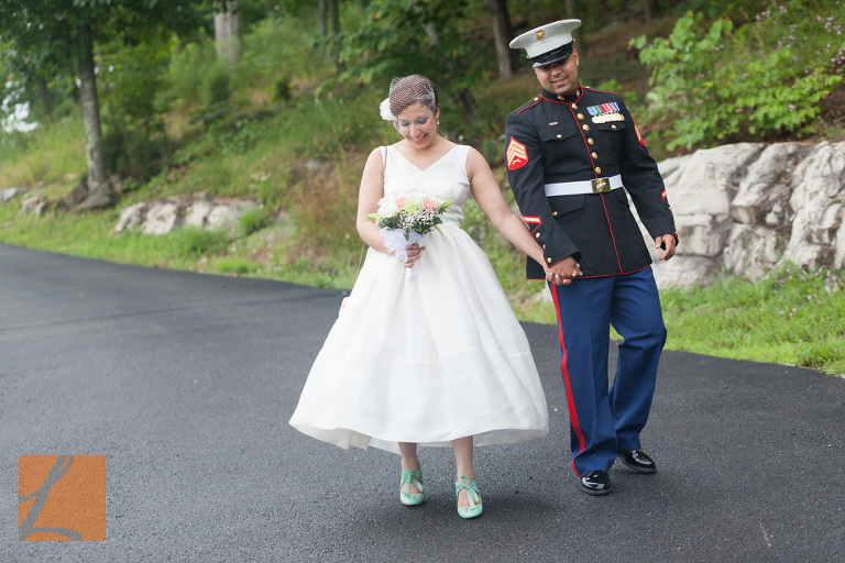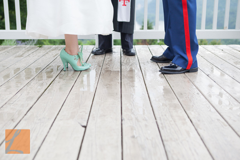 When Sarah and Jason are together, you will probably find them watching a movie, playing a board game, or hiking. An intimate wedding with just the two of them was planned at one of the most beautiful places in Virginia, the Inn at Riverbend in Pearisburg. While staying at this bed and breakfast, their visit included renting movies, playing scrabble, and a hike was planned for Cascade falls! Sarah fell in love with a pair of turquoise shoes and the rest of her vintage look continued from there! And Jason looked so handsome next to her in his Marine blue dress uniform. The rain didn’t stop these two for their alone images, instead they brought along an umbrella and took cover under the trees!