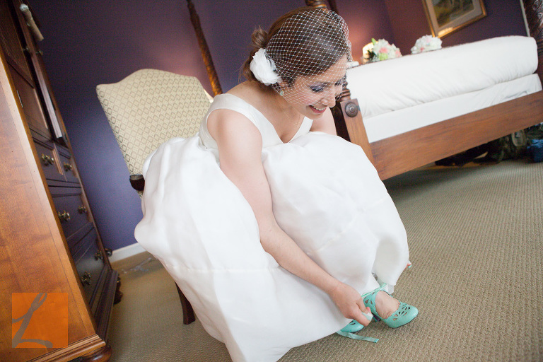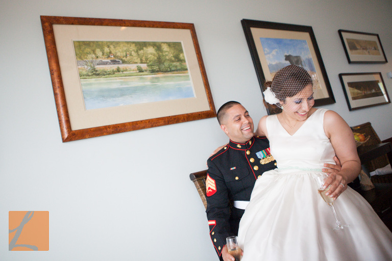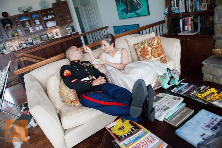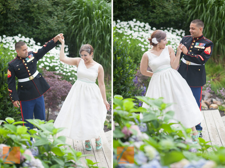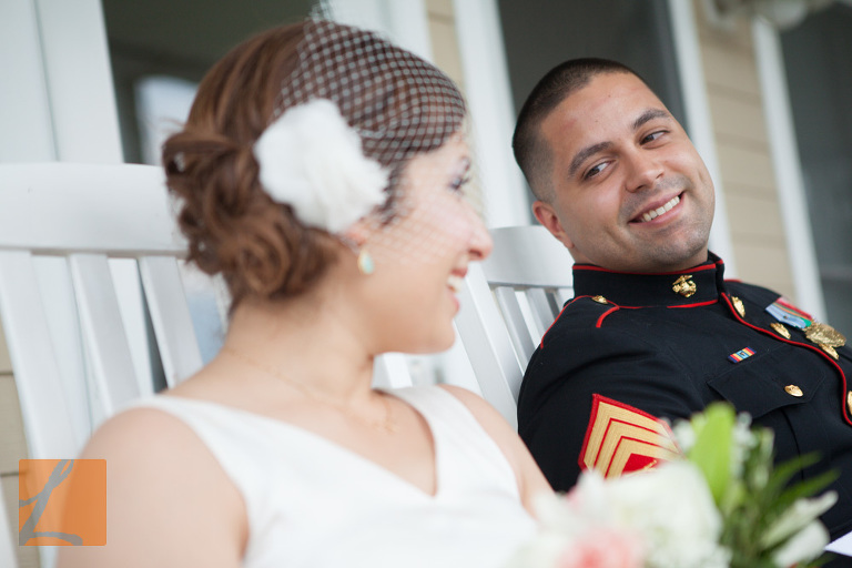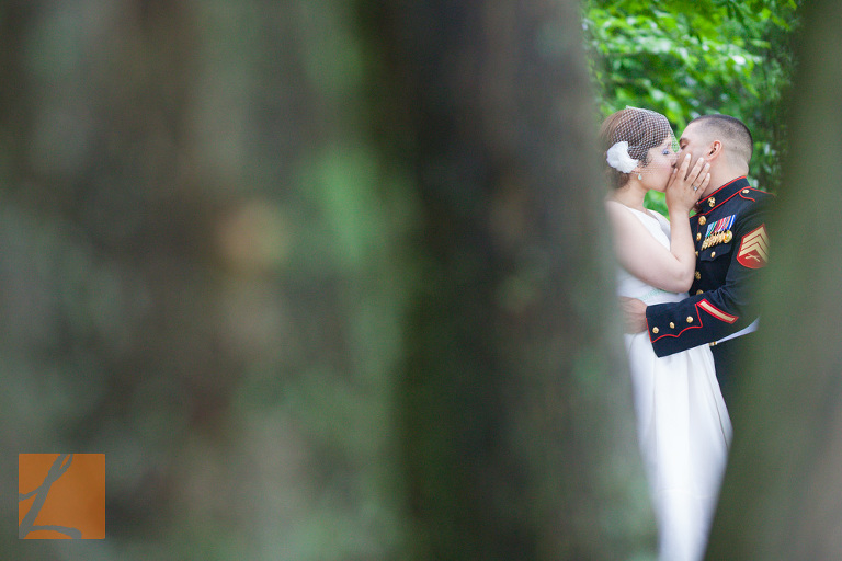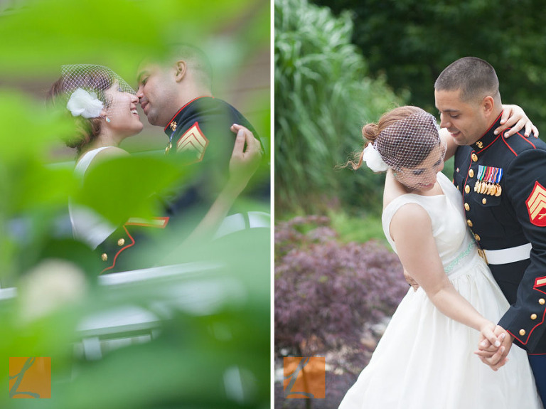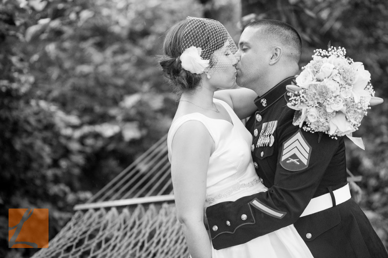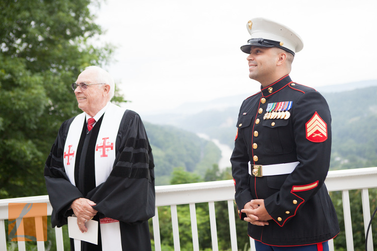 When Sarah and Jason are together, you will probably find them watching a movie, playing a board game, or hiking. An intimate wedding with just the two of them was planned at one of the most beautiful places in Virginia, the Inn at Riverbend in Pearisburg. While staying at this bed and breakfast, their visit included renting movies, playing scrabble, and a hike was planned for Cascade falls! Sarah fell in love with a pair of turquoise shoes and the rest of her vintage look continued from there! And Jason looked so handsome next to her in his Marine blue dress uniform. The rain didn’t stop these two for their alone images, instead they brought along an umbrella and took cover under the trees!