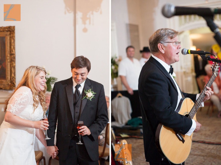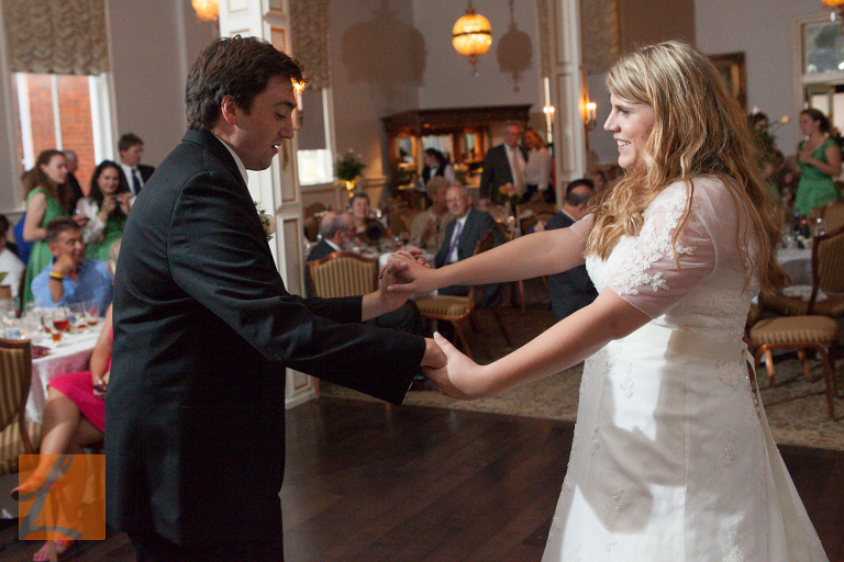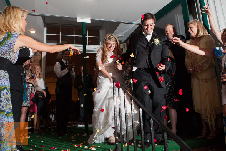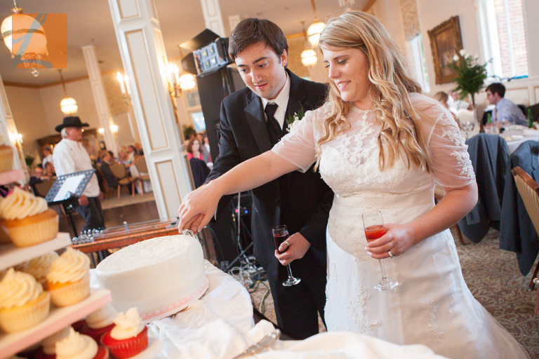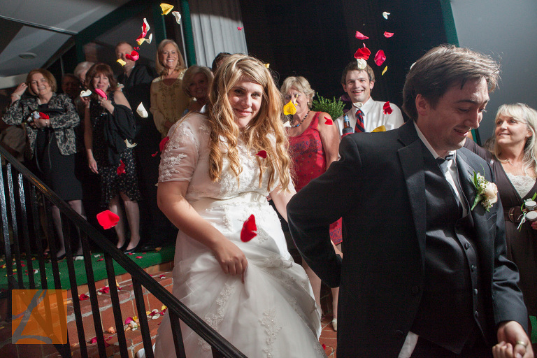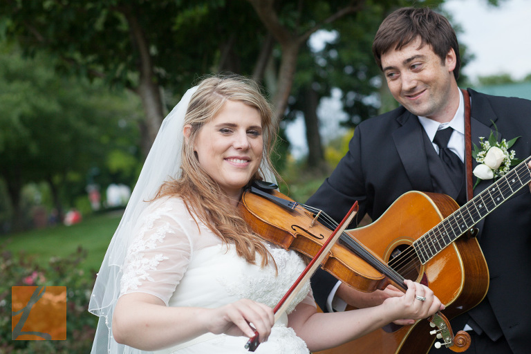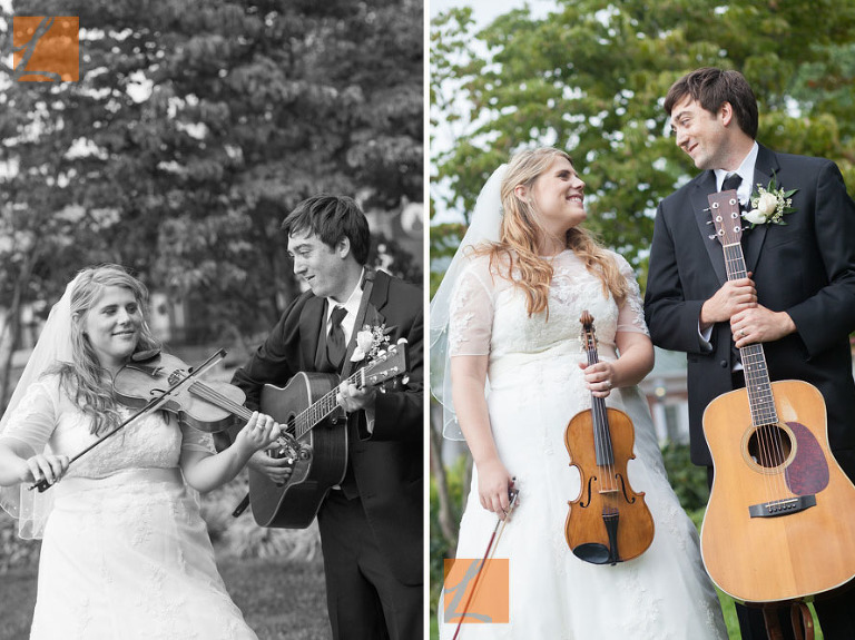 Sarah and Aaron met while both attending Emory and Henry College so it was perfect that they chose to marry at the chapel on campus. For the reception, they chose the Martha Washington Inn, one of my favorite venues with a southern feel. These two are very musical with Sarah playing the fiddle and Aaron playing the guitar so we brought these along for some pictures! To get from one venue to the other, they rented the Abingdon trolley so the bridal party could all ride in style to the reception. A cute moment during the reception was when Sarah’s Dad sang a special song to the couple and played his guitar. After lots of dancing and cupcakes, Sarah and Aaron said goodbye while guests threw rose petals on them!