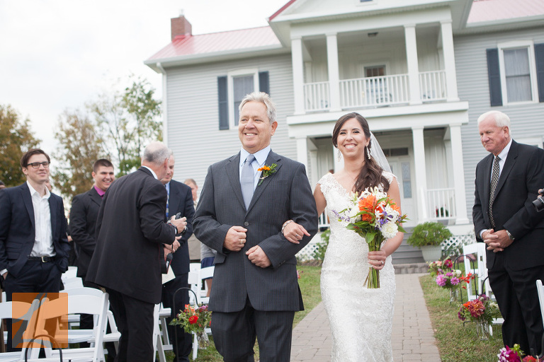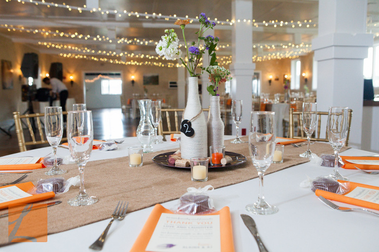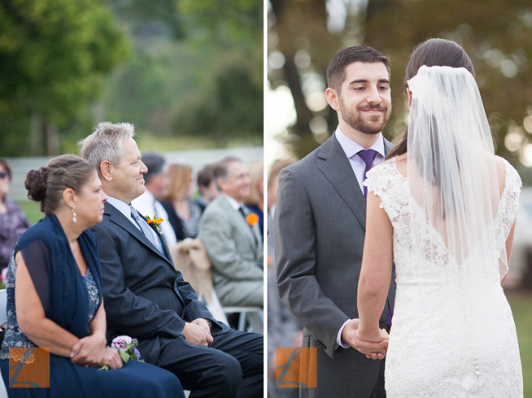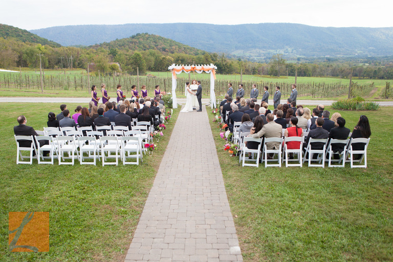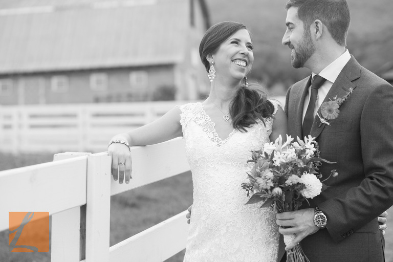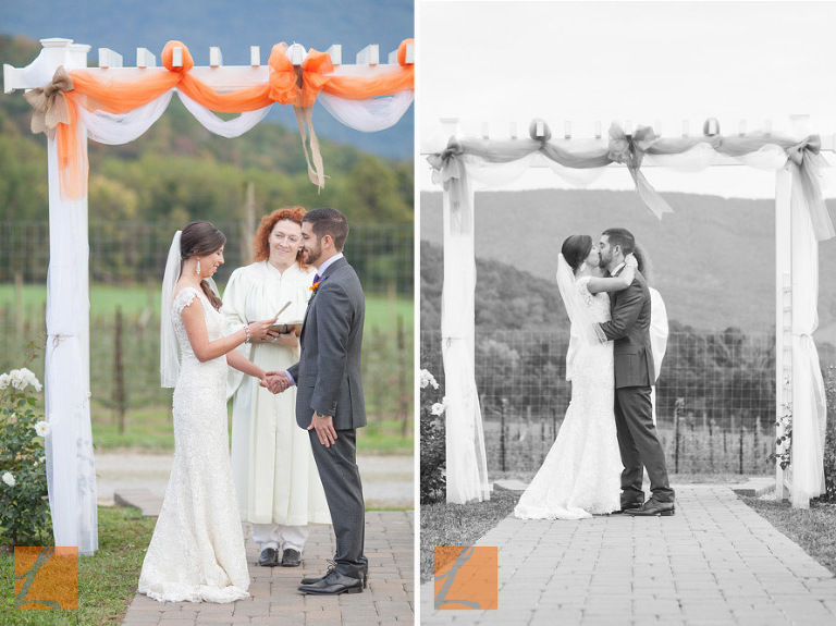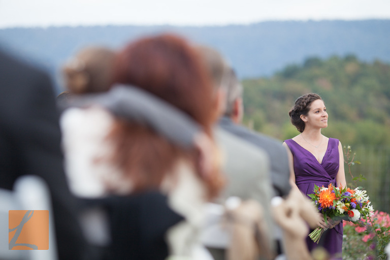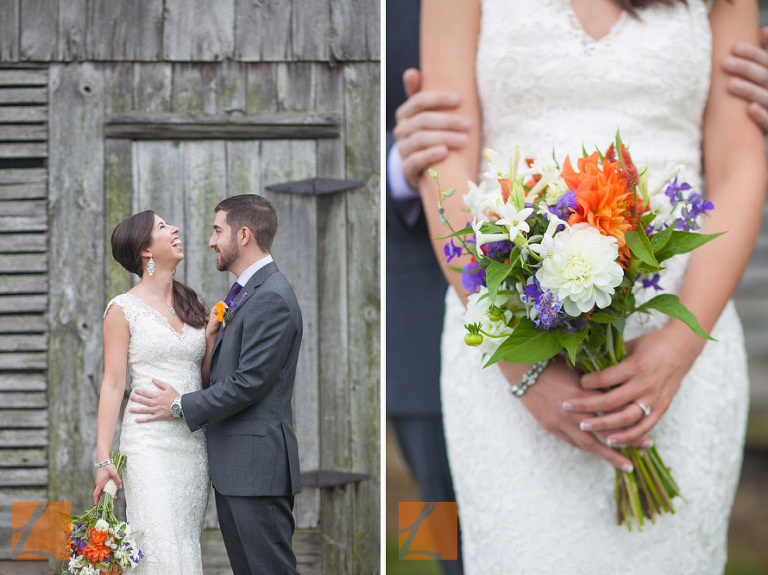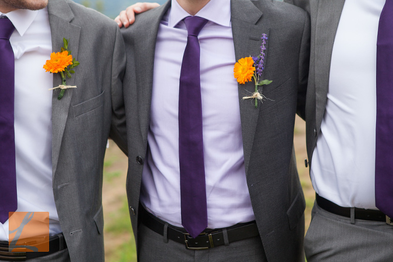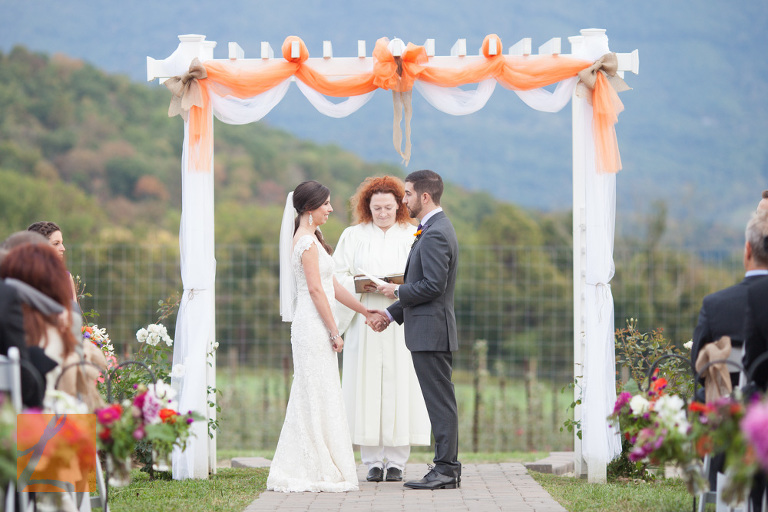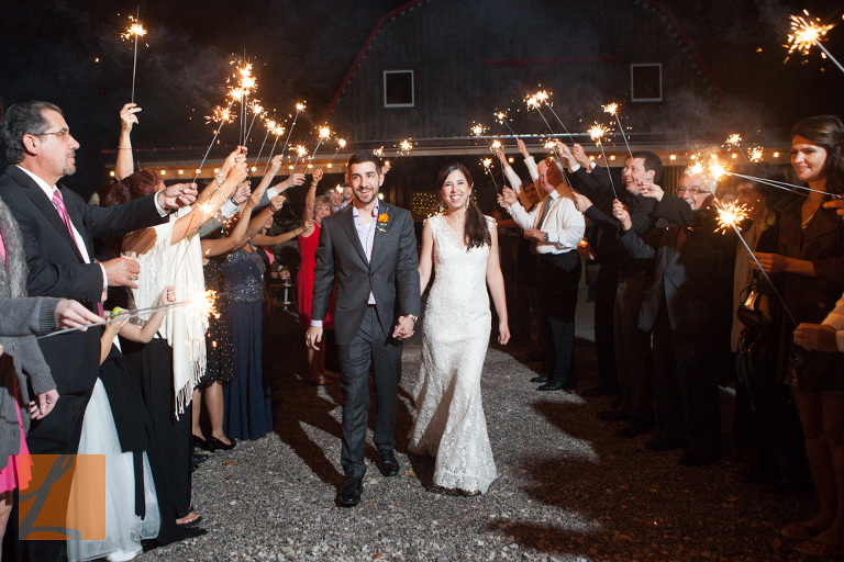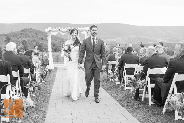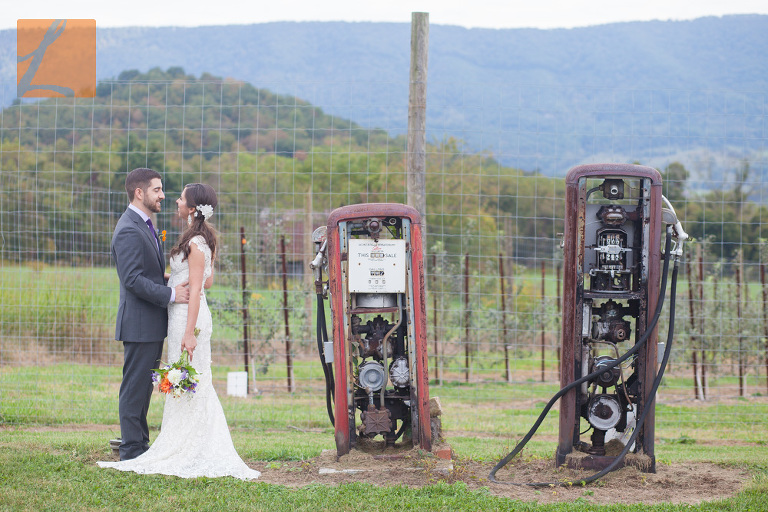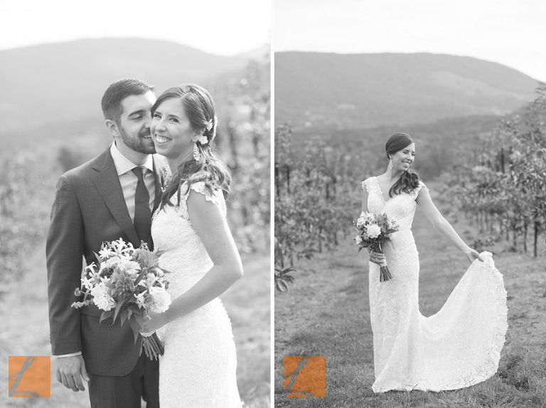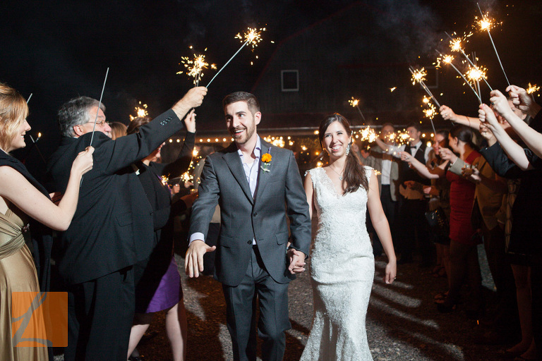 Alaina and AJ picked a gorgeous new venue that really shows off the beauty of Giles County, Doe Creek Farm in Pembroke, Virginia. Doe Creek Farm also has an apple orchard and they recently planted all new apple trees. We were lucky enough to catch the first crop of apples and the orchard itself was so beautiful for photographs! Alaina is a graphic designer and you can really tell from how the place was decorated with custom placecards on apple butter favors, thank you notes on each table setting, and birds seen on the stationary, the cake topper, and the bridemaid’s necklaces. The beautiful flowers were brought in by Stonecrop Farm and the colors really popped next to Alaina’s colors of purple and orange. After a perfect ceremony complete with a congratulations from a cow down the field, the party started in the packing house. Alaina and AJ exited through sparklers and are now having a blast and Hawaii!