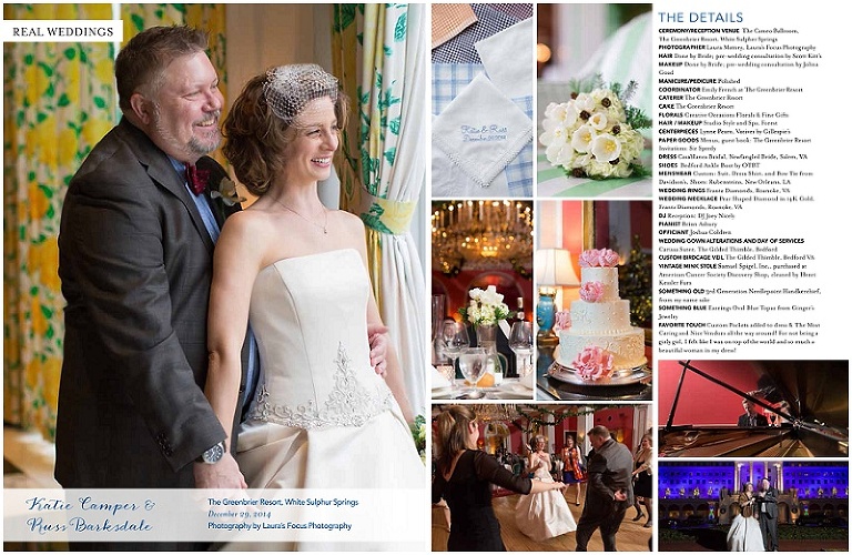 The Wedding Planner Magazine just released their first issue covering the southern region of West Virginia. I was so excited to have Katie & Russ’ wedding at The Greenbrier featured in the Real Weddings section! Here is a peek at the spread and copies can be picked up today!