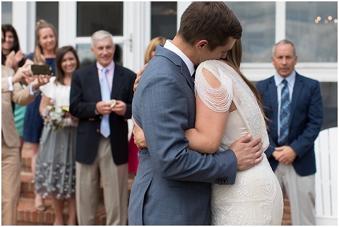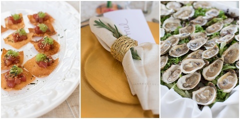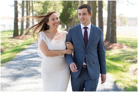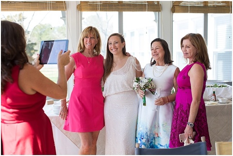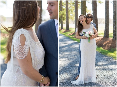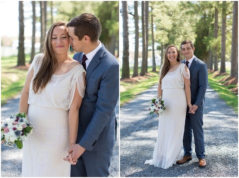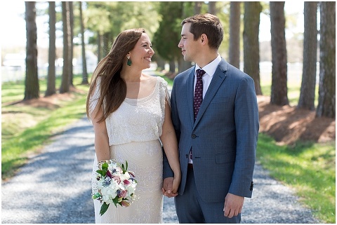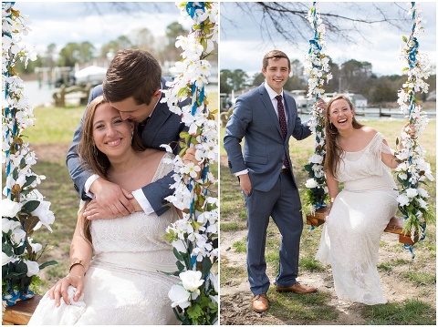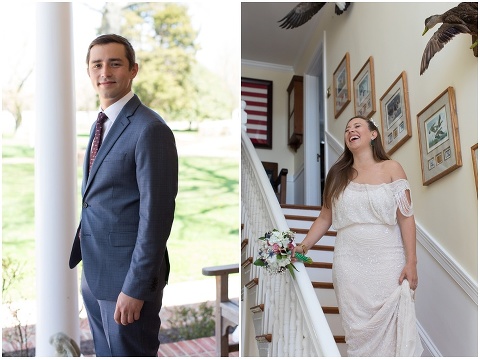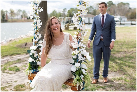 Pilee Blue & Sam planned the sweetest, intimate wedding ceremony on a picturesque, bayside farm in Royal Oak, Maryland! The vows took place on Tuesday with only 16 of their closest family members in attendance including Sam’s 90 year old grandmother. Pilee wore the most beautiful gatsby inspired wedding gown by designer Reem Acra. The family hand crafted several of the details for this day including all of the flower arrangements and bouquet, the flower decorated wooden tree swing, placecards and chalk signs. Not to mention that Pilee’s sister and Mom are jewelry designers so there were some beautiful pieces that Pilee wore and custom cufflinks for Sam! A casual lunch on the back patio was catered by Bluestone Restaurant, managed by Sam’s sister. Everything came together perfectly and these two will continue the celebration next month with a party in Mexico!