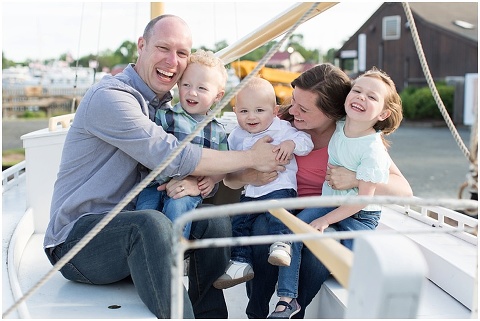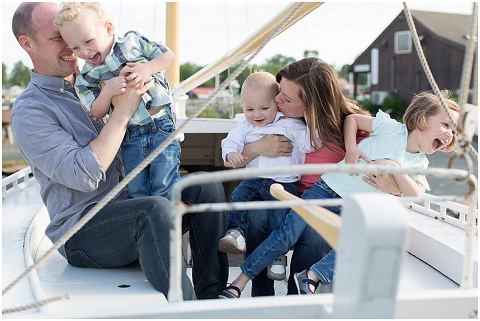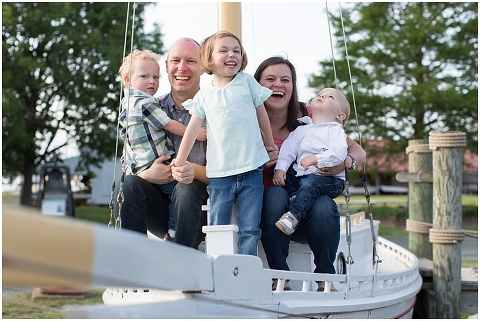 The Jackson Family traveled to St. Michaels, Maryland for some fun, spring family portraits at the Chesapeake Bay Maritime Museum! All three kids, Emma, Liam and Patrick, were so cute and full of energy. We walked around to explore the campus and stopped at a small sailboat so the kids could do a little steering. They also threw stones in the bay, checked out the oysters, and did a little swinging with Mom and Dad. To end the session, we stopped at Justine’s Ice Cream Parlor for some ice cream and milkshakes which was a hit for everyone!