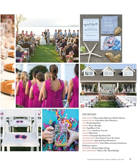 I have always loved the look of Washingtonian Bride & Groom Magazine and have dreamed of having one of my weddings included! My dream came true with the latest issue that just hit the stands this month and I could not be more excited! April & Brett’s beachy, bayside wedding at the Chesapeake Bay Beach Club in Stevensville, Maryland was included. The spreads turned out beautiful with their bold color palette with pops of hot pink. Thank you so much to Washingtonian Bride & Groom and to all of the vendors who made this day so beautiful!