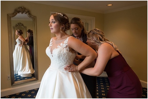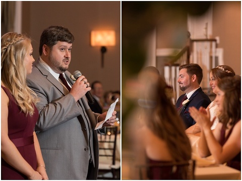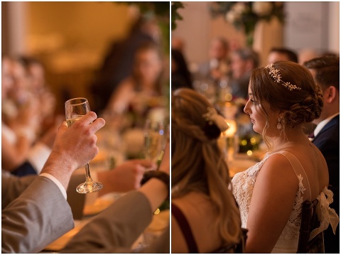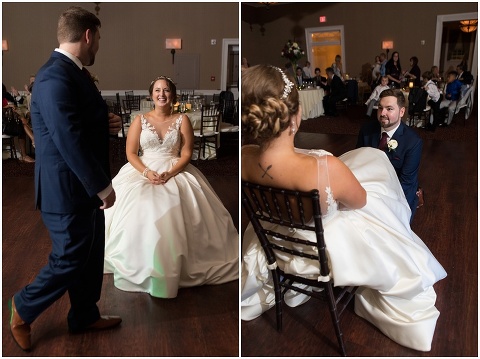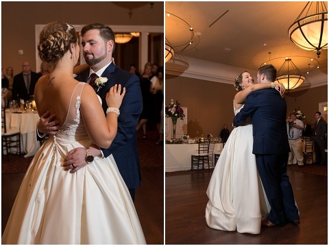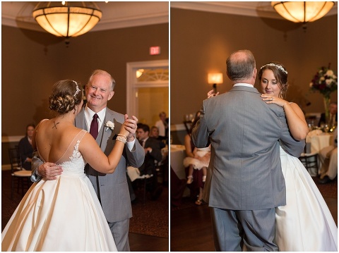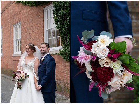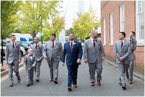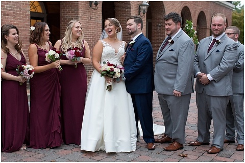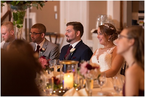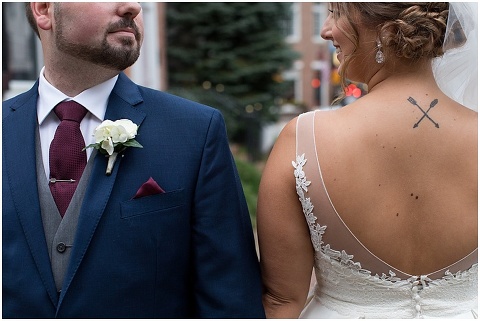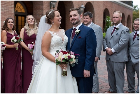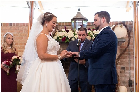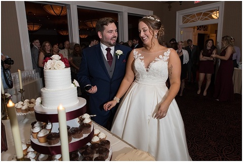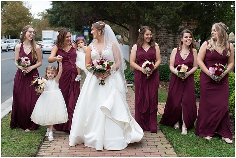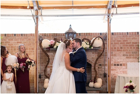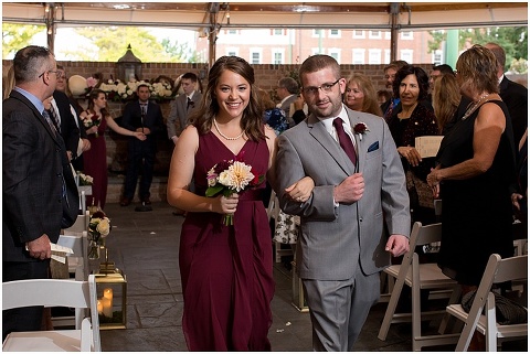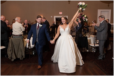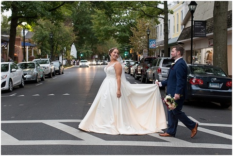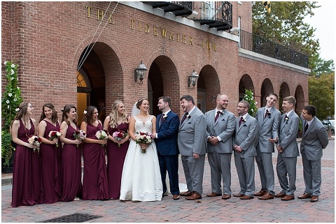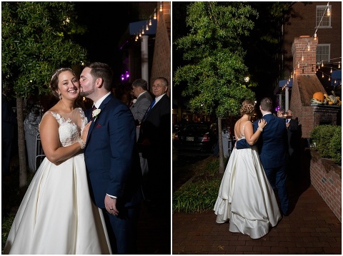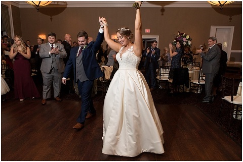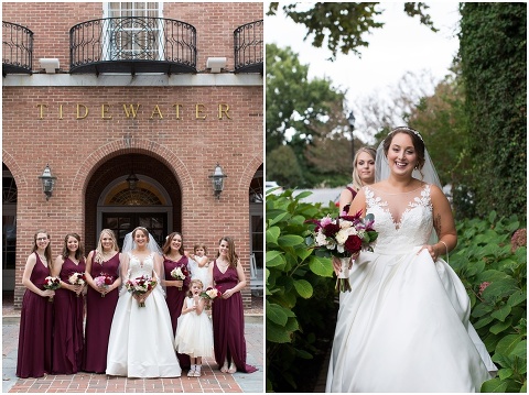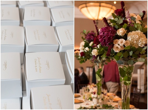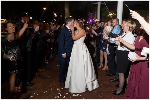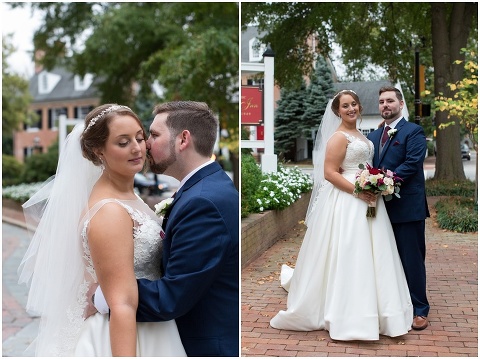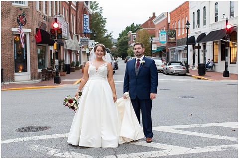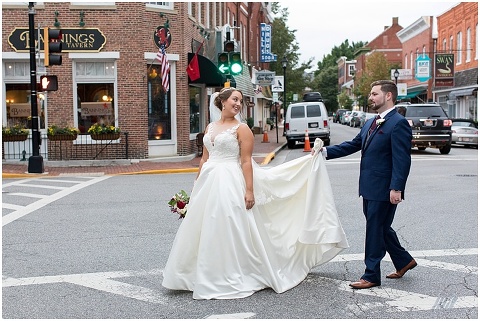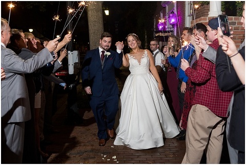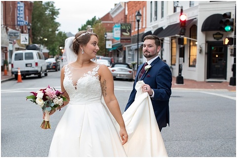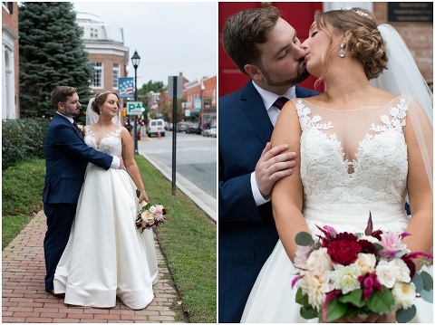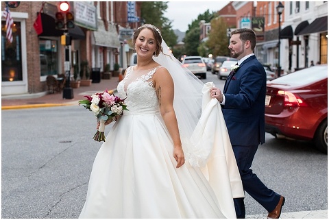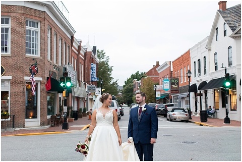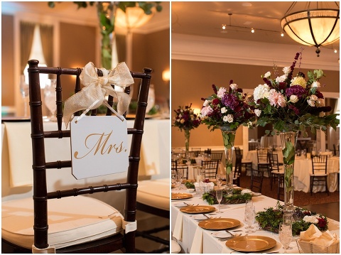 Jessica & Andrew’s fall wedding at The Tidewater Inn was perfect from start to finish with a mix of wine and gold colors, pumpkin decor, and the most gorgeous tall florals on the head table by Seaberry Farm. These two met through a friend and had their first date in downtown Annapolis over sushi. When Andrew decided to pop the question, he bought Jessica a beautiful Wolf Designs jewelry box that she had always wanted since she was 13 and put the engagement ring inside. This was extremely fitting since Wolf is now Jessica’s new last name! It was very clear that these two are so happy together with their smiles all day long! They said their vows under the Garden Ballroom Garden and danced away during their reception in the Gold Ballroom. Last was a sparkler exit on Harrison Street before these newlyweds headed to St. Lucia!
