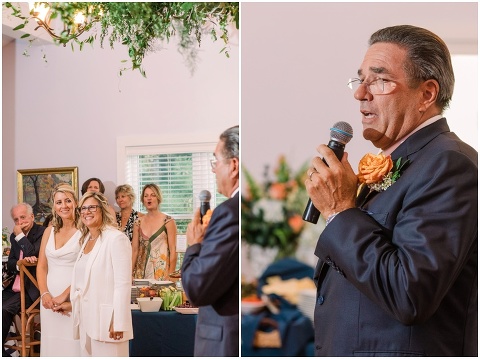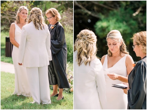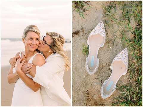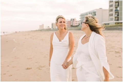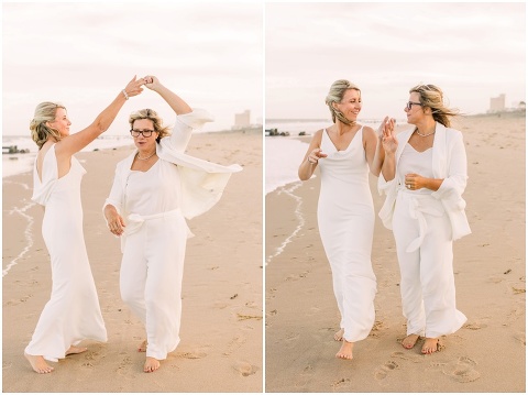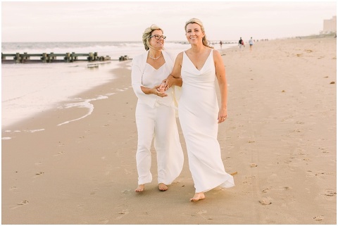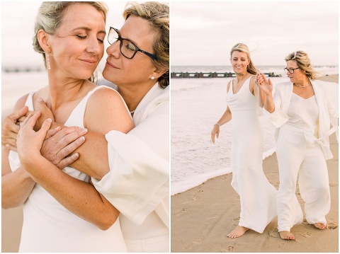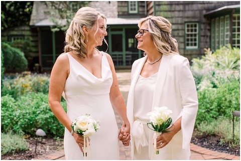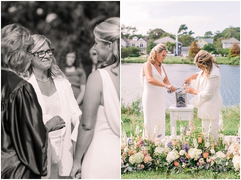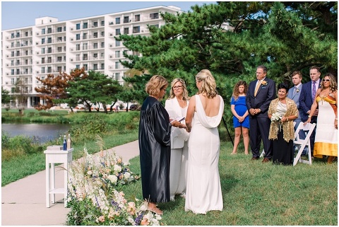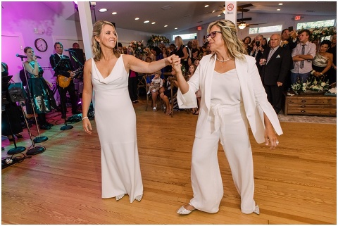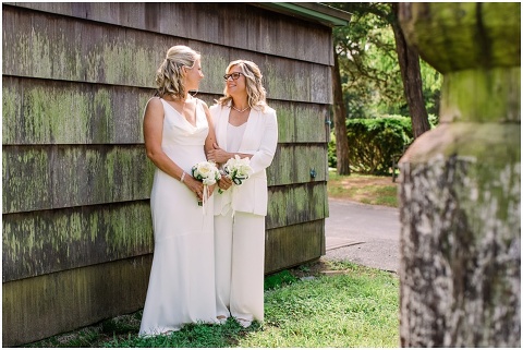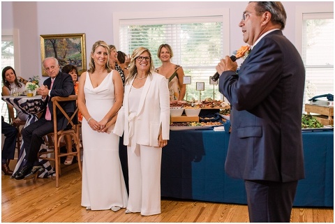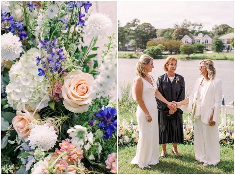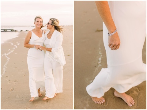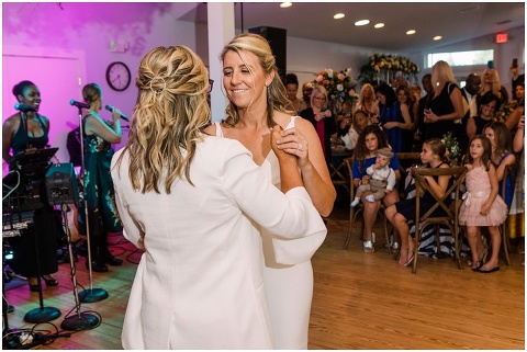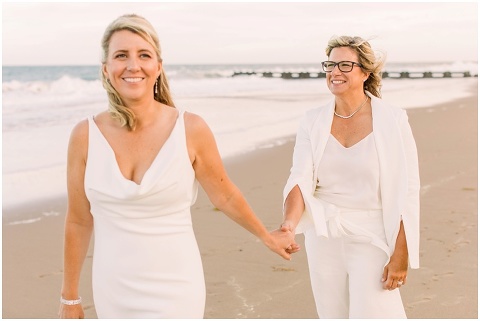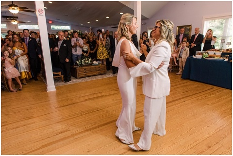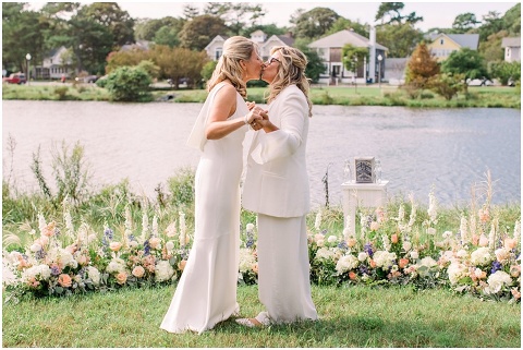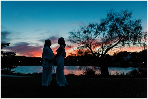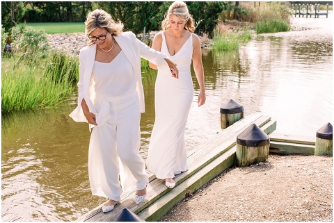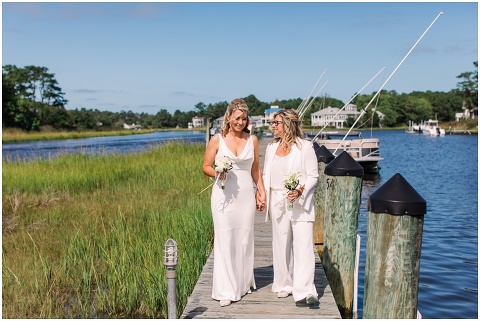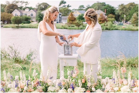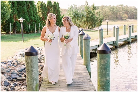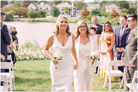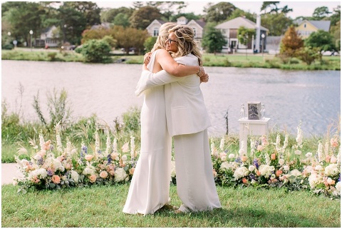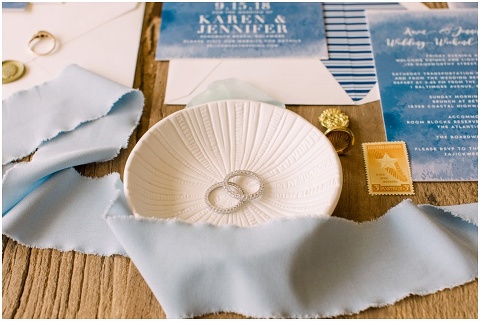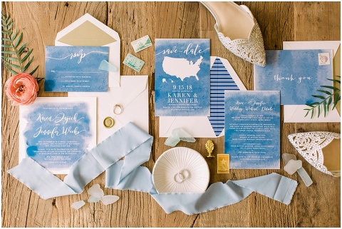 Karen and Jenn’s coastal blue inspired wedding in Rehoboth Beach took place exactly 10 years after their very first date! These two Eagles football fans hit it off and it was easy to tell these two are so in love! Karen and Jenn love spending time on the the beaches near Rehoboth so it was here they chose to celebrate with family and friends. Elevee Events went above and beyond with all of the details including a full bar display with oyster cans and blue glassware, sitting areas with custom furniture and sea inspired vases and florals. Their intimate ceremony took place next to Lake Gerar where Karen and Jenn read heartfelt vows to each other. Friends joined in for a memorable reception full of dancing, laughter and love! Congratulations Karen and Jenn!