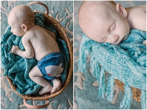 Tiffany and Jake recently welcomed the sweetest baby boy into the world 8 weeks ago, Henry Patrick! Henry was as sweet as could be for his first photo shoot and he also has the most beautiful skin! Tiffany found the cutest diaper covers with a shark and a crab, perfect for a newborn session on the eastern shore. Henry also loved hanging out in a woven basket that we found at the house and ended up napping quite nicely in it! Congratulations to the new family!