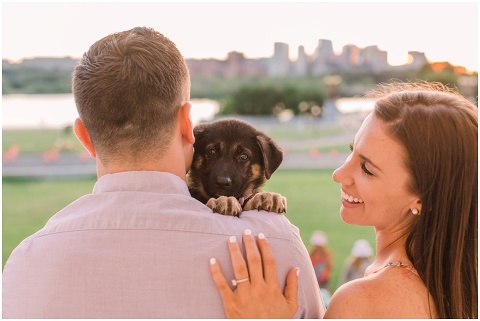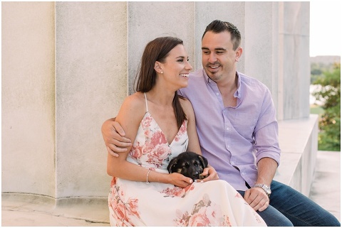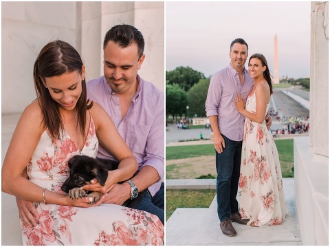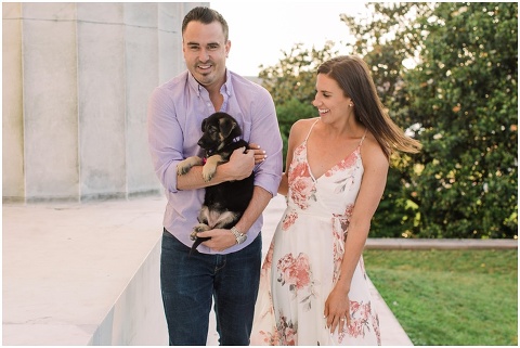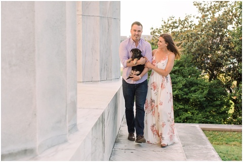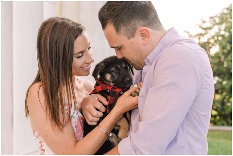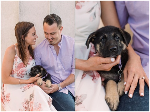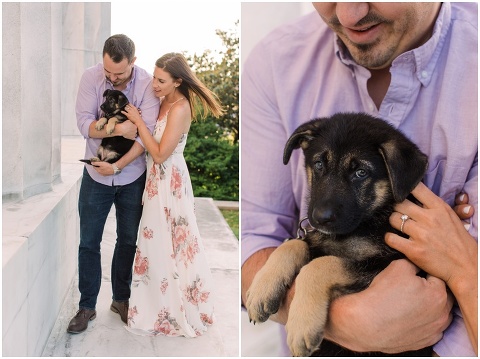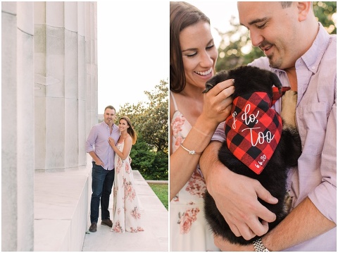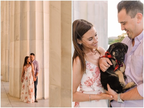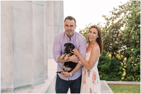 Bryn & Greg’s engagement session took place on a beautiful sunny evening by the Lincoln Memorial in Washington, DC. We had to reschedule several times due to rain but it worked out perfectly because they just adopted the sweetest german shepherd puppy they named Pepper one day before our shoot! Bryn made the cutest plaid bandana for Pepper with their wedding date. Greg proposed in old town Alexandria and a wedding is planned for about 1 year from now at Herrington on the Bay. I can’t wait for the big day and to see Pepper all grown up!
