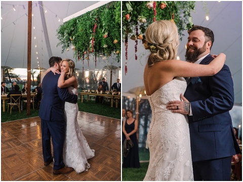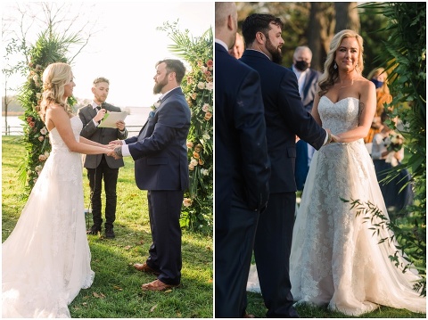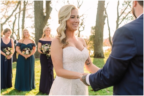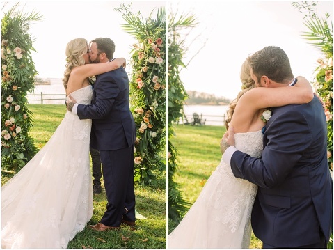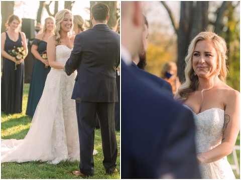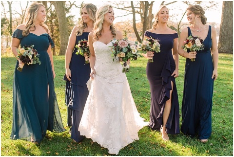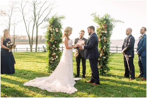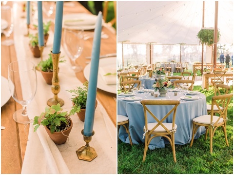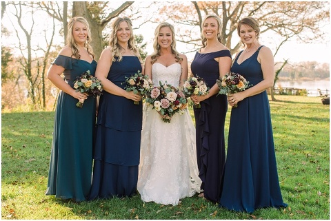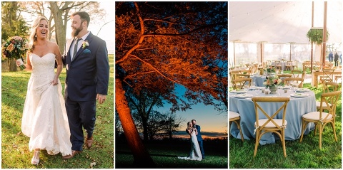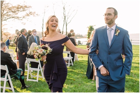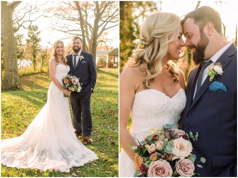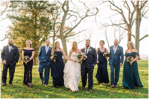 Kimberly and Brandon pulled off the most beautiful fall wedding at bayside Great Oak Manor in Chestertown, Maryland last weekend! I loved so many of the details including the sailcloth tent, flowing greenery, mini potted plants, pastel blue candlesticks, and a fun mix of blues on the bridal party. These two first met while living in Florida but it just so happened that they are both from the eastern shore of Maryland! After the proposal, they found the most perfect venue just outside of Chestertown with some amazing views of the bay. They had the hard wait of moving their wedding from April to November due to the pandemic but lucked out with perfect sunny and warm weather. The day couldn’t have turned out more perfect and congratulations to these sweet newlyweds!
