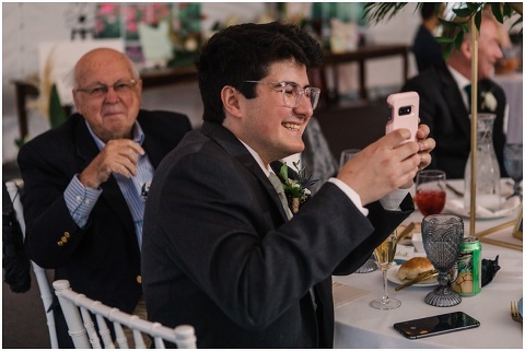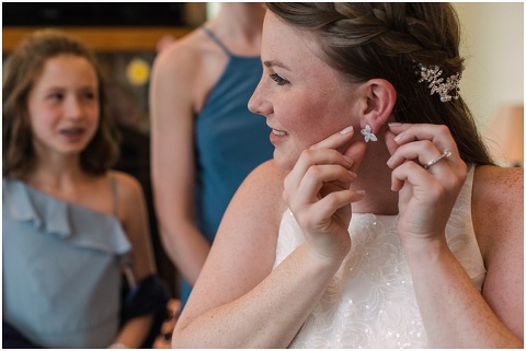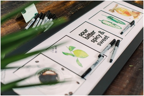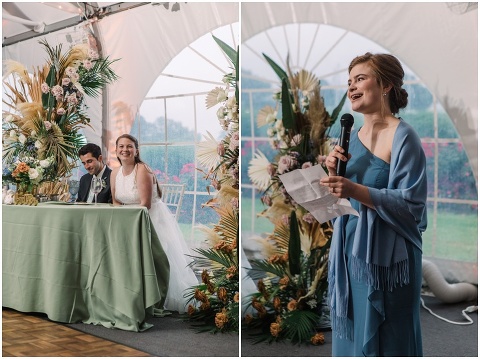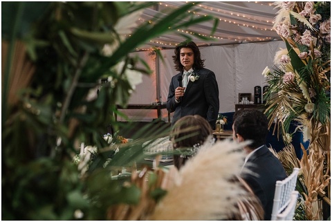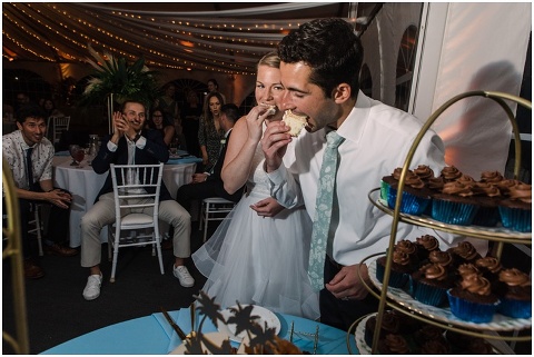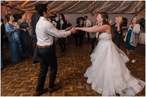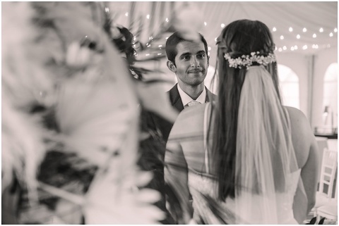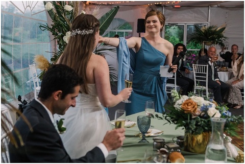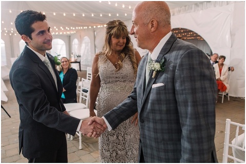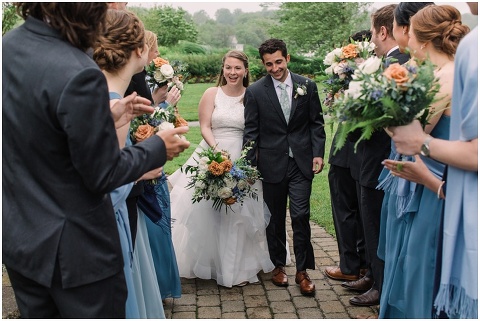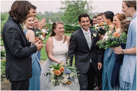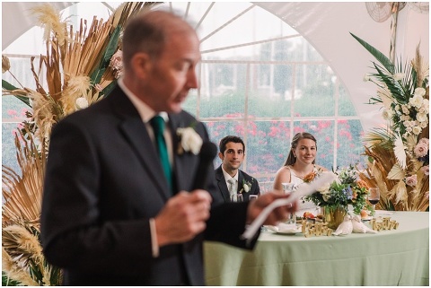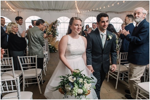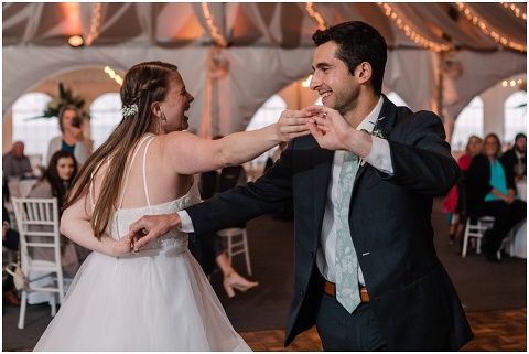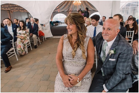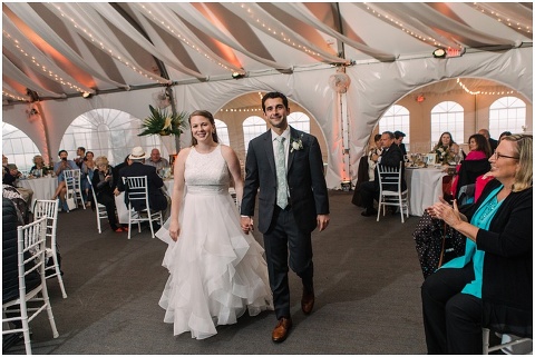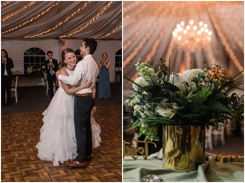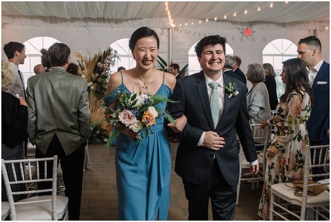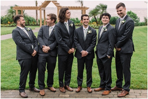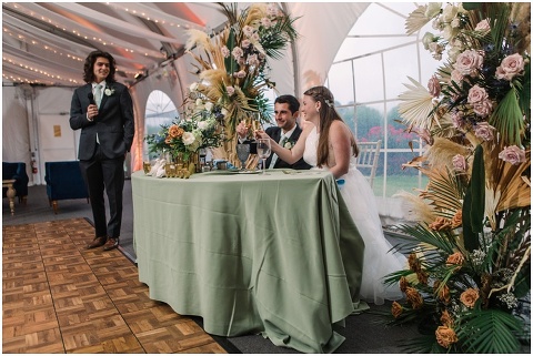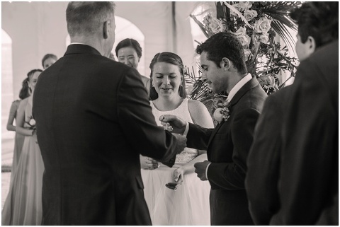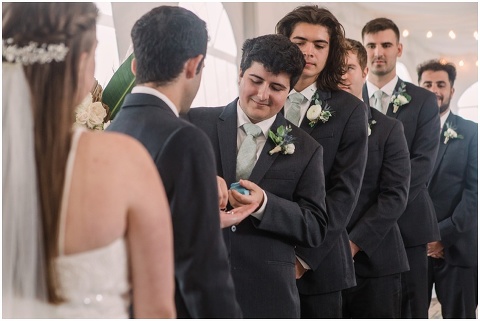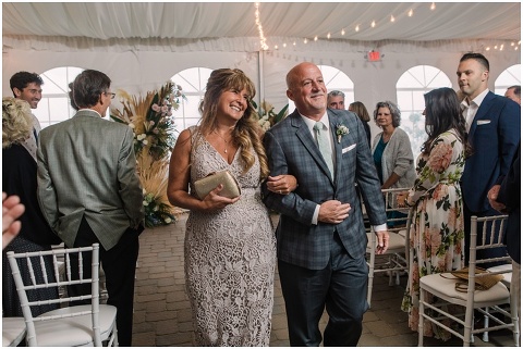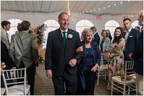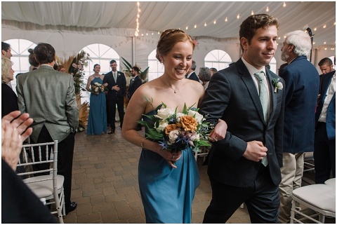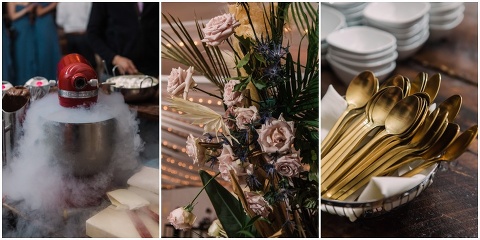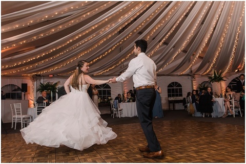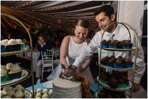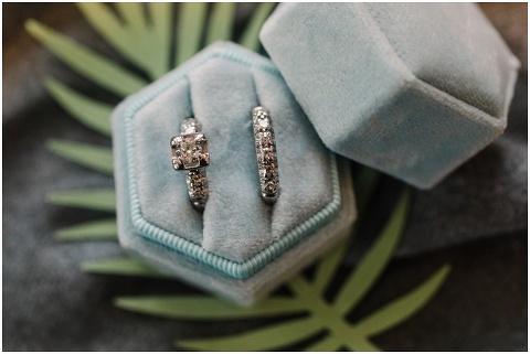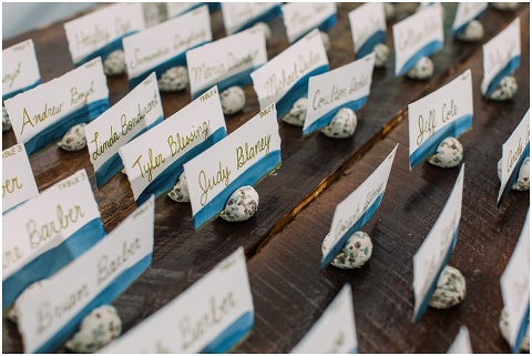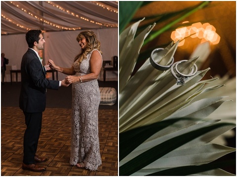 Olivia and Connor’s Herrington on the Bay wedding was full of tropical ocean blue details, a fun incorporation of the 4 basic tastes into their ceremony, and a beautiful layered dress perfect for twirling! One look at their stationery set and I knew the rest of the day would be beautiful. The day surprised us with winds over 25 miles per hour but these two proved they can weather any storm and roll with plan B. Luckily the rain held up so we could get some pictures with the palm trees blowing sideways! Their ceremony took place on the covered patio area of the Paradise Ballroom tent. Family brought up 4 foods they tasted for each taste, jalapenos for spicy, honey for sweet, coffee for bitter, and lemons for sour! The florals were so unique with lots of dried palm leaves and a stunning arbor display used both for the ceremony and reception head table. Congratulations Olivia and Connor!