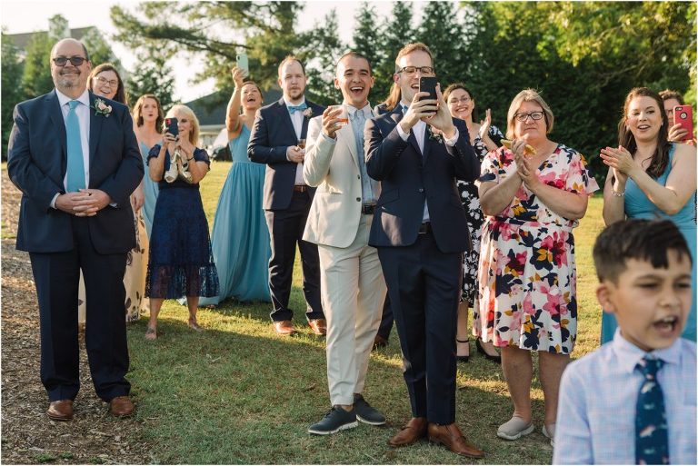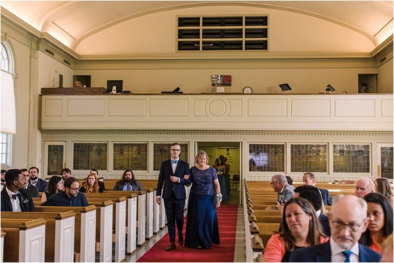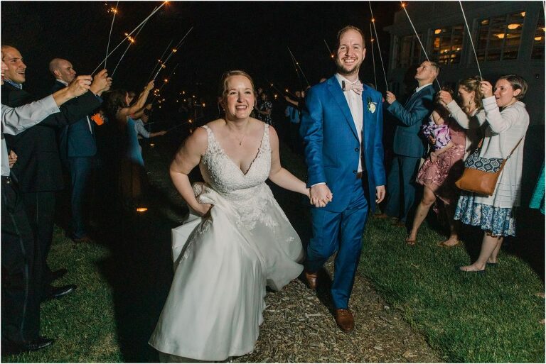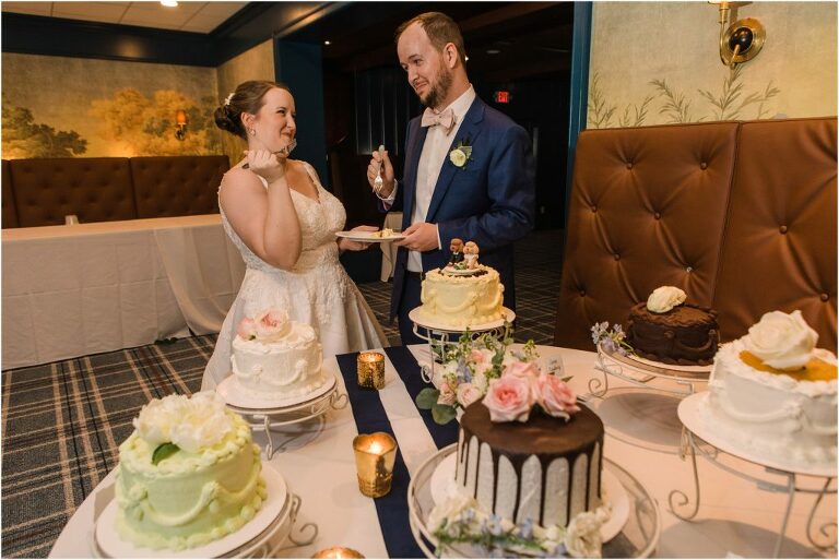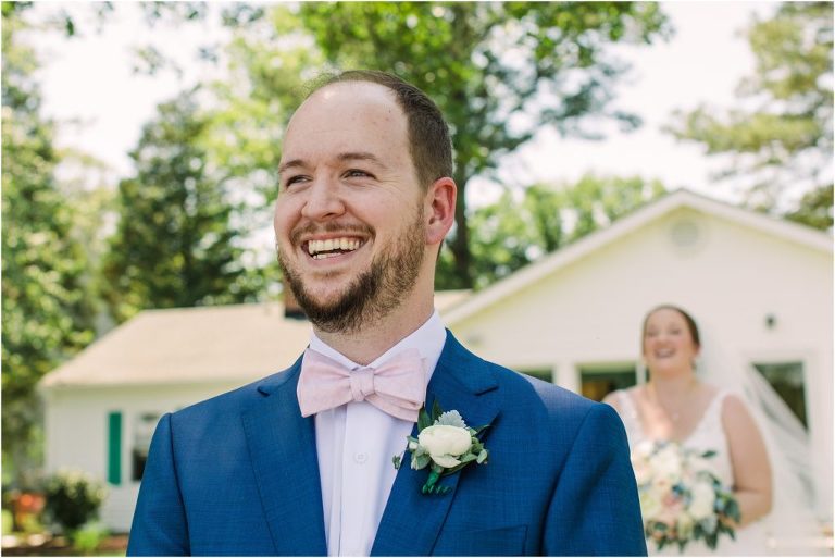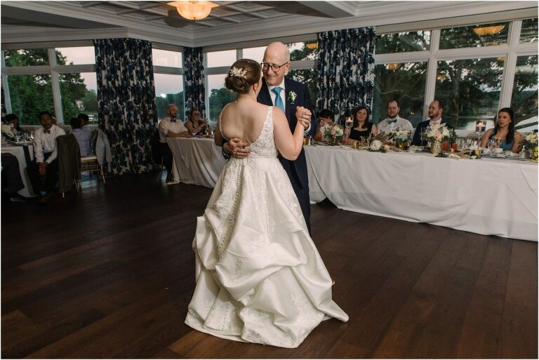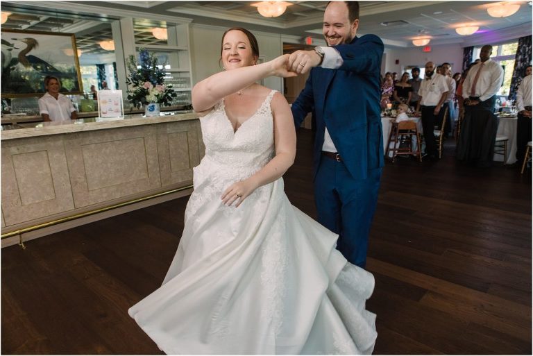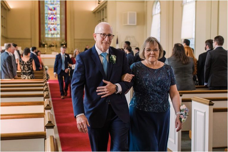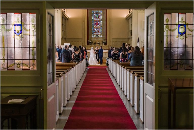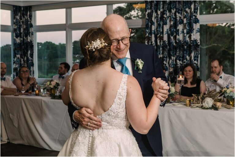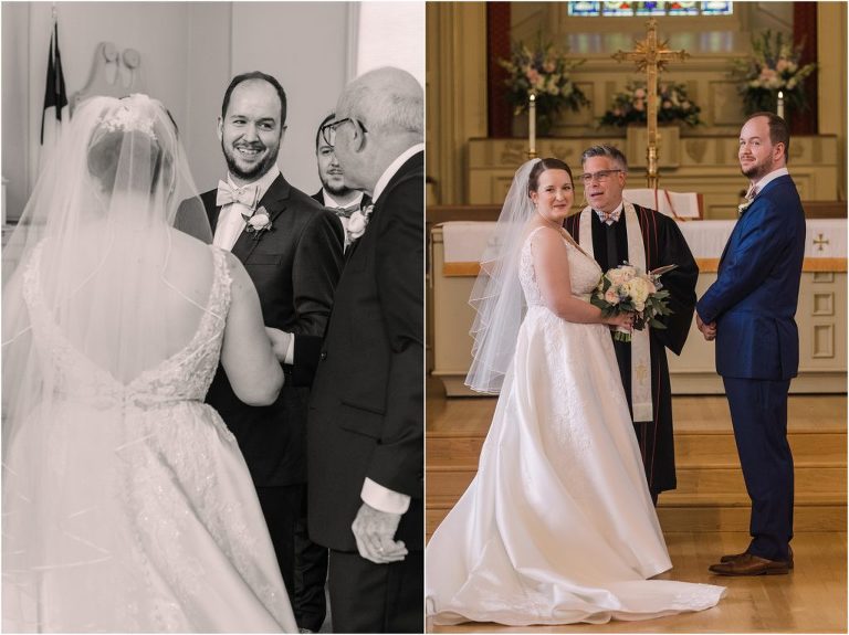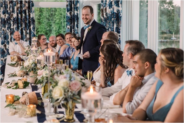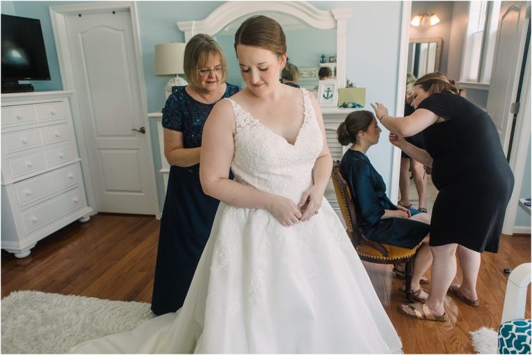 Betsy and Daniel had the ultimate eastern shore wedding with nautical blue and white decor, a boat ride on the Chesapeake Bay to their reception, smith island cakes, and a huge oyster bar! The first stop was a ceremony at St. Marks United Methodist Church filled with musical talent from the family. Next was a boat ride on a Ranger Tug where Betsy and Daniel enjoyed champagne and oysters on their way to the Talbot Country Club. Guests waved from shore as the newlyweds arrived before going into their impressive first dance. Other fun details were signature drinks named after their two pups, a family heirloom engagement ring, and a custom monogrammed crab logo.
