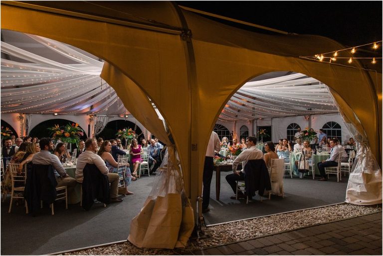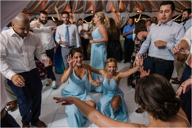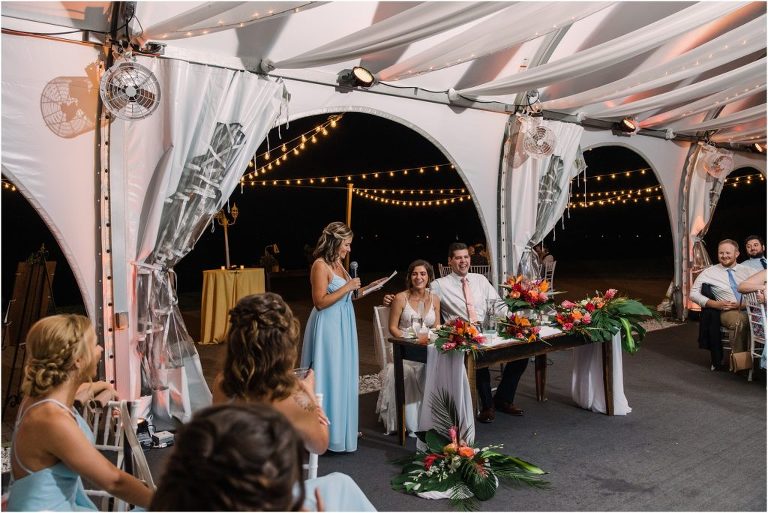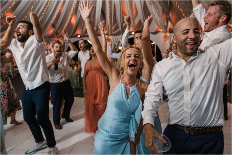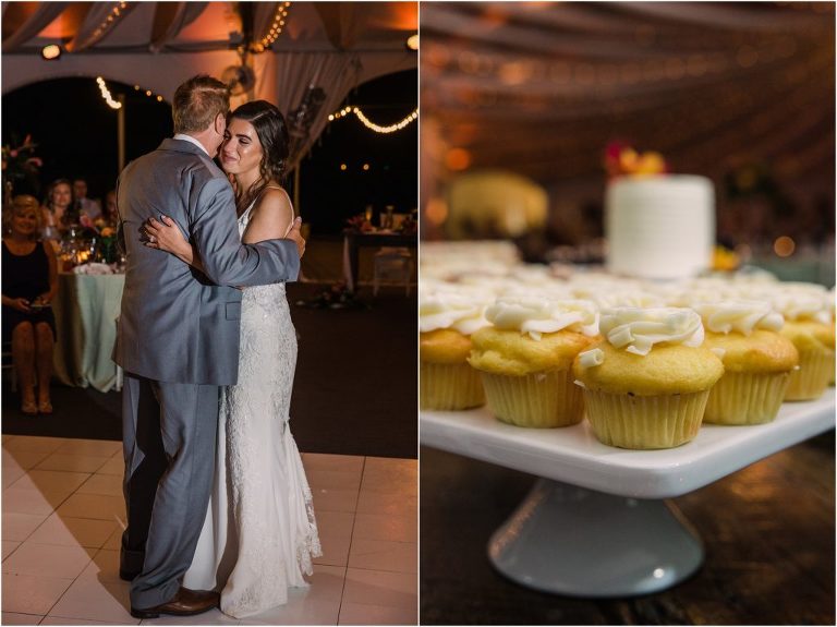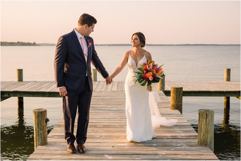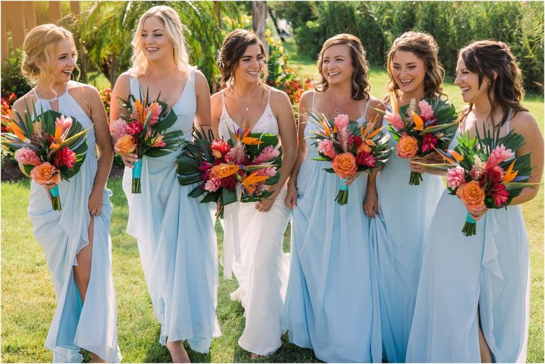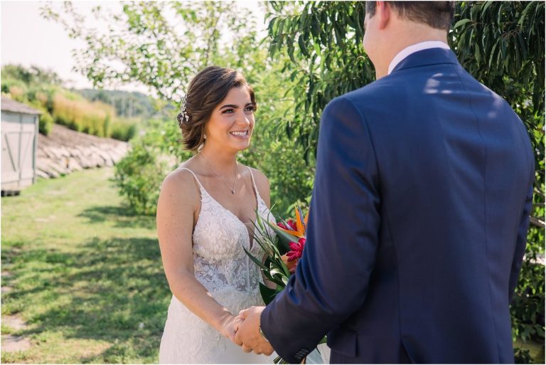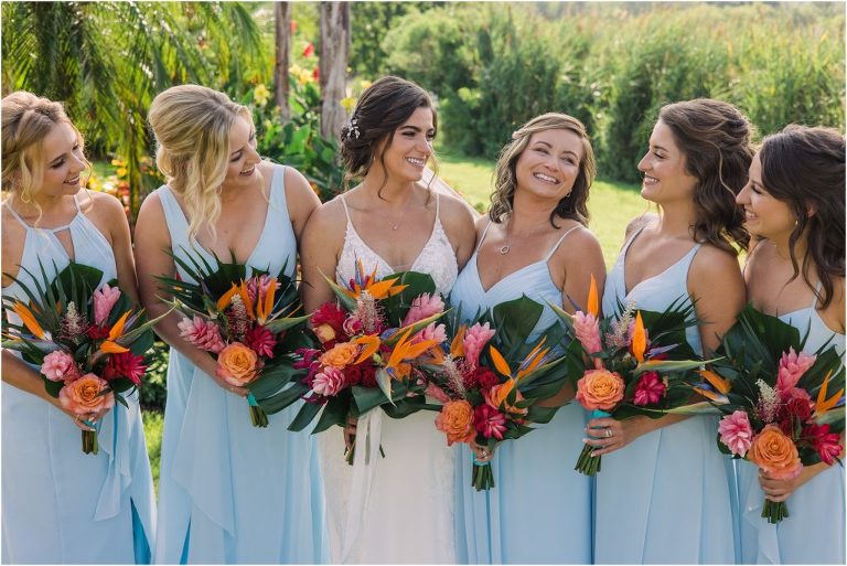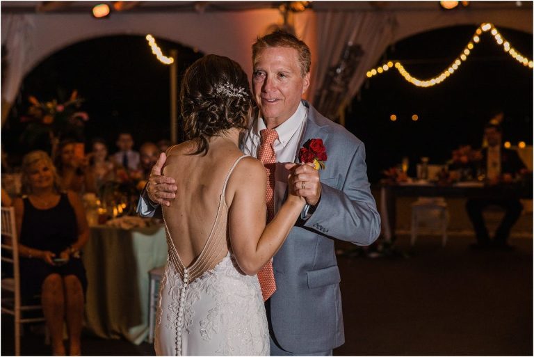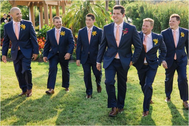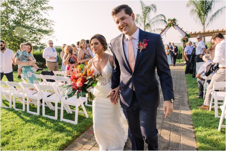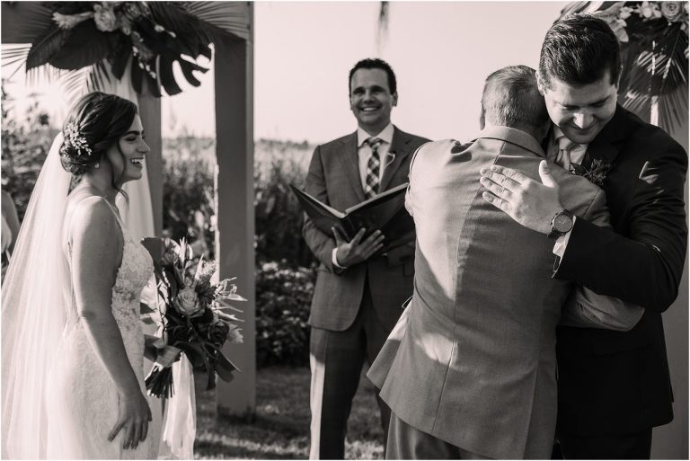 Erika and Anthony celebrated their most perfect, tropical wedding at Herrington on the Bay full of exotic florals! Erika made the prettiest table cards each highlighting a different tropical flower. A mix of blues was worn by the bridal party and a sage green on the tables throughout the Paradise Ballroom. What made this day even more perfect was the beautiful sunny day making it all feel like we were in Aruba, where these two originally were going to plan their wedding day! Anthony’s face was priceless when seeing his bride during the first look and processional and the day was filled with so many happy moments throughout. Congratulations Erika and Anthony!