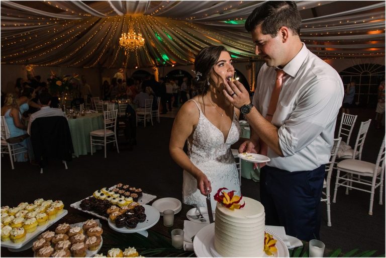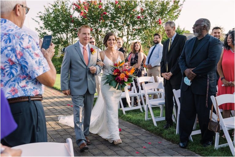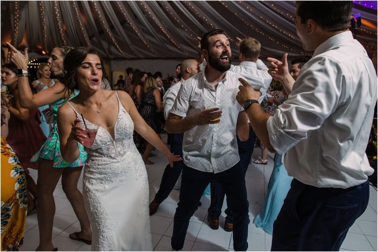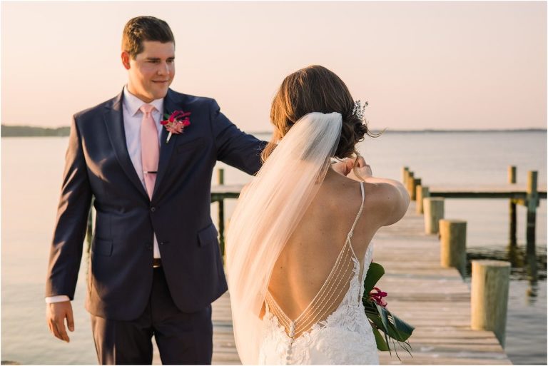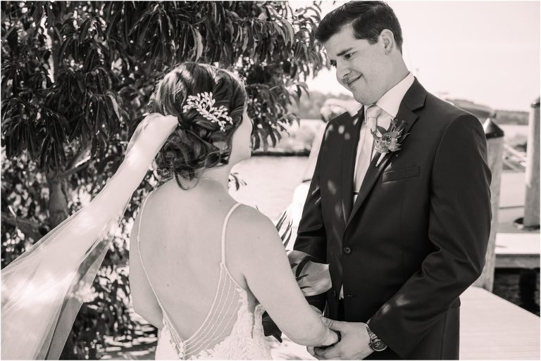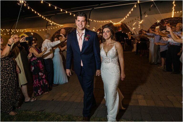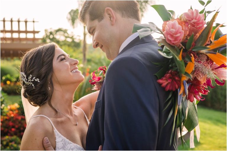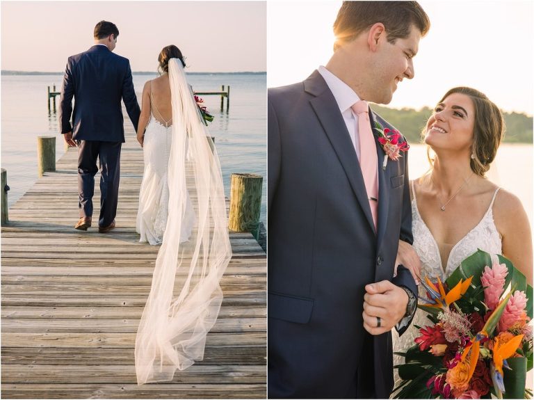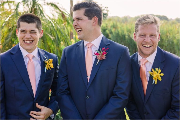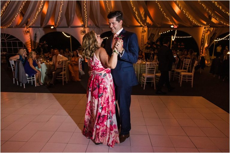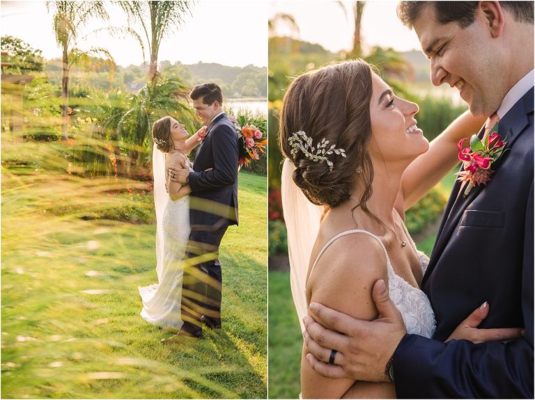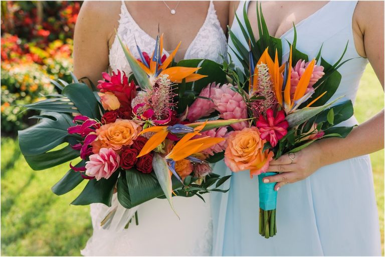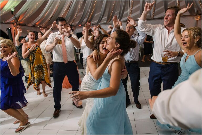 Erika and Anthony celebrated their most perfect, tropical wedding at Herrington on the Bay full of exotic florals! Erika made the prettiest table cards each highlighting a different tropical flower. A mix of blues was worn by the bridal party and a sage green on the tables throughout the Paradise Ballroom. What made this day even more perfect was the beautiful sunny day making it all feel like we were in Aruba, where these two originally were going to plan their wedding day! Anthony’s face was priceless when seeing his bride during the first look and processional and the day was filled with so many happy moments throughout. Congratulations Erika and Anthony!