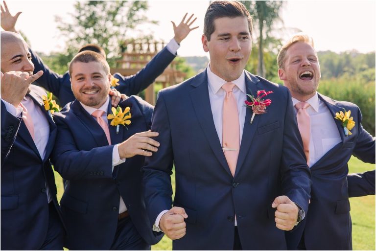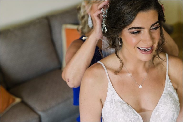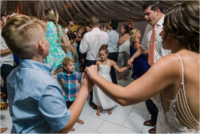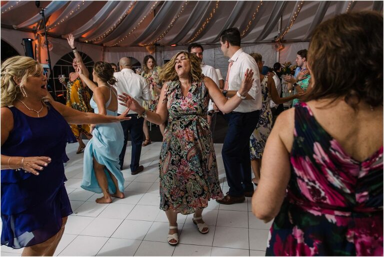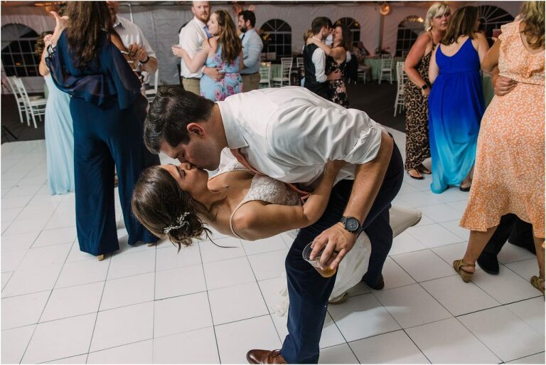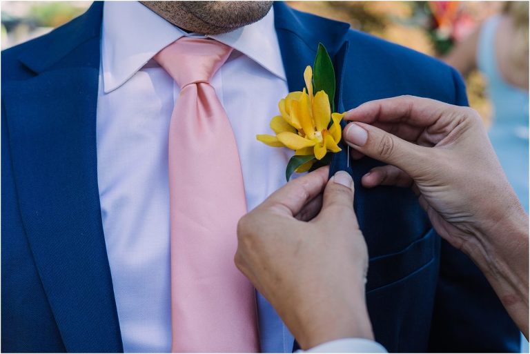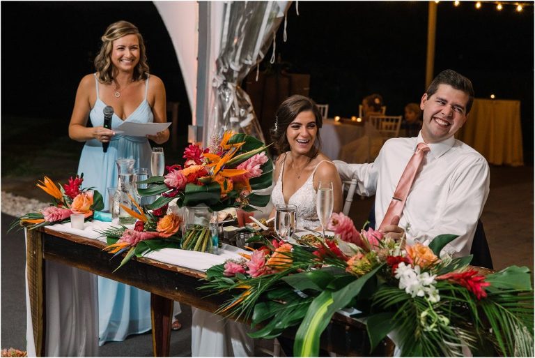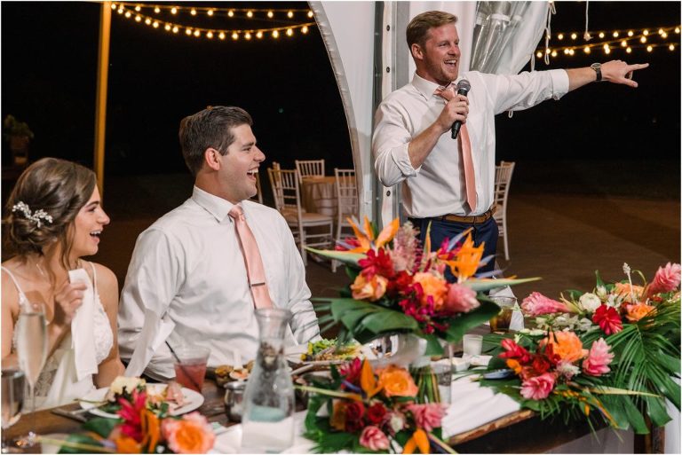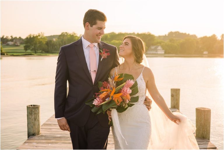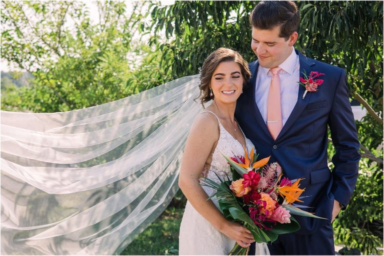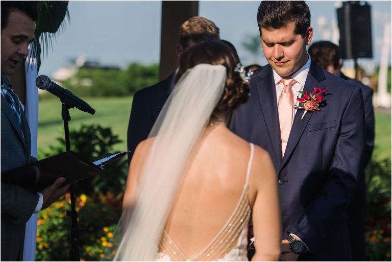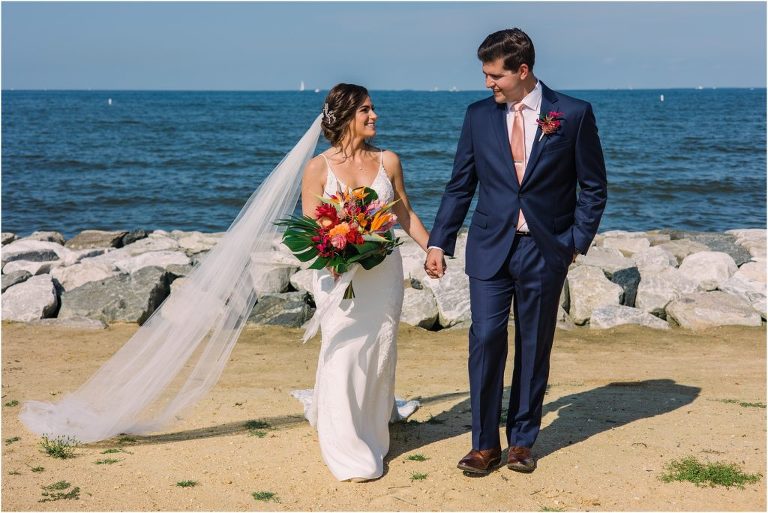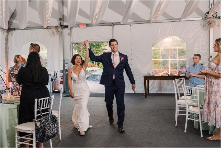Erika and Anthony celebrated their most perfect, tropical wedding at Herrington on the Bay full of exotic florals! Erika made the prettiest table cards each highlighting a different tropical flower. A mix of blues was worn by the bridal party and a sage green on the tables throughout the Paradise Ballroom. What made this day even more perfect was the beautiful sunny day making it all feel like we were in Aruba, where these two originally were going to plan their wedding day! Anthony’s face was priceless when seeing his bride during the first look and processional and the day was filled with so many happy moments throughout. Congratulations Erika and Anthony!