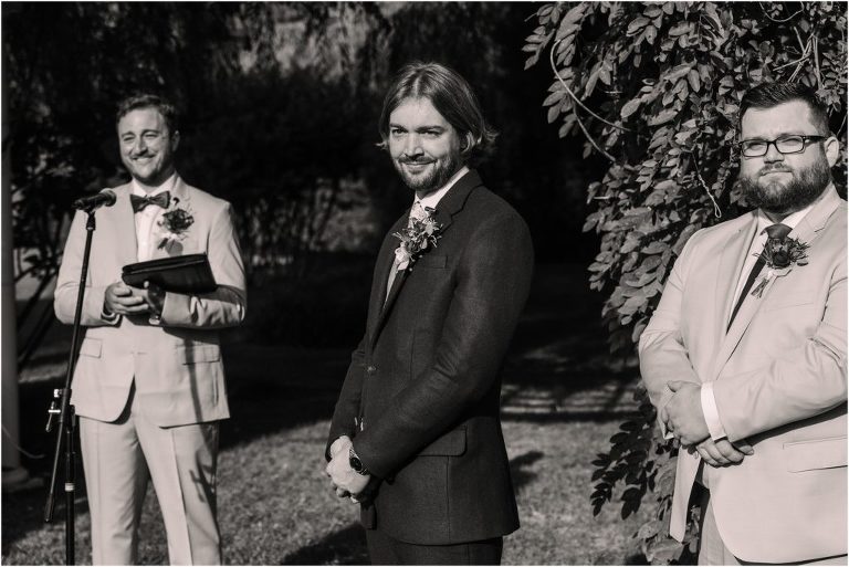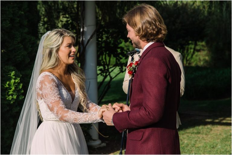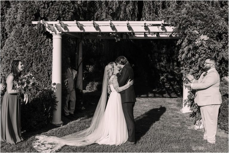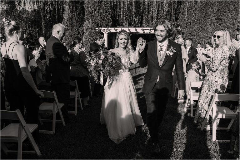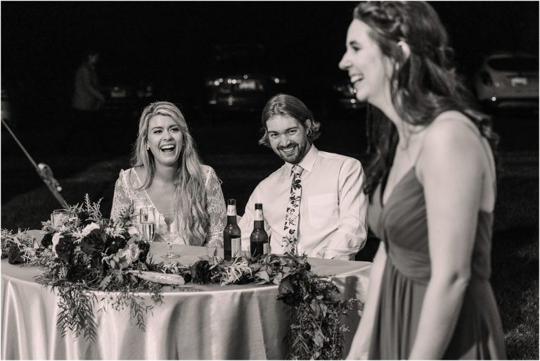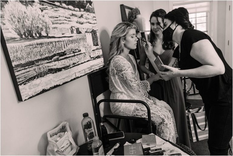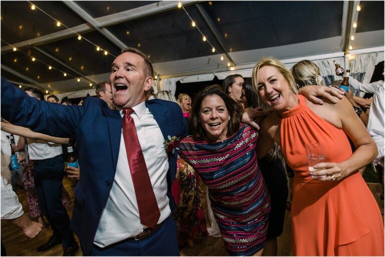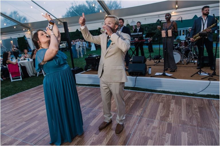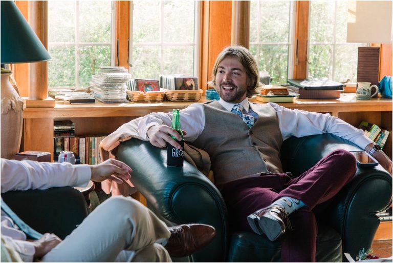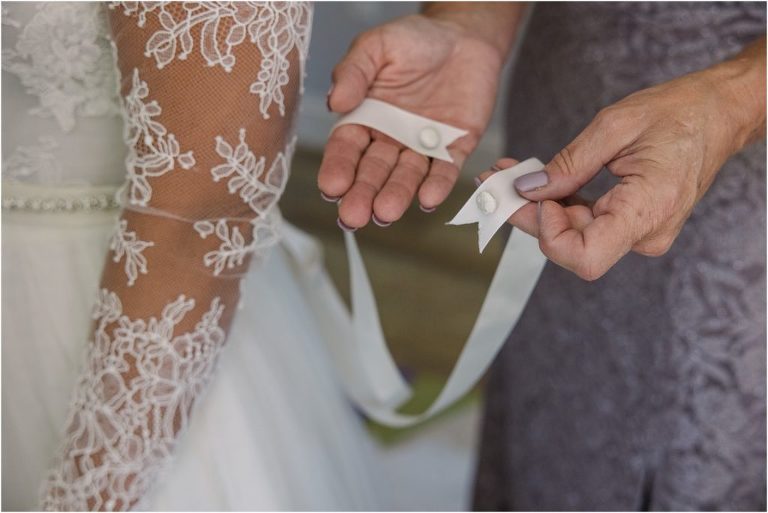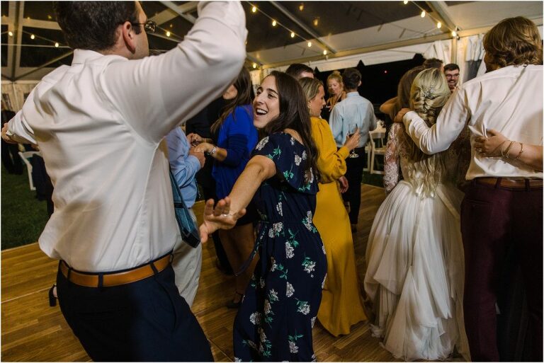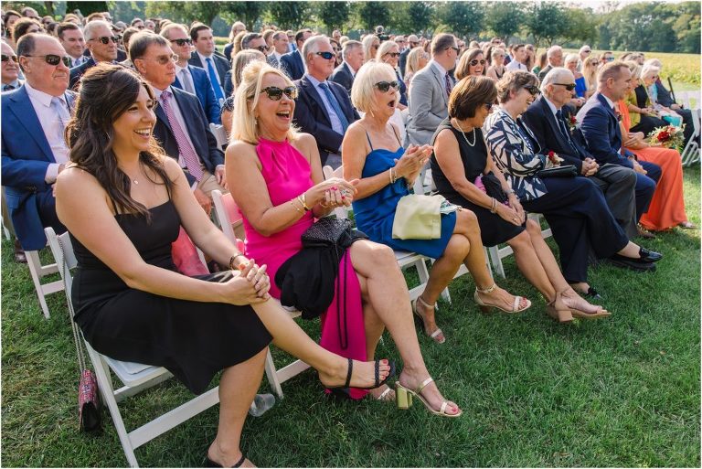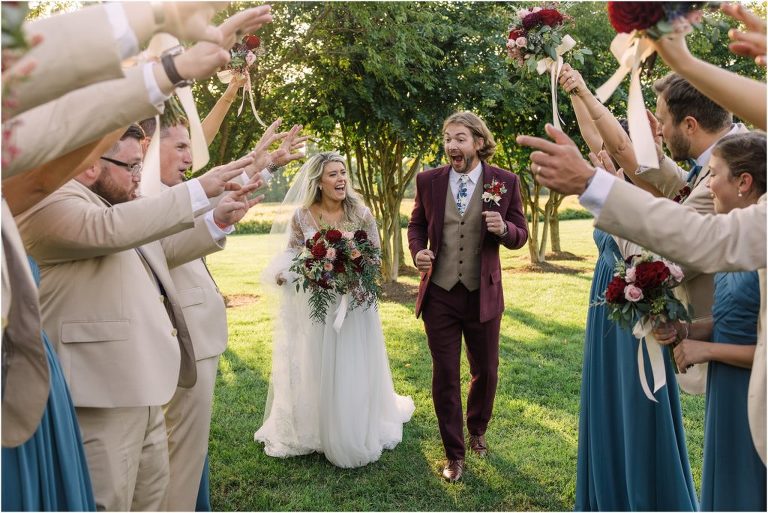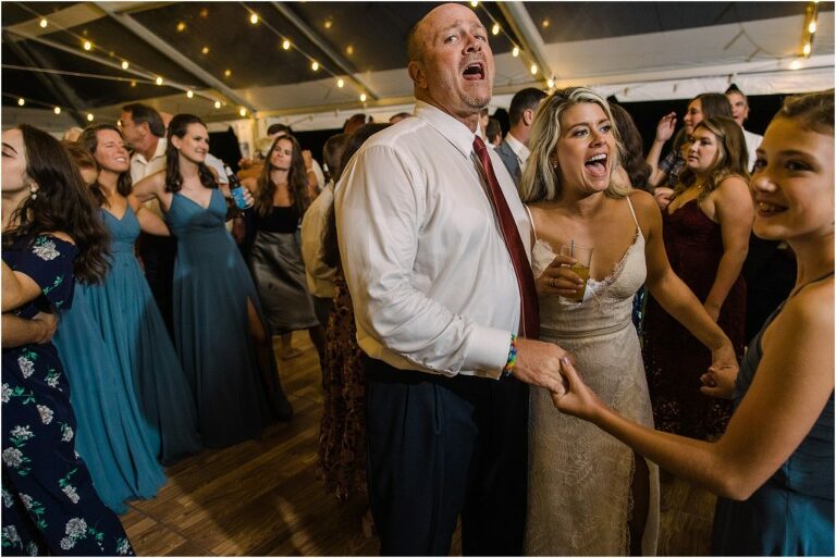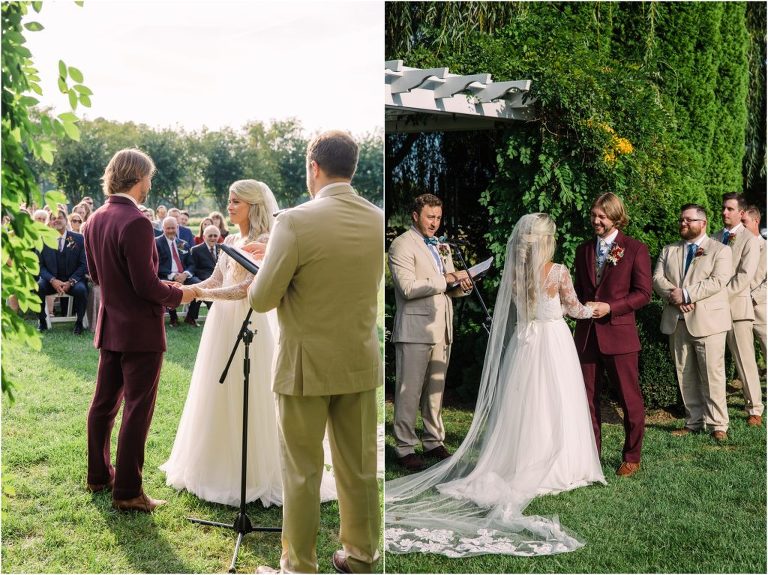 Becca and Connor’s wedding at the Huntington Creek Inn in Rock Hall, Maryland had a beautiful bohemian vibe with a ceremony under the willow trees and reception under a clear topped tent strung with lights! Becca picked a gorgeous wedding dress with full lace sleeves and a long veil with flowered details. Connor also looked amazing with his deep red suit and blue flowered tie! Their colors of dusty blue, red and golds were perfect for the fall season and I especially loved the pop of color in all of the florals. The day started out with some first looks with the bridal party, Dad and StepDad. Following the ceremony, we had the perfect golden light for their newlywed images under the trees and down on the dock. Congratulations Becca and Connor!