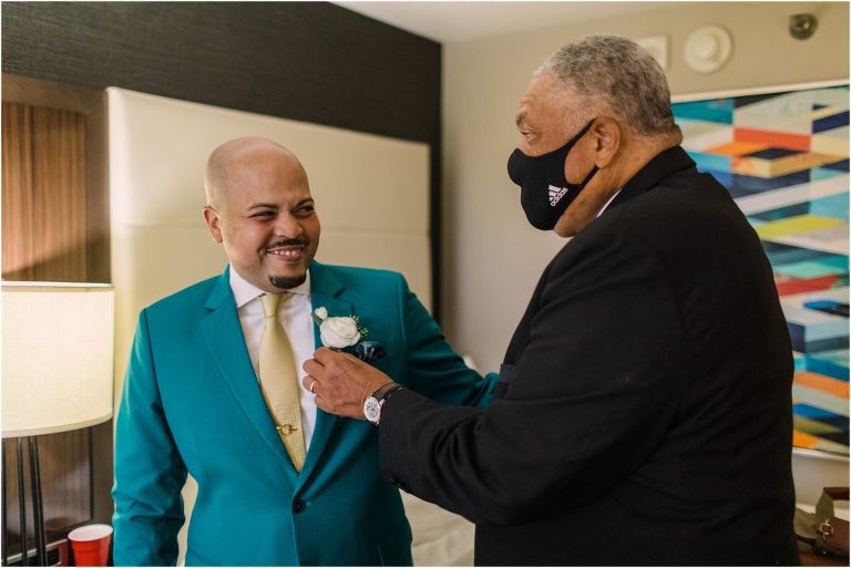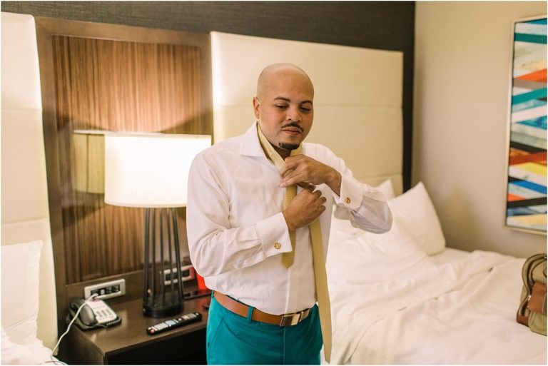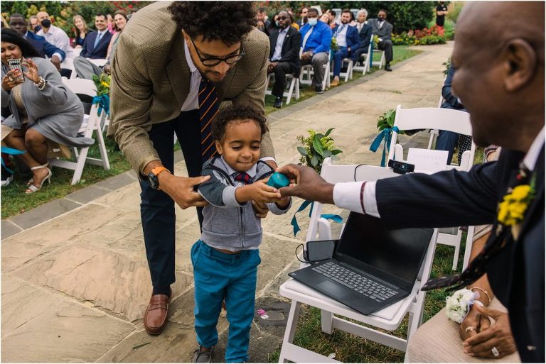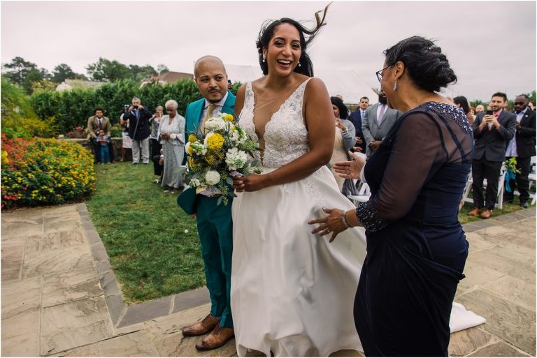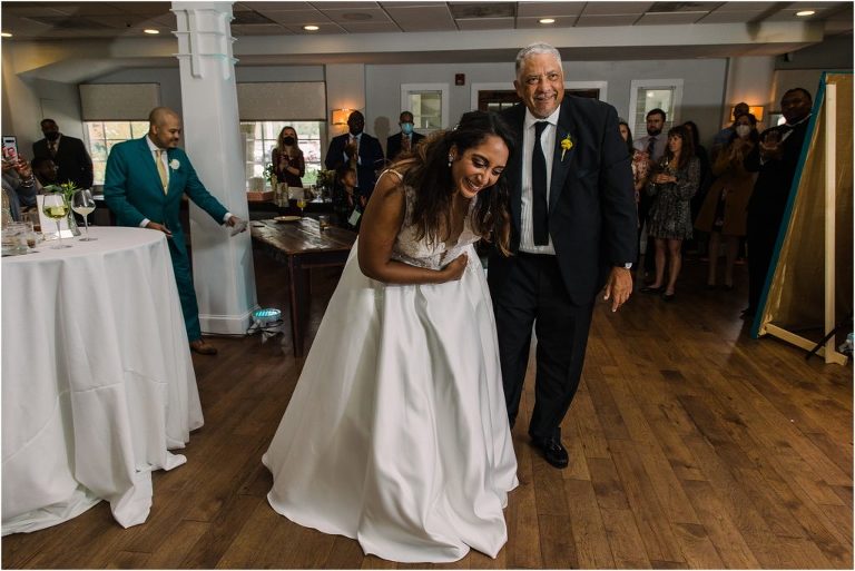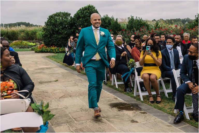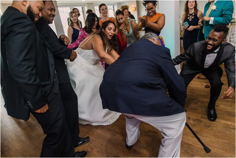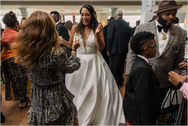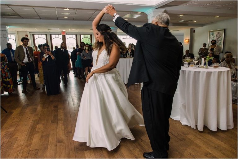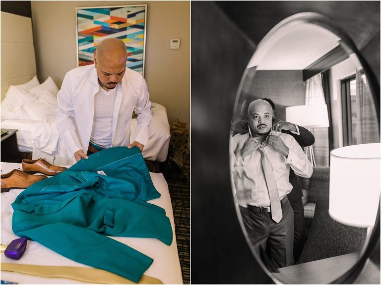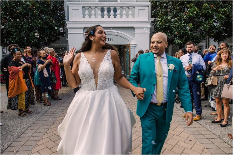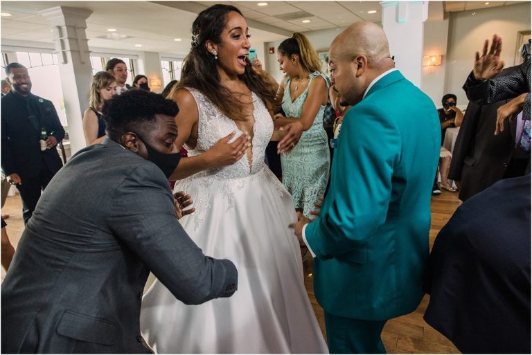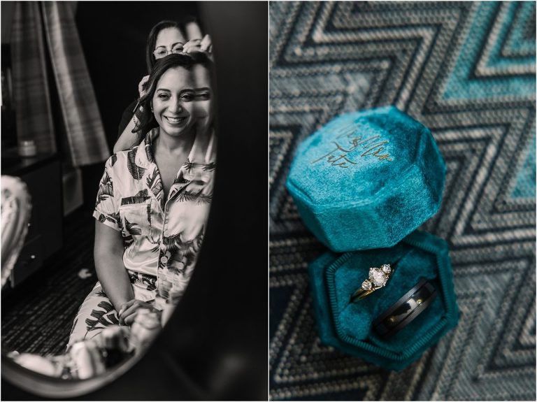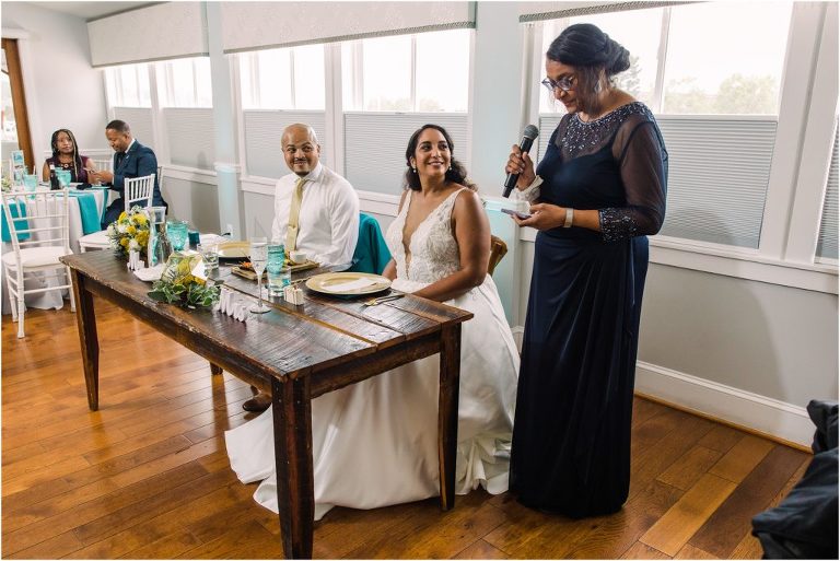 Renee and Keith celebrated their travel themed wedding at Herrington on the Bay with lots of teal and gold details. Their travel theme included airplane ticket and passport invitations, luggage tag place cards, and table numbers with locations the newlyweds have traveled to. Their ceremony took place under the palms trees with lots of wind! They also included a ring warming ceremony where the ring box was passed to each and every guest for their well wishes. The reception took place inside of the Yacht Club building where even Grandma joined in on the dance floor!