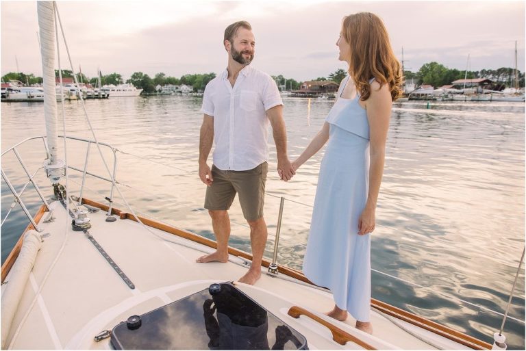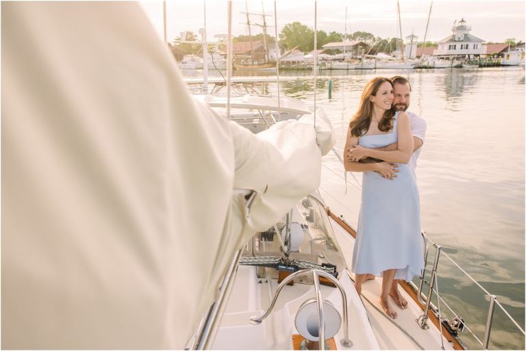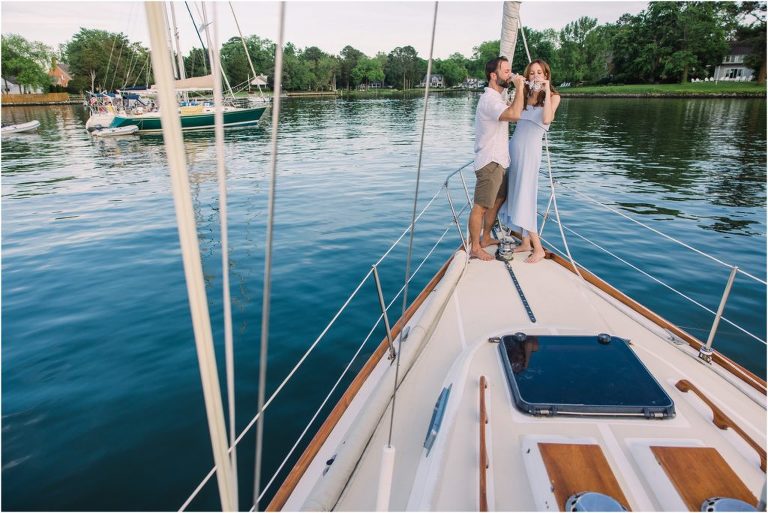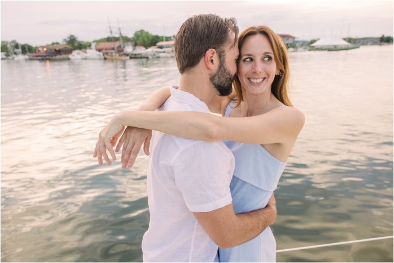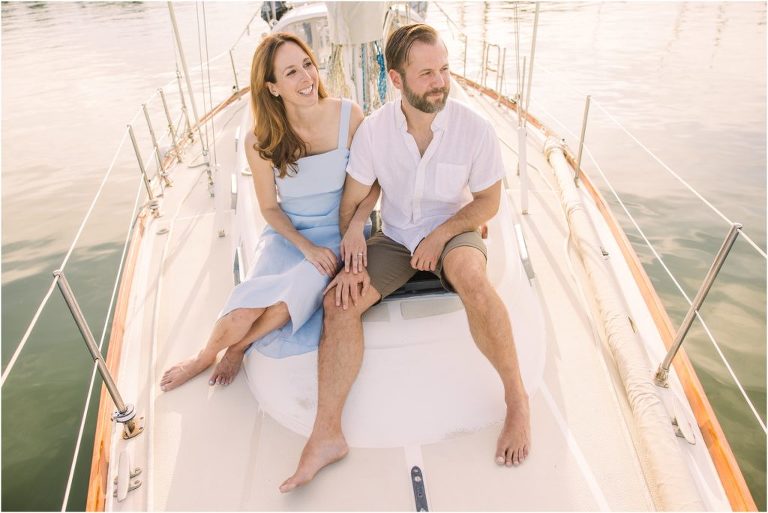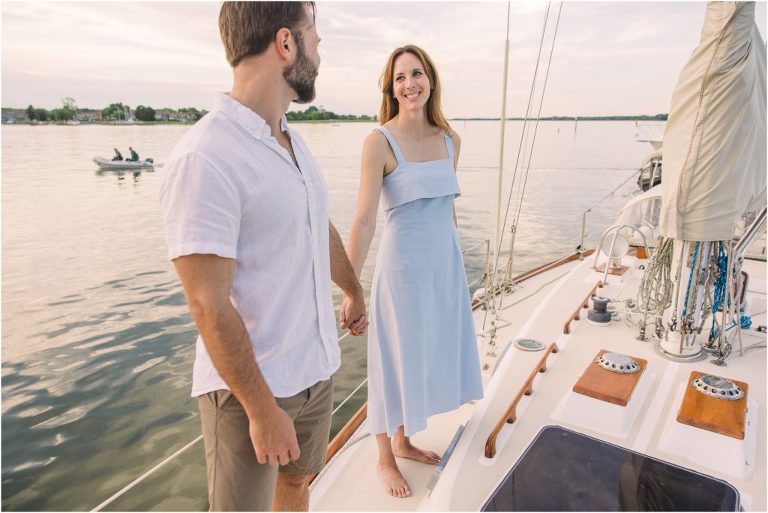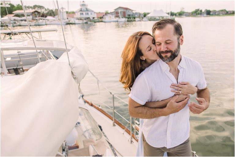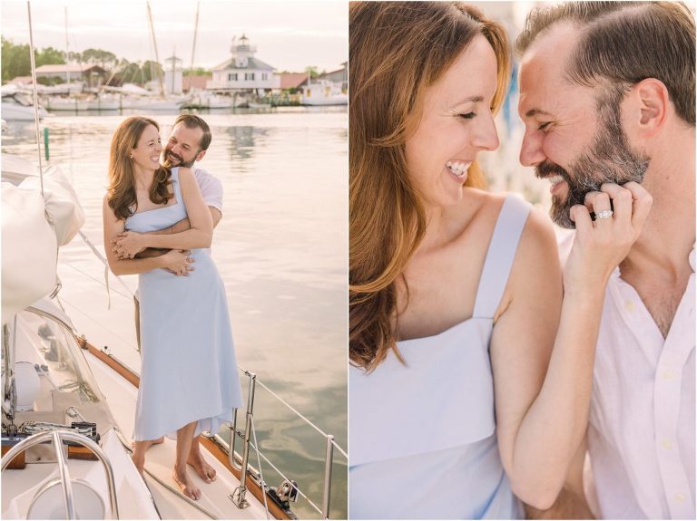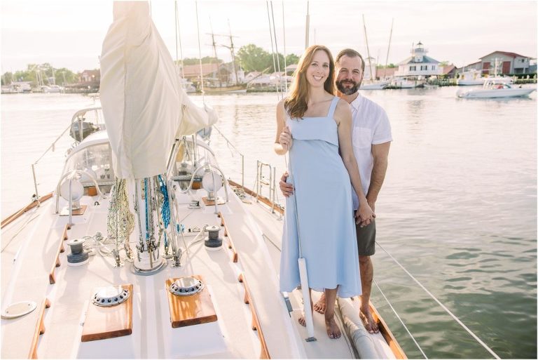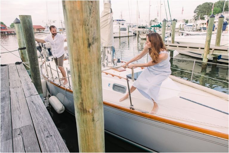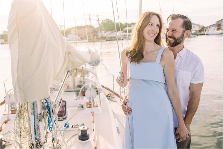 Rachael & Justin love to spend the weekends on their Tartan 37 sailboat so this was the perfect spot for their engagement shoot! They also love to sail to the town of St. Michaels so we anchored right in the harbor in front of the Chesapeake Bay Maritime Museum for the perfect backdrop. These two first met online and their first date included water sports also! A wedding celebration will take place this coming February in Key West and after, the Mr. & Mrs. will charter a boat in the Bahamas for a honeymoon!