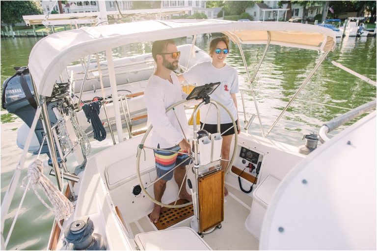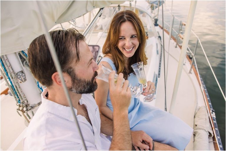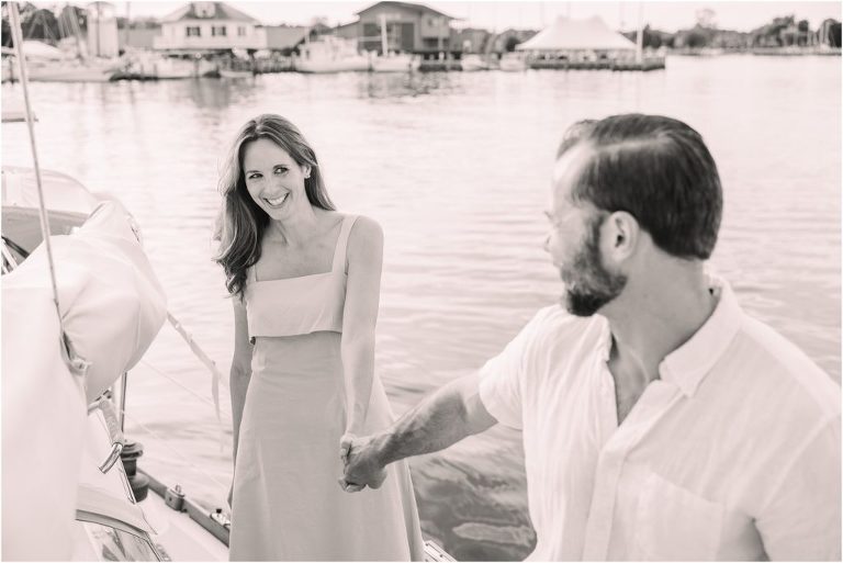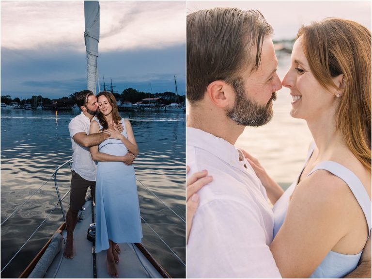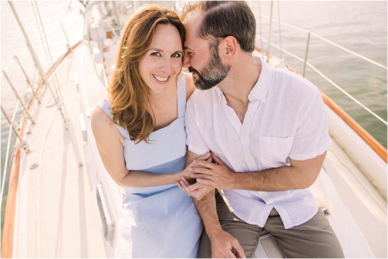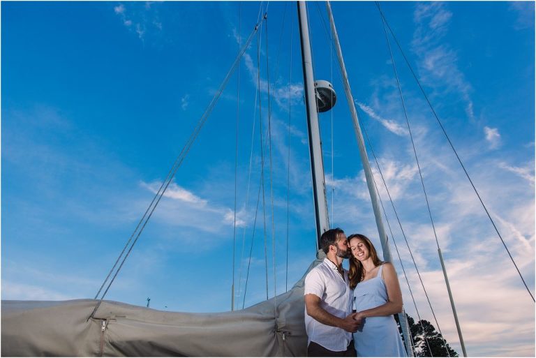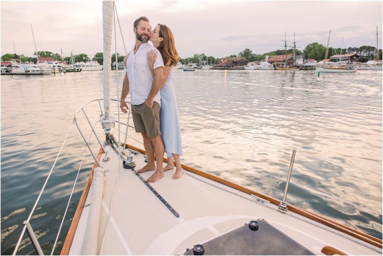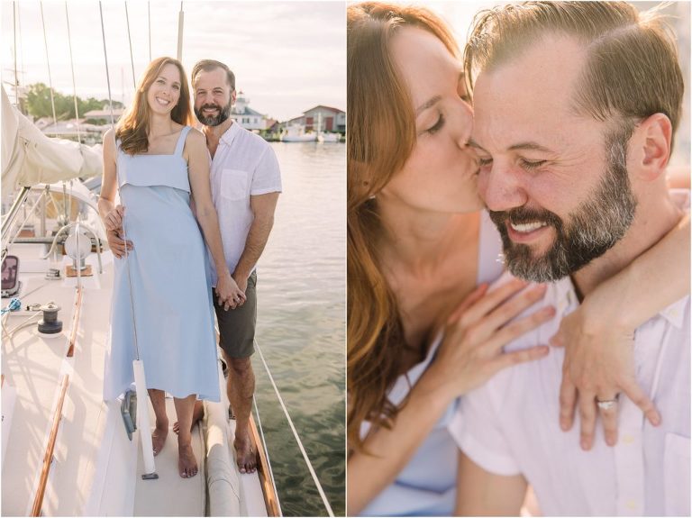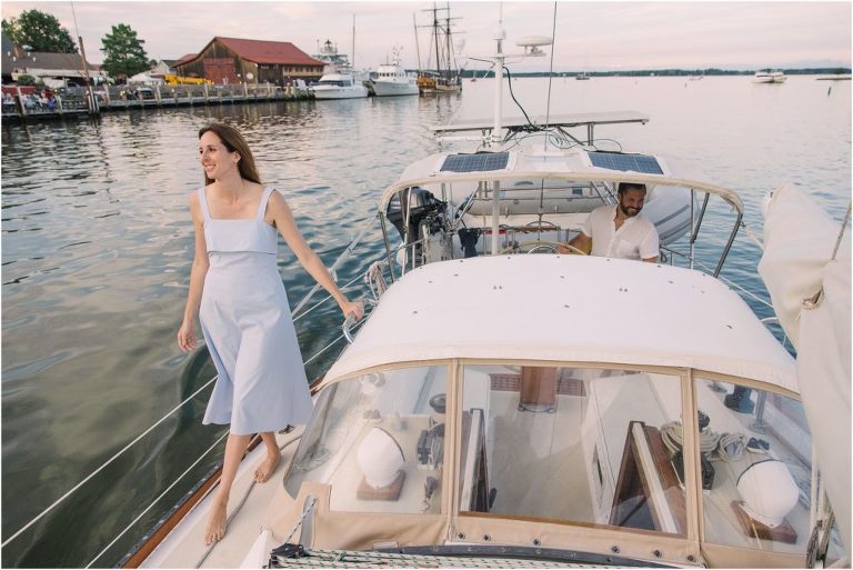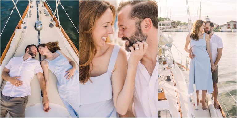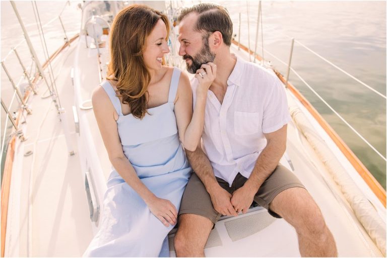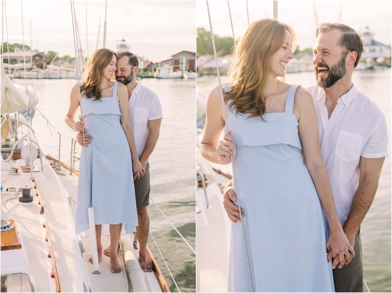 Rachael & Justin love to spend the weekends on their Tartan 37 sailboat so this was the perfect spot for their engagement shoot! They also love to sail to the town of St. Michaels so we anchored right in the harbor in front of the Chesapeake Bay Maritime Museum for the perfect backdrop. These two first met online and their first date included water sports also! A wedding celebration will take place this coming February in Key West and after, the Mr. & Mrs. will charter a boat in the Bahamas for a honeymoon!