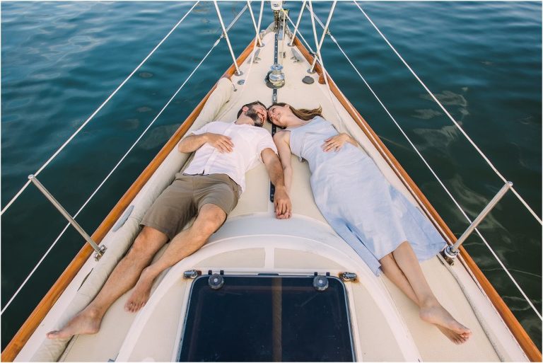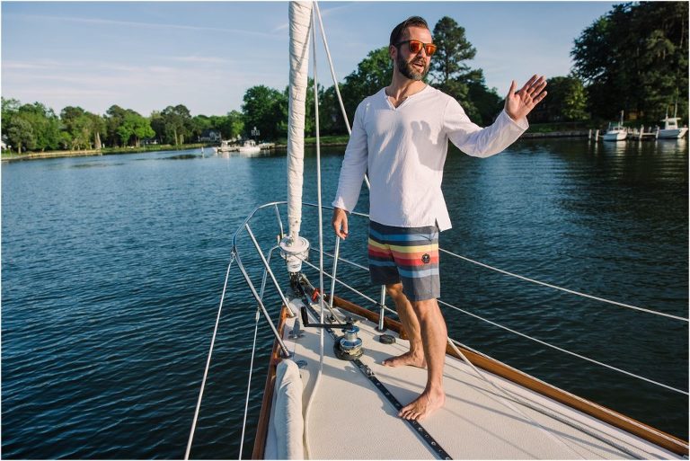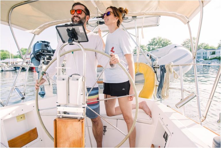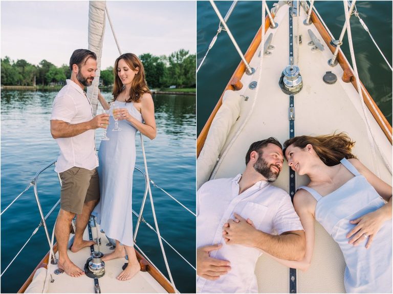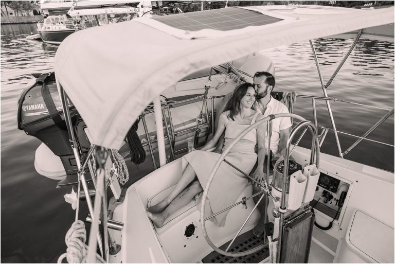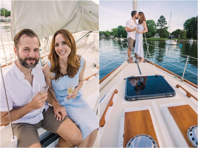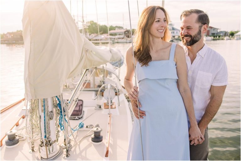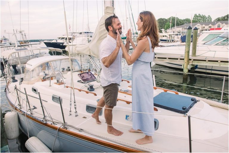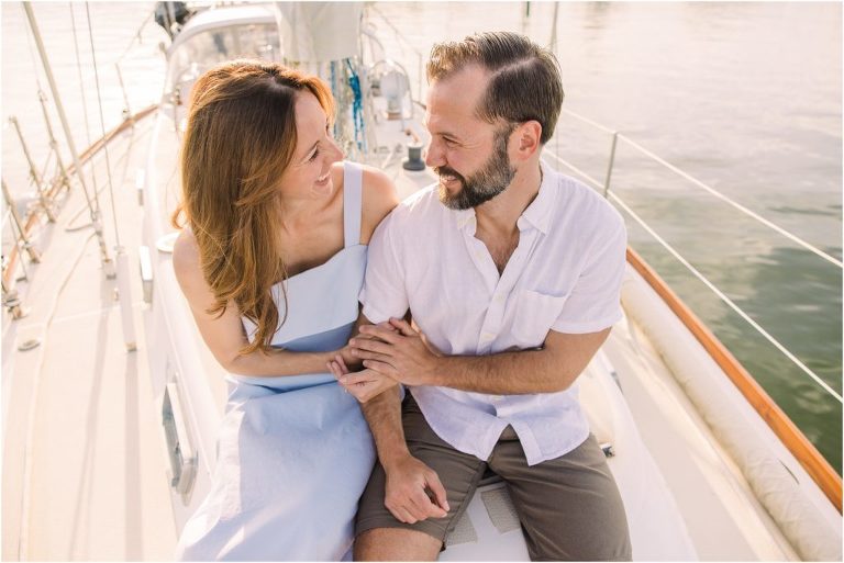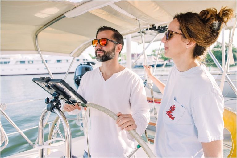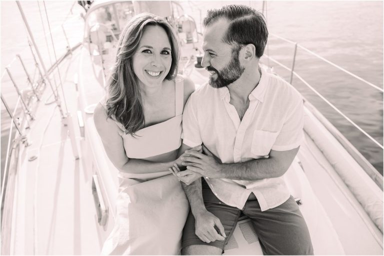 Rachael & Justin love to spend the weekends on their Tartan 37 sailboat so this was the perfect spot for their engagement shoot! They also love to sail to the town of St. Michaels so we anchored right in the harbor in front of the Chesapeake Bay Maritime Museum for the perfect backdrop. These two first met online and their first date included water sports also! A wedding celebration will take place this coming February in Key West and after, the Mr. & Mrs. will charter a boat in the Bahamas for a honeymoon!