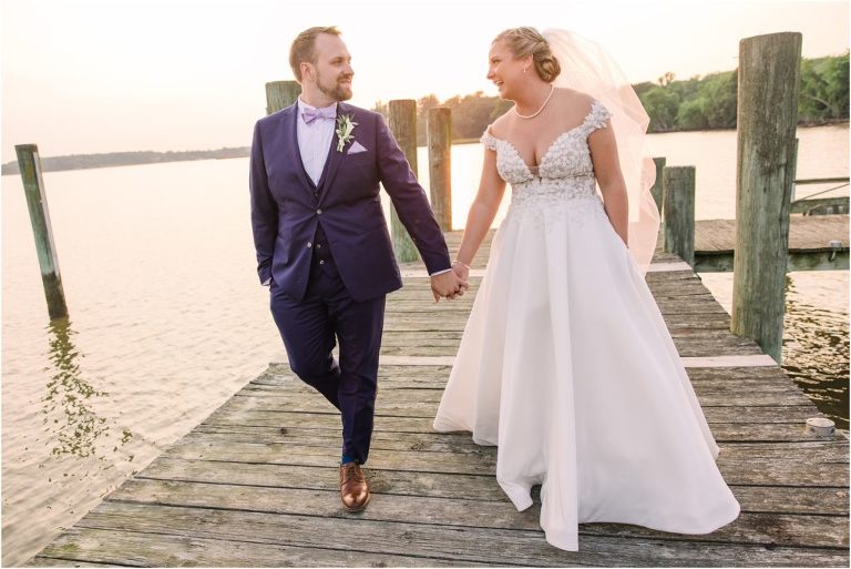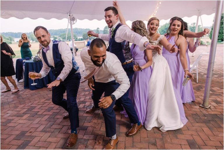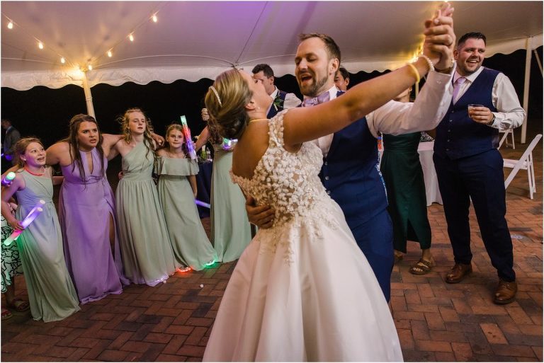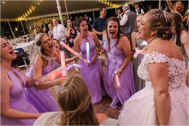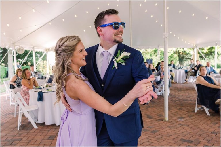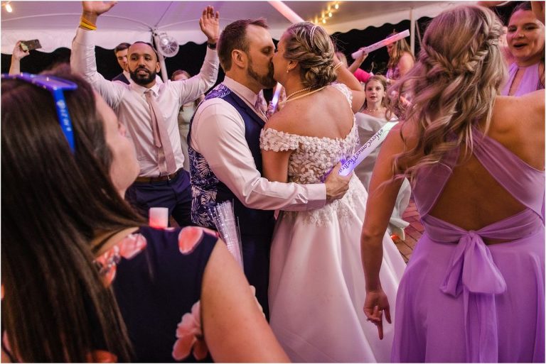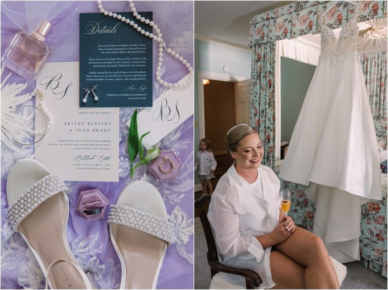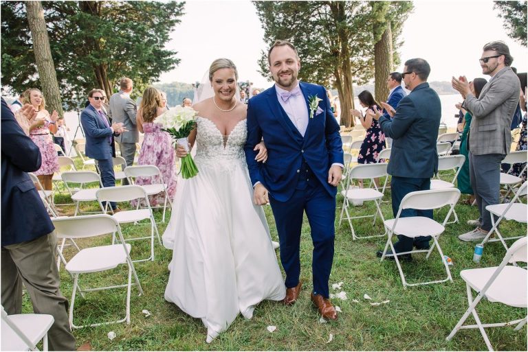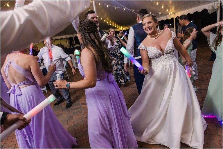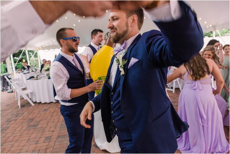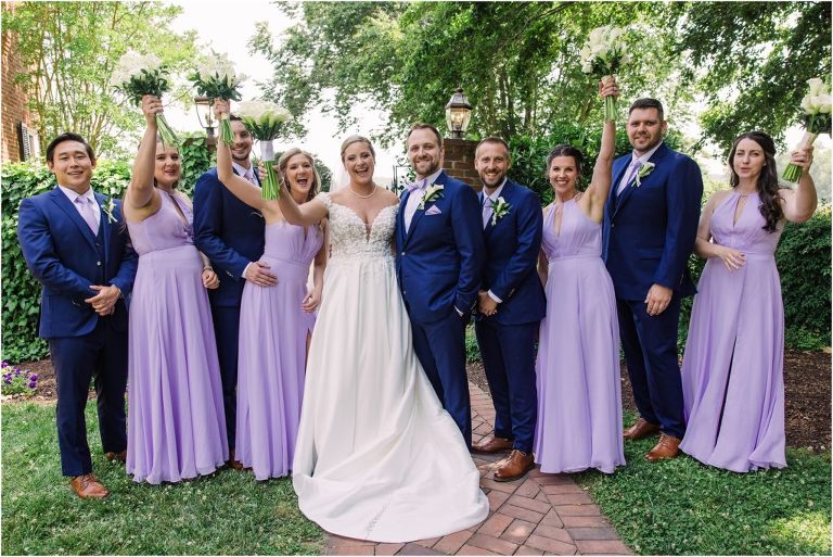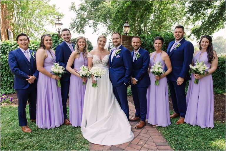 Britny & Sean tied the knot last weekend at beautiful bayside Brittland Estates in Chestertown, Maryland. The day started out with an emotional first look followed by images with the bridal party all decked out in lavender and navy hues. The ceremony took place on the lower lawn overlooking the water where Britny and Sean literally tied a knot signifying their union. After a few pictures with their pup Rocco, everyone headed up the garden for a perfect cocktail hour under the trees. At the end of the reception lots of glow sticks came out which were also used for their fun exit!
