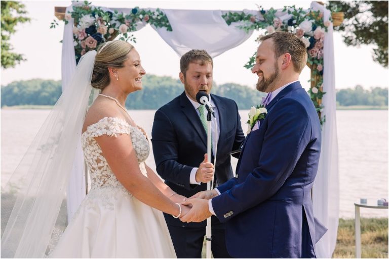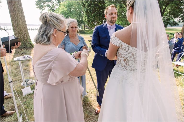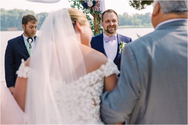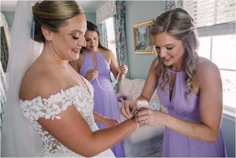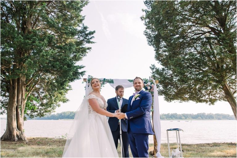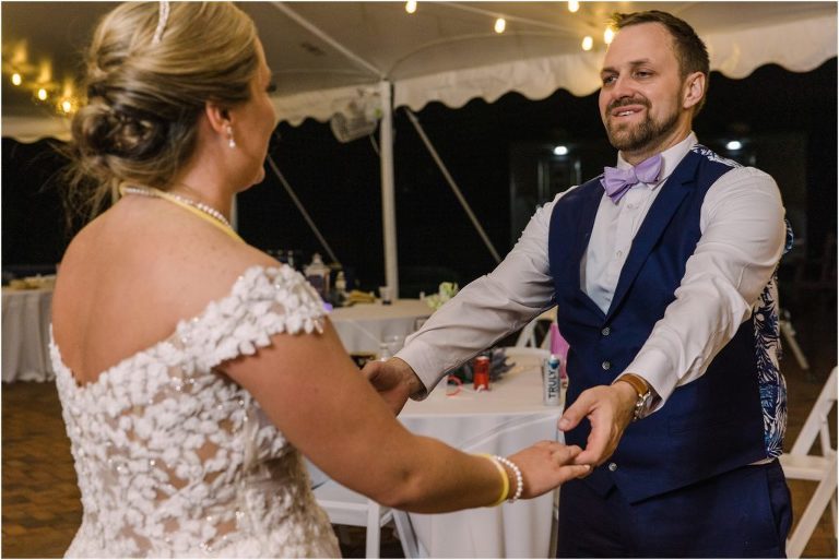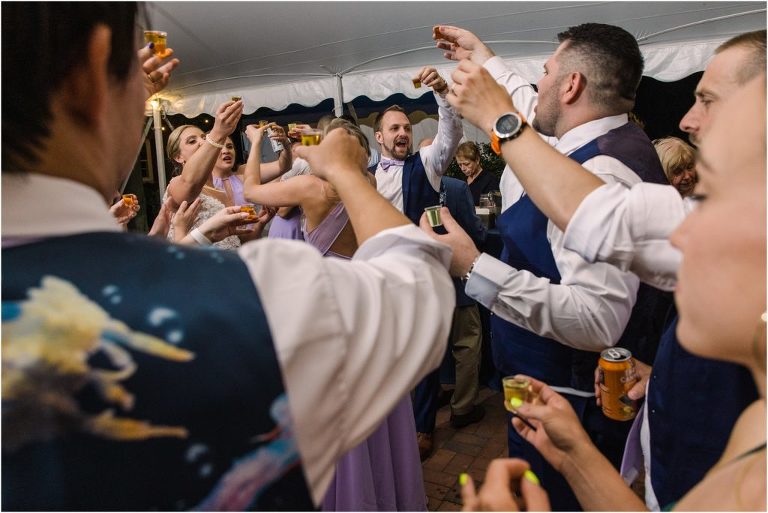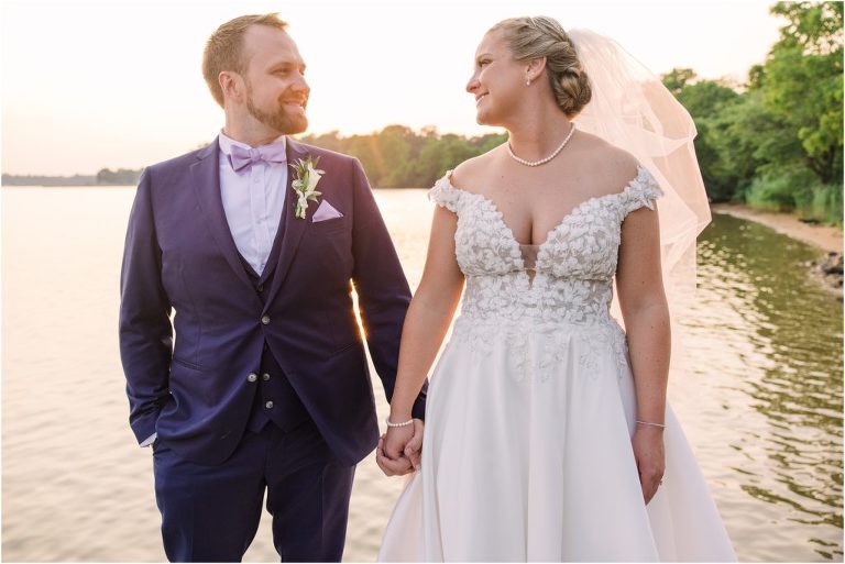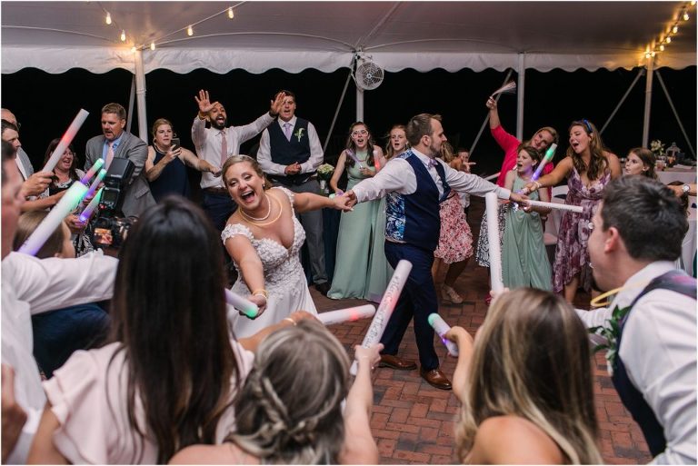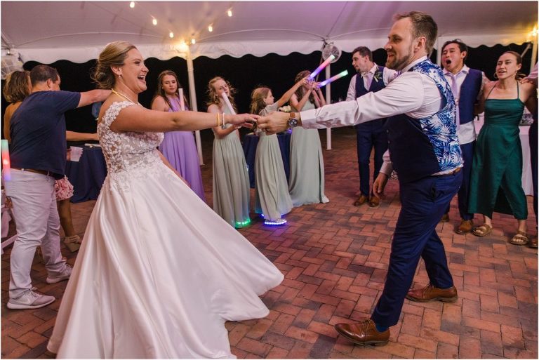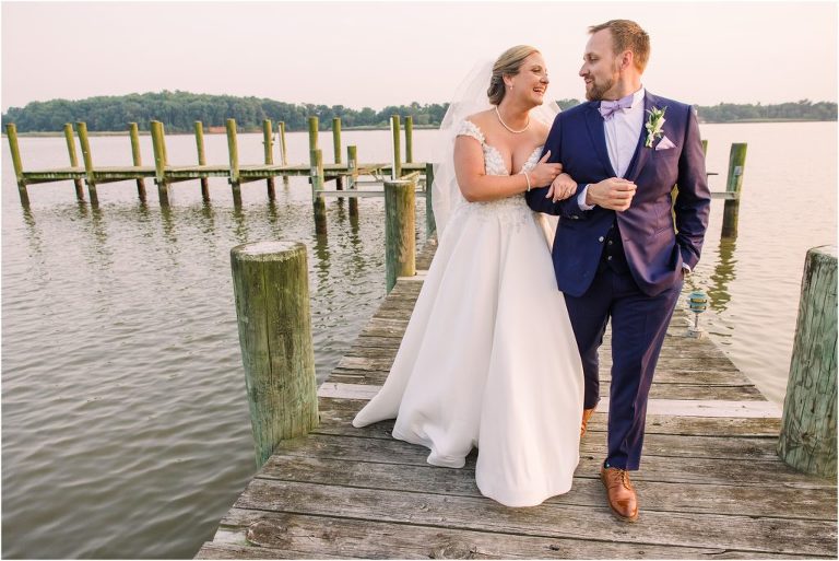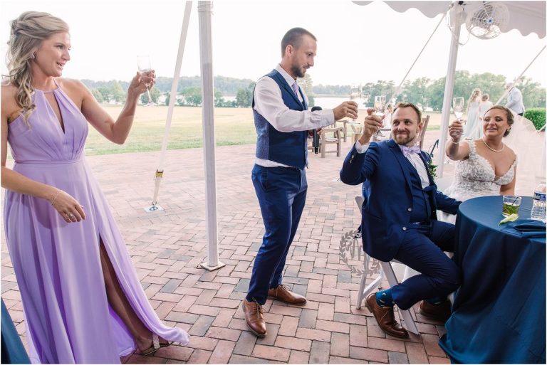 Britny & Sean tied the knot last weekend at beautiful bayside Brittland Estates in Chestertown, Maryland. The day started out with an emotional first look followed by images with the bridal party all decked out in lavender and navy hues. The ceremony took place on the lower lawn overlooking the water where Britny and Sean literally tied a knot signifying their union. After a few pictures with their pup Rocco, everyone headed up the garden for a perfect cocktail hour under the trees. At the end of the reception lots of glow sticks came out which were also used for their fun exit!