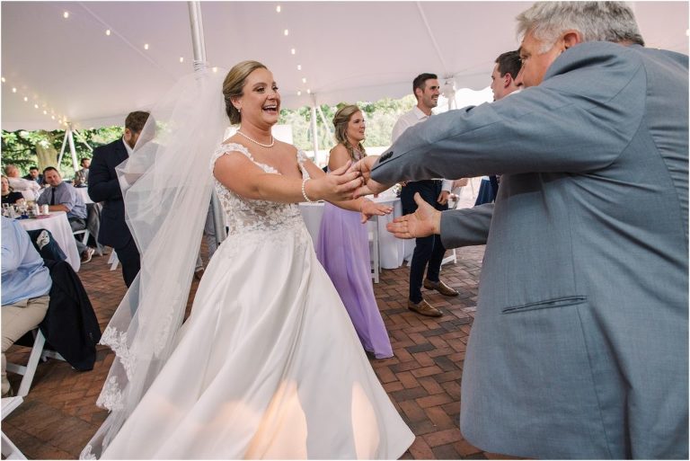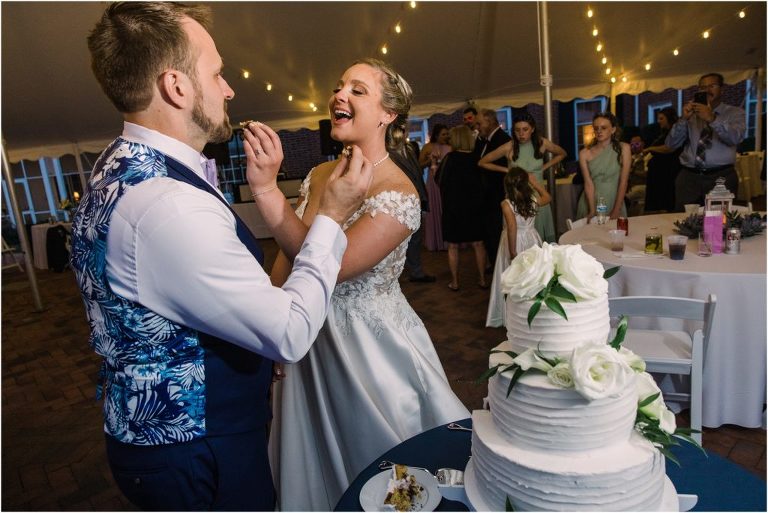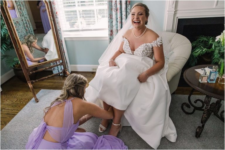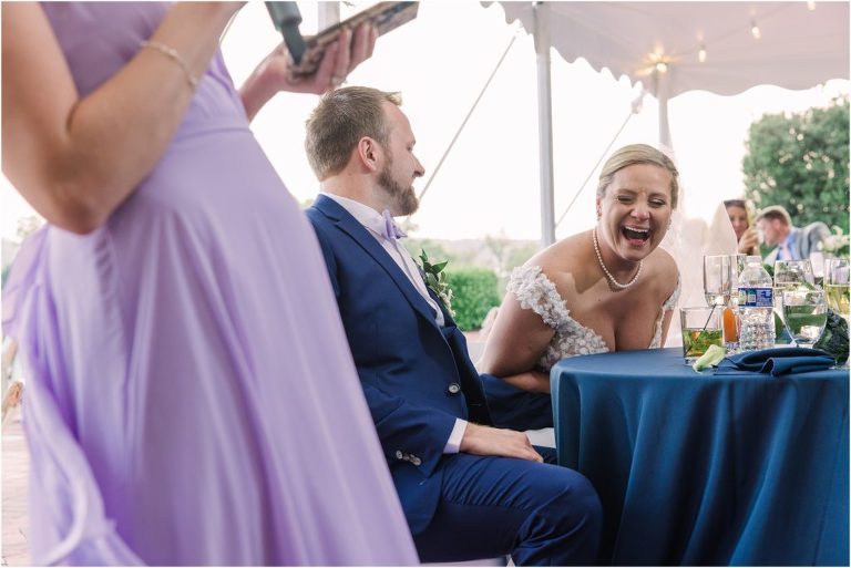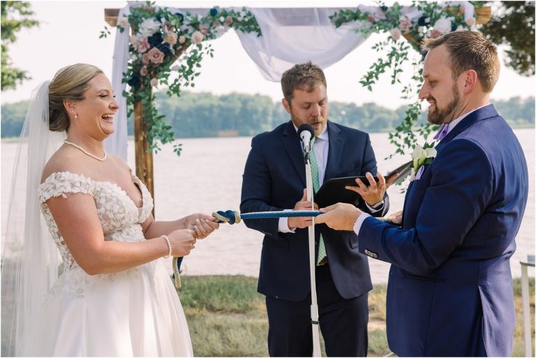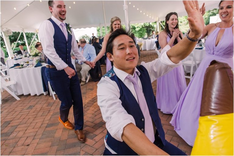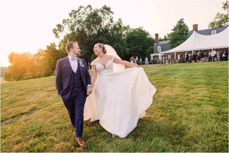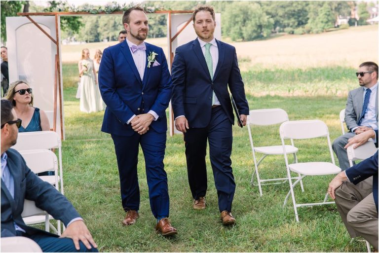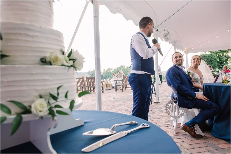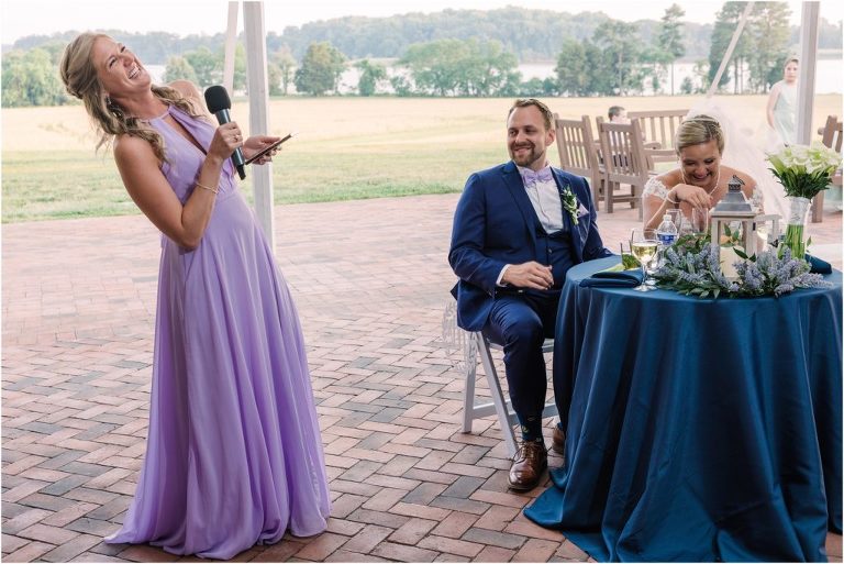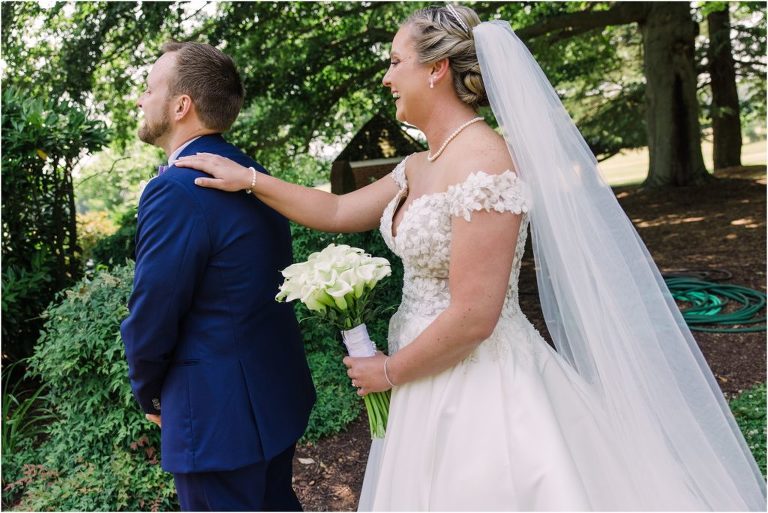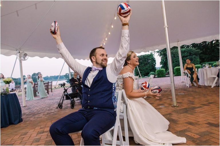 Britny & Sean tied the knot last weekend at beautiful bayside Brittland Estates in Chestertown, Maryland. The day started out with an emotional first look followed by images with the bridal party all decked out in lavender and navy hues. The ceremony took place on the lower lawn overlooking the water where Britny and Sean literally tied a knot signifying their union. After a few pictures with their pup Rocco, everyone headed up the garden for a perfect cocktail hour under the trees. At the end of the reception lots of glow sticks came out which were also used for their fun exit!