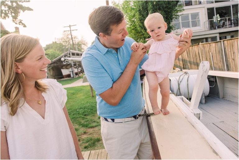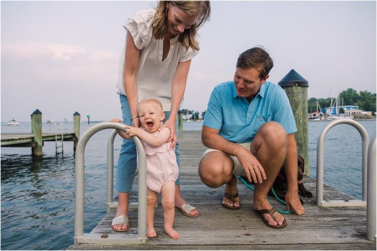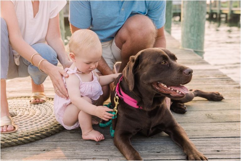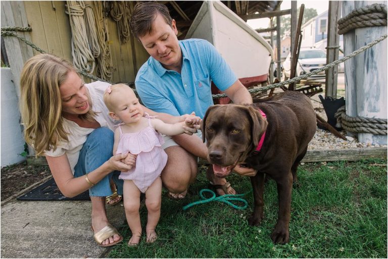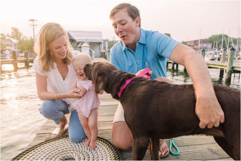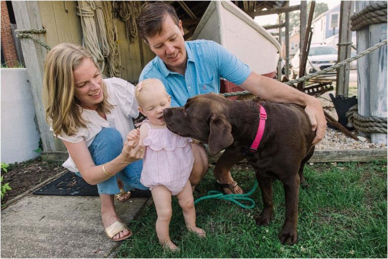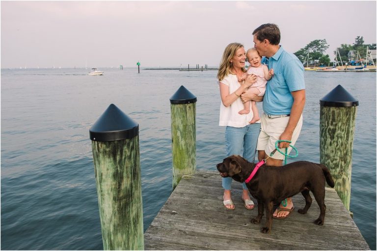 It seems like just yesterday I photographed Elizabeth & Dillon’s wedding at the Annapolis Maritime Museum. I was thrilled when they reached out to me this year to photograph their baby girl, 10 month old Sophie! She was as cute as could be and I loved her little summer outfit! Their chocolate lab Betty also came along and loved giving Sophie big kisses!