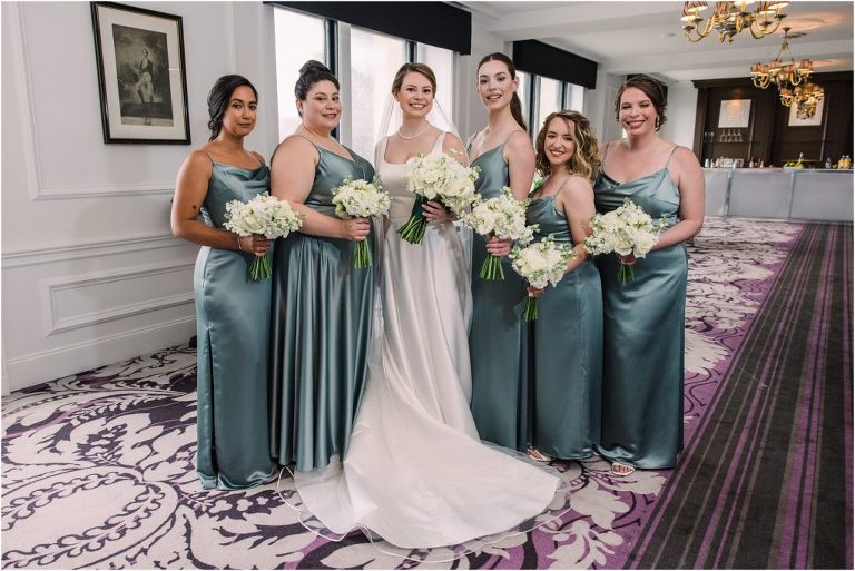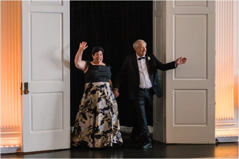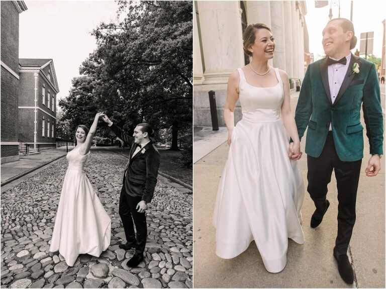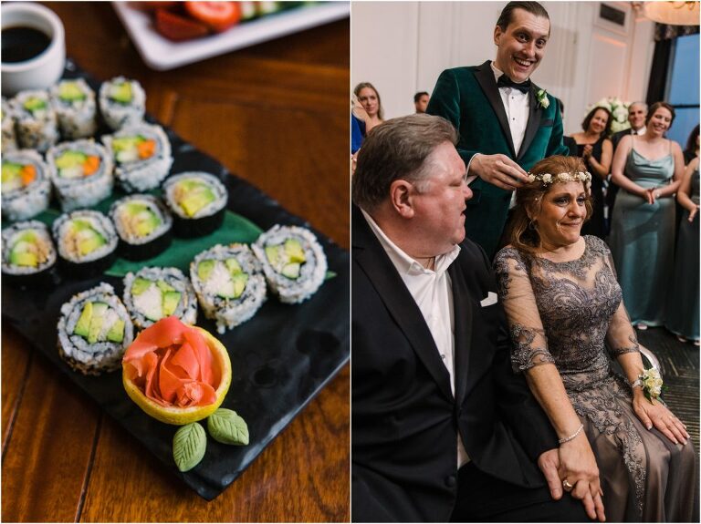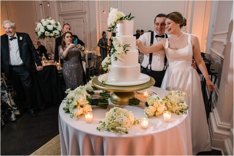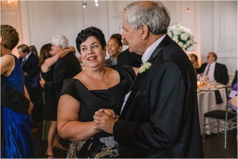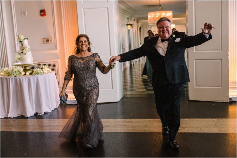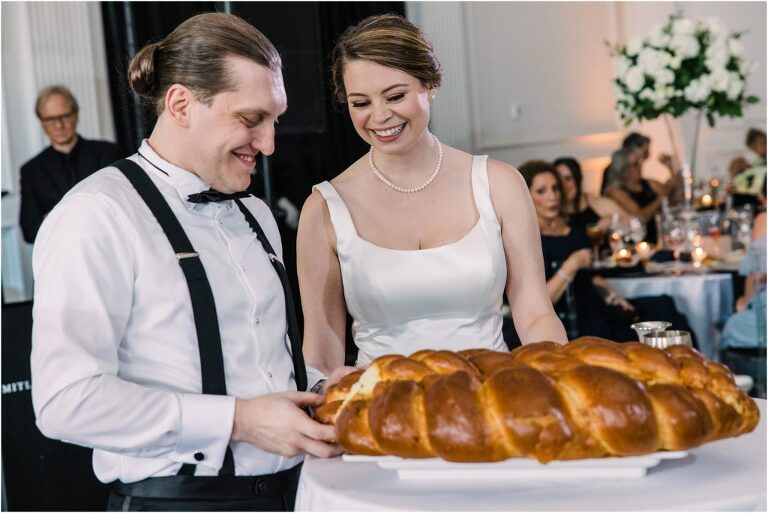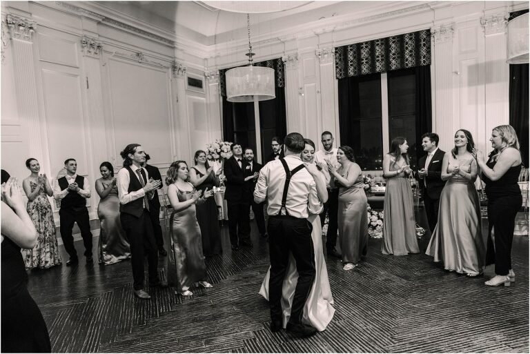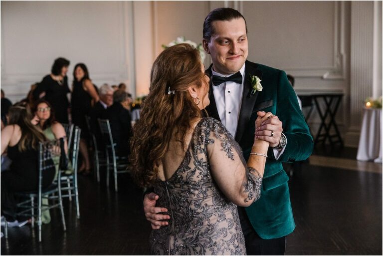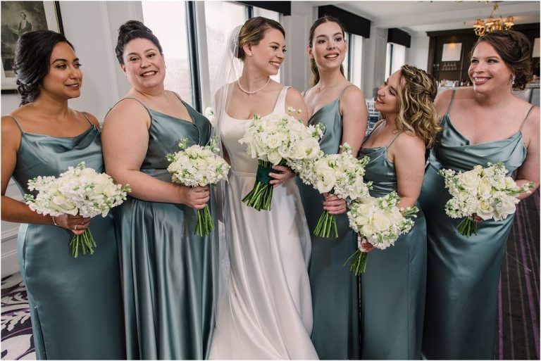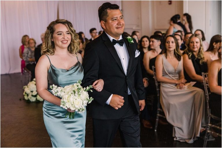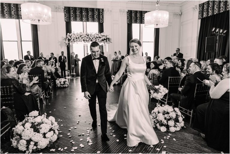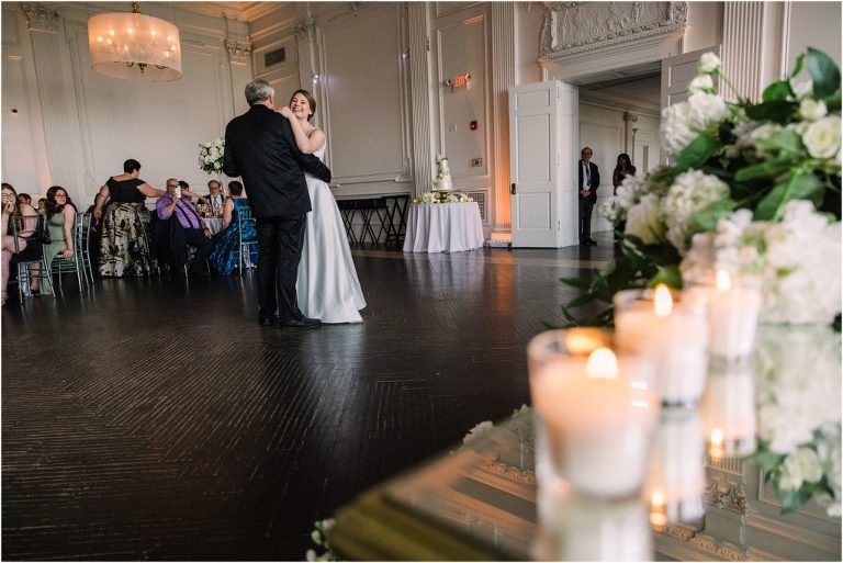 Dorothy & Garrett had the most perfect jewish wedding celebration last weekend at The Downtown Club right in the heart of Philadelphia. The day included so many memorable jewish traditions including a clear acrylic chuppah, the signing of the ketubah, the crowning of the groom’s mother, breaking of the glass, and several hora dances! Their colors of emerald and sage with lots of white accents looked perfect in the grand ballroom space overlooking Independence Hall. The day started out walking the streets with the cutest clear umbrellas to get dressed at the venue. Before the ceremony, their closest family and friends gathering around for the ketubah signing making their marriage official! The reception was full of dancing, laughs and so much spinning!