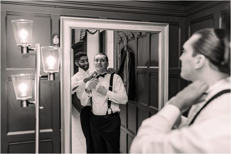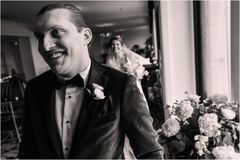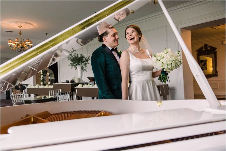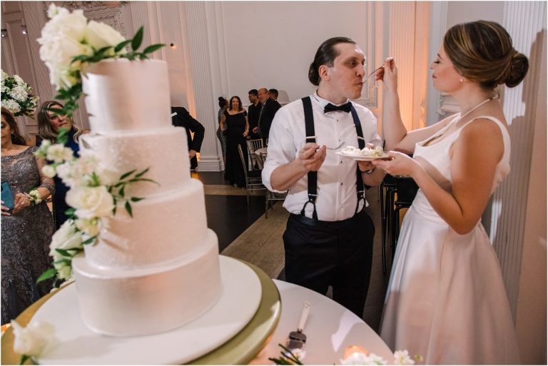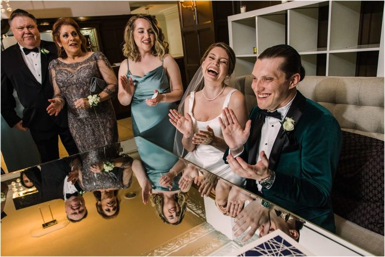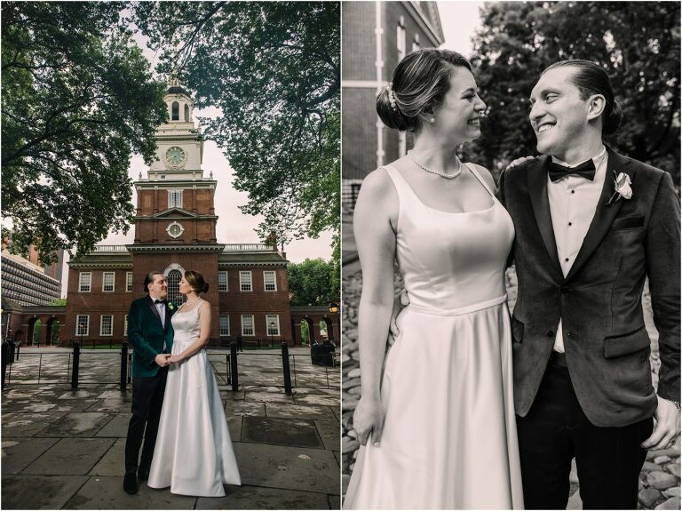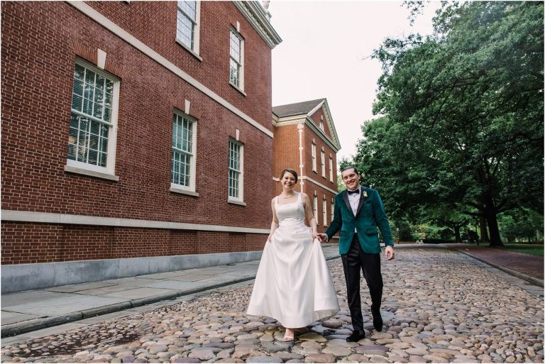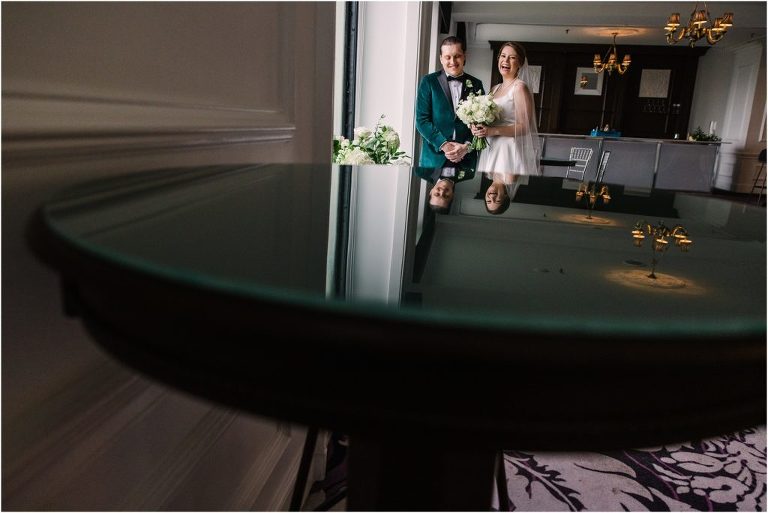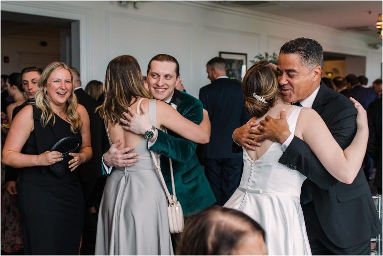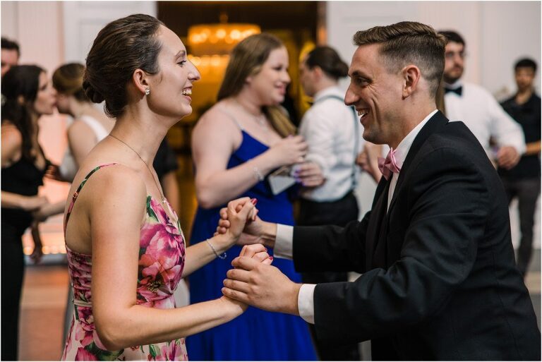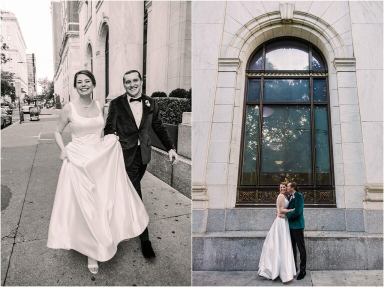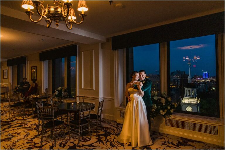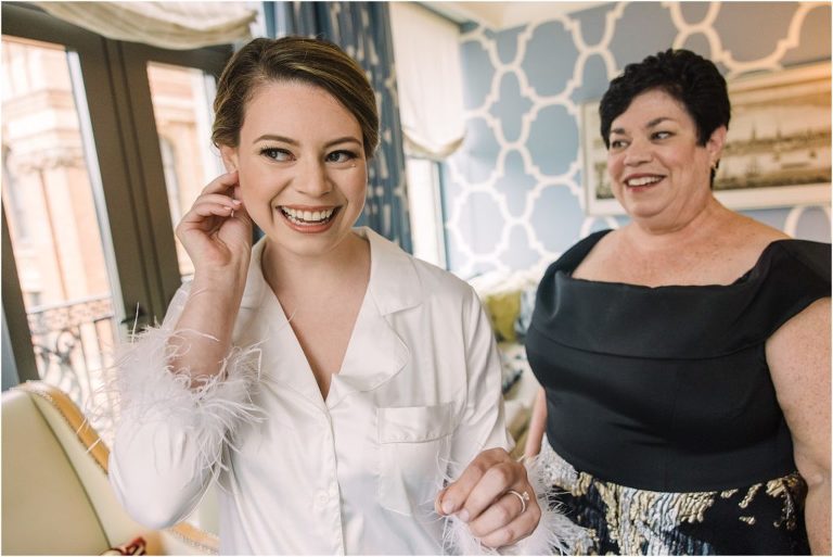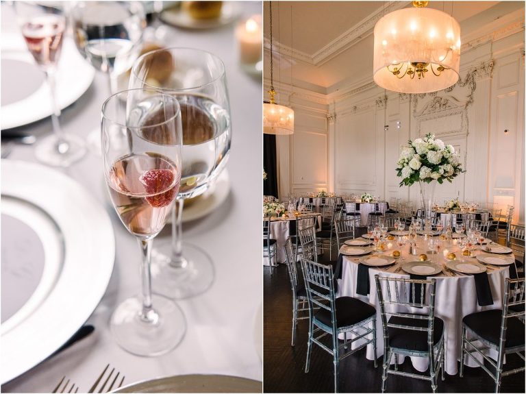 Dorothy & Garrett had the most perfect jewish wedding celebration last weekend at The Downtown Club right in the heart of Philadelphia. The day included so many memorable jewish traditions including a clear acrylic chuppah, the signing of the ketubah, the crowning of the groom’s mother, breaking of the glass, and several hora dances! Their colors of emerald and sage with lots of white accents looked perfect in the grand ballroom space overlooking Independence Hall. The day started out walking the streets with the cutest clear umbrellas to get dressed at the venue. Before the ceremony, their closest family and friends gathering around for the ketubah signing making their marriage official! The reception was full of dancing, laughs and so much spinning!