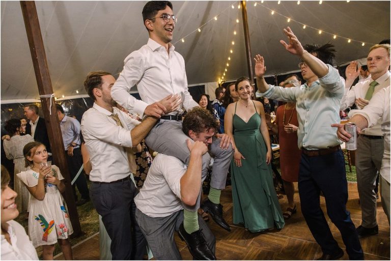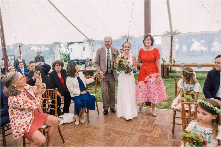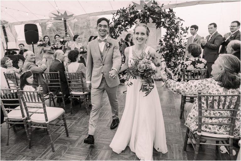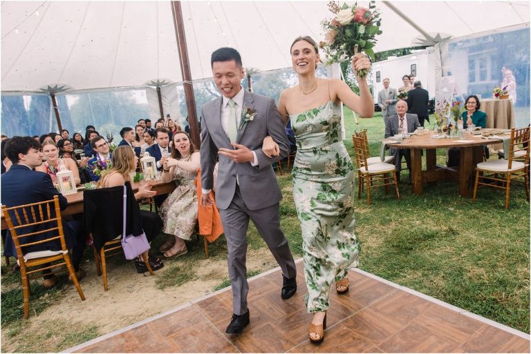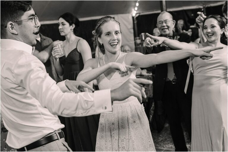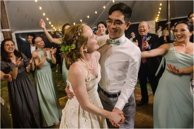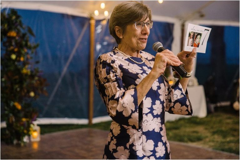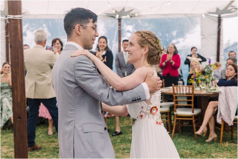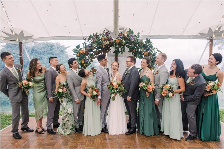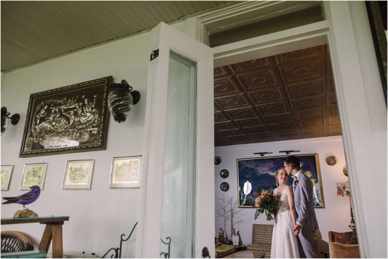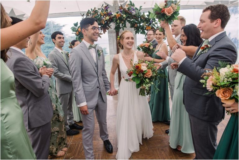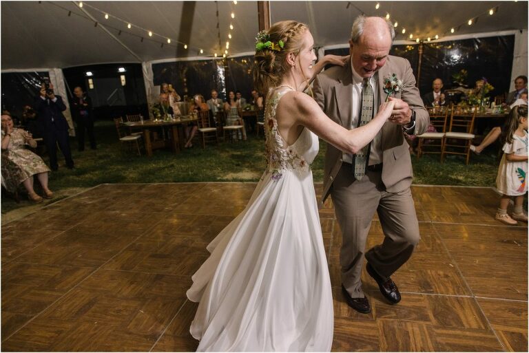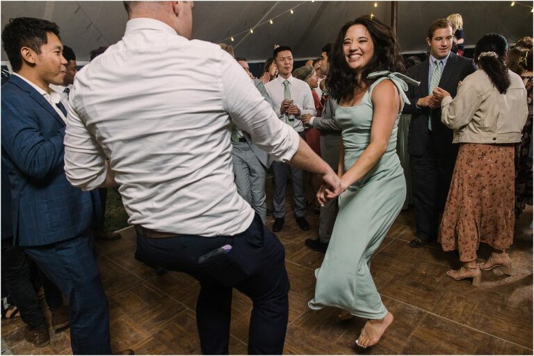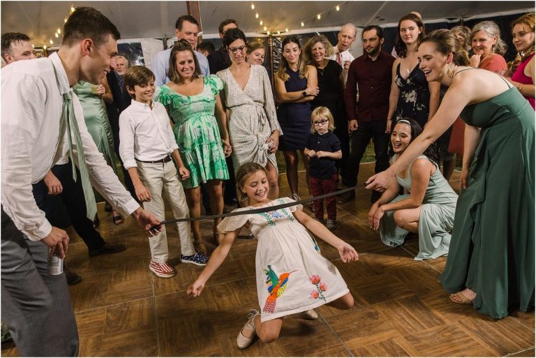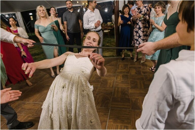 Tropical storm Ophelia didn’t stop Kate & Chris from having the best time on their wedding day at Black Walnut Point Inn in Tilghman Island, Maryland! Their colors included lots of earthy fall tones and even custom flower details sewn onto Kate’s bridal gown. Fresh cut flowers in vases were seen on each and every table along with hand painted oyster table numbers. Each guest was given an oyster shell favor handmade by Kate herself! After a first look in the bed and breakfast house, Kate and Chris braved the wind for a few shots outside. The ceremony and reception took place under a beautiful sailcloth tent with a hand tying, hilarious toasts and lots of dancing under string lights. Everyone really got into limbo towards the end of the night!