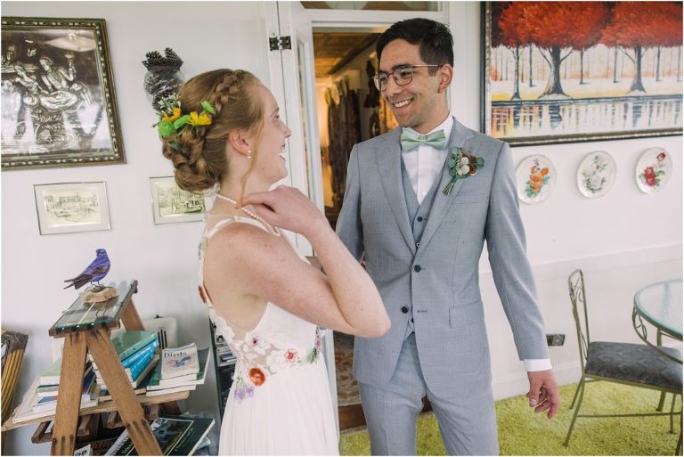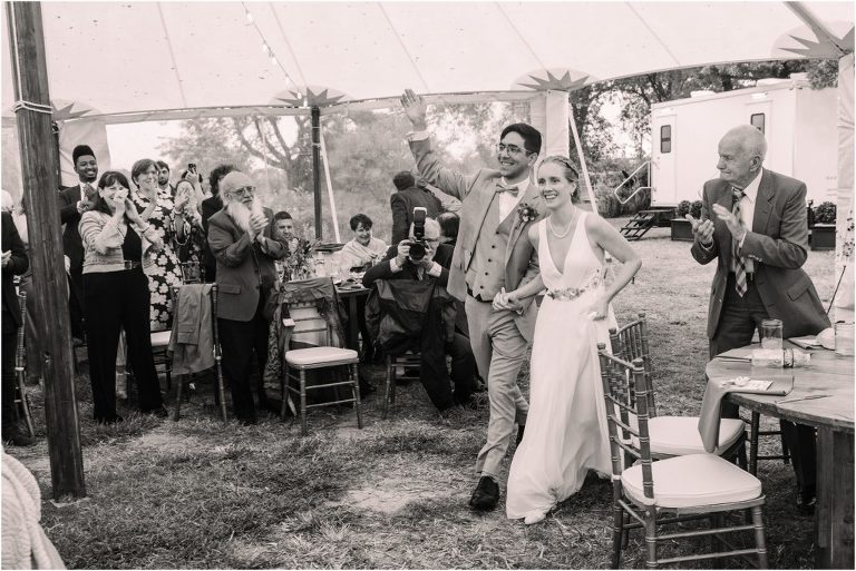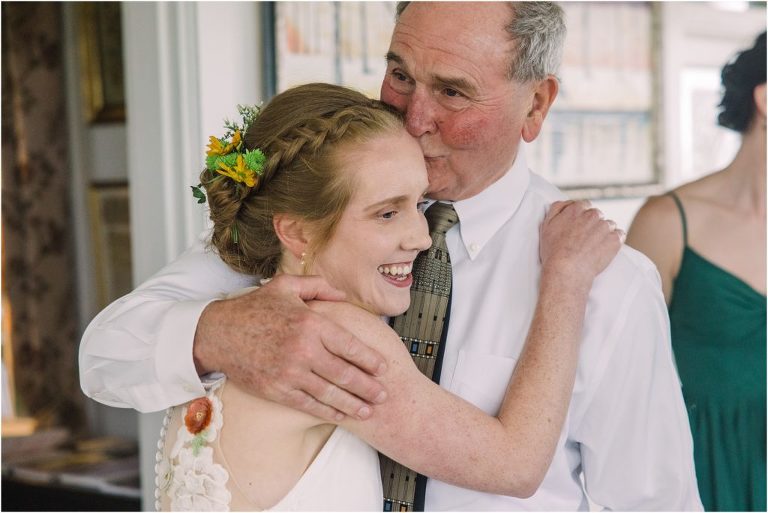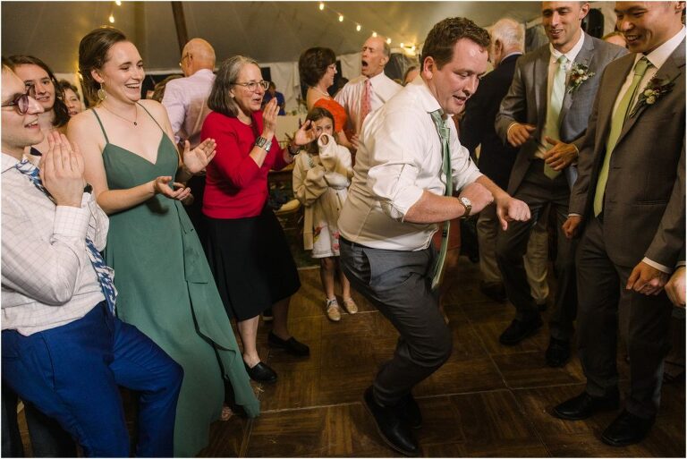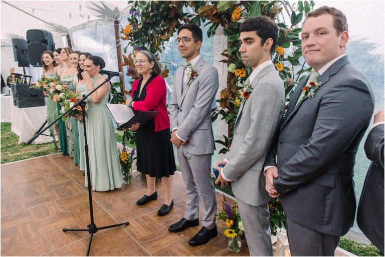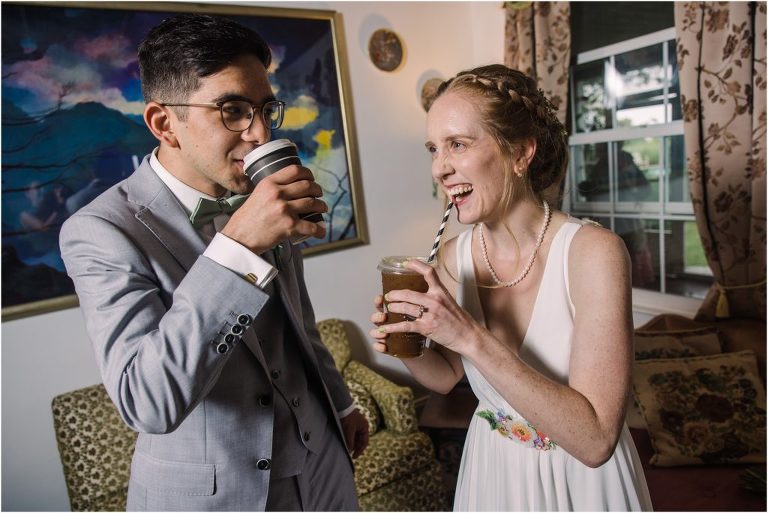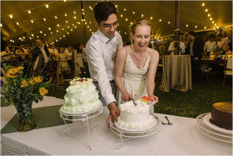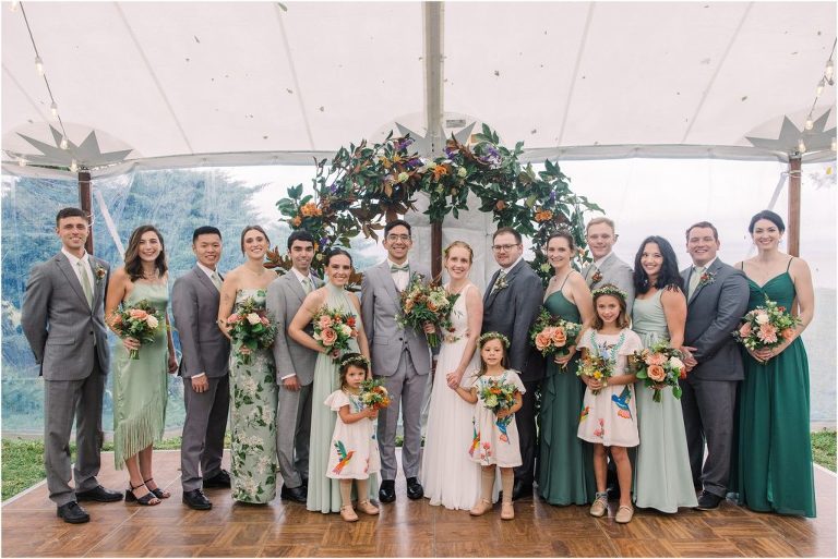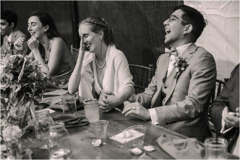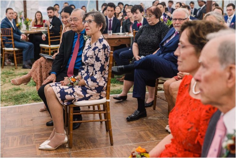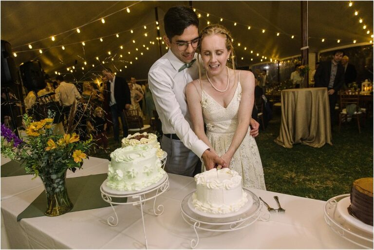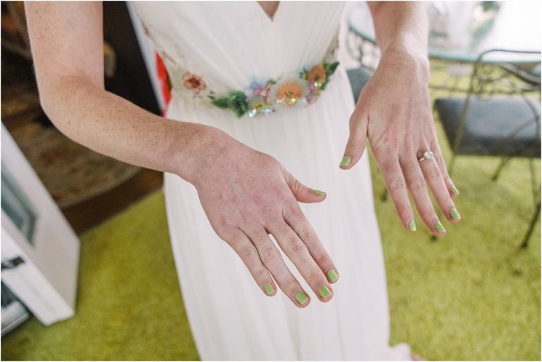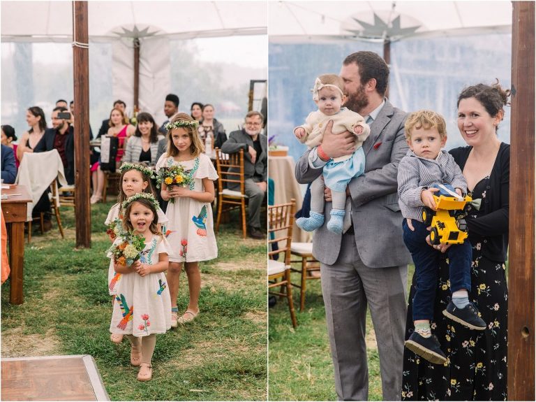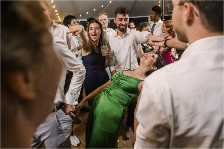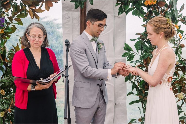 Tropical storm Ophelia didn’t stop Kate & Chris from having the best time on their wedding day at Black Walnut Point Inn in Tilghman Island, Maryland! Their colors included lots of earthy fall tones and even custom flower details sewn onto Kate’s bridal gown. Fresh cut flowers in vases were seen on each and every table along with hand painted oyster table numbers. Each guest was given an oyster shell favor handmade by Kate herself! After a first look in the bed and breakfast house, Kate and Chris braved the wind for a few shots outside. The ceremony and reception took place under a beautiful sailcloth tent with a hand tying, hilarious toasts and lots of dancing under string lights. Everyone really got into limbo towards the end of the night!