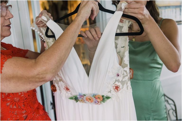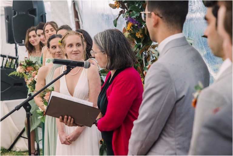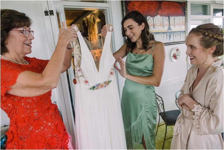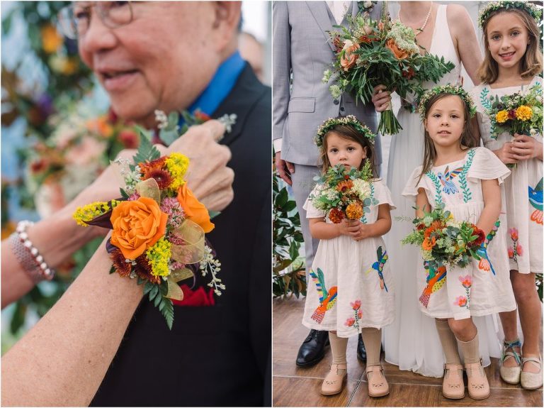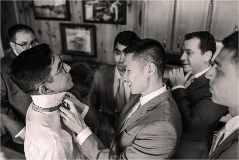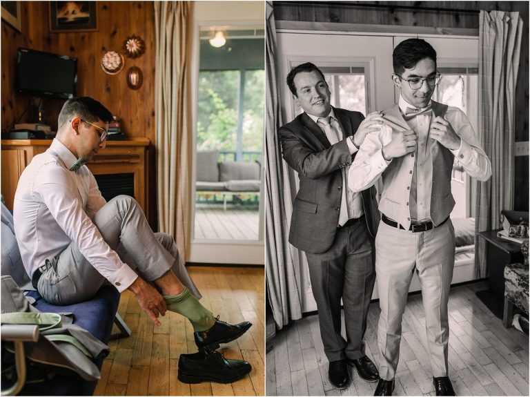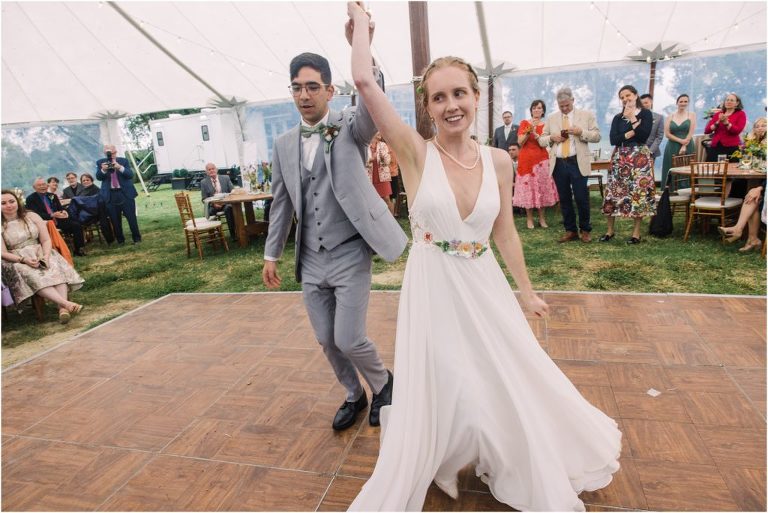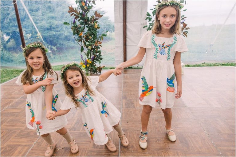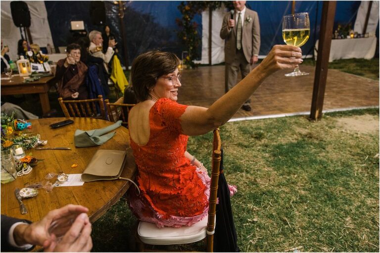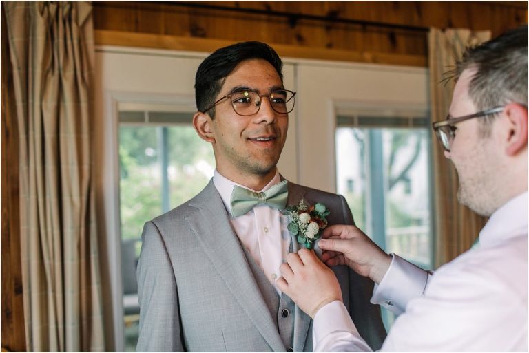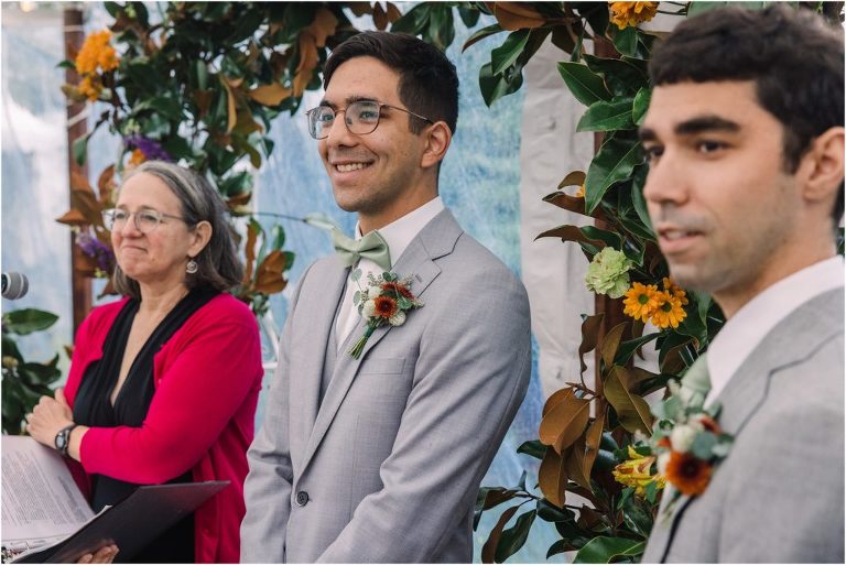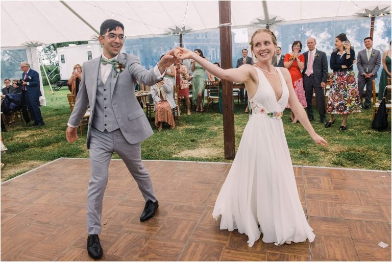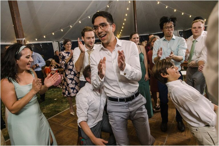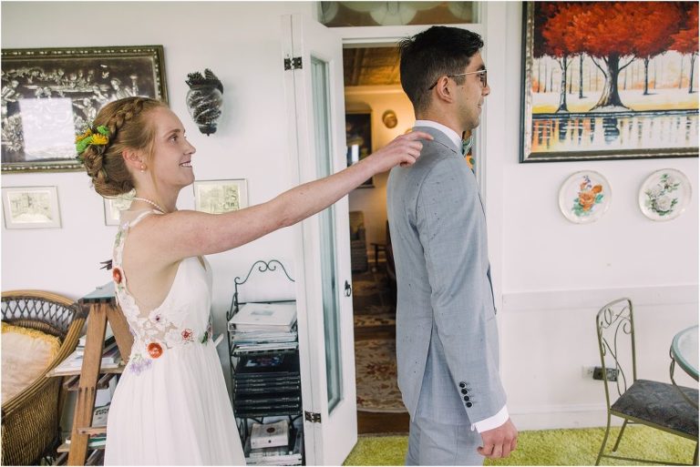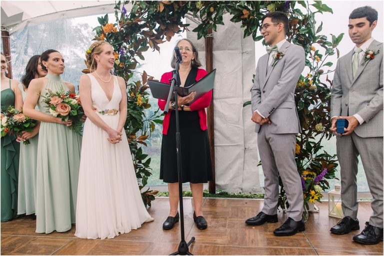 Tropical storm Ophelia didn’t stop Kate & Chris from having the best time on their wedding day at Black Walnut Point Inn in Tilghman Island, Maryland! Their colors included lots of earthy fall tones and even custom flower details sewn onto Kate’s bridal gown. Fresh cut flowers in vases were seen on each and every table along with hand painted oyster table numbers. Each guest was given an oyster shell favor handmade by Kate herself! After a first look in the bed and breakfast house, Kate and Chris braved the wind for a few shots outside. The ceremony and reception took place under a beautiful sailcloth tent with a hand tying, hilarious toasts and lots of dancing under string lights. Everyone really got into limbo towards the end of the night!