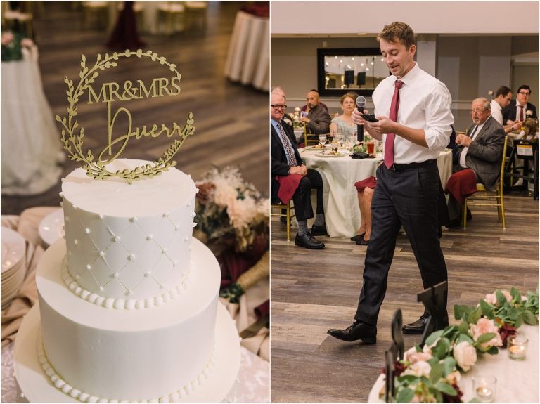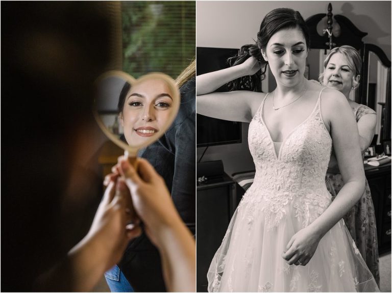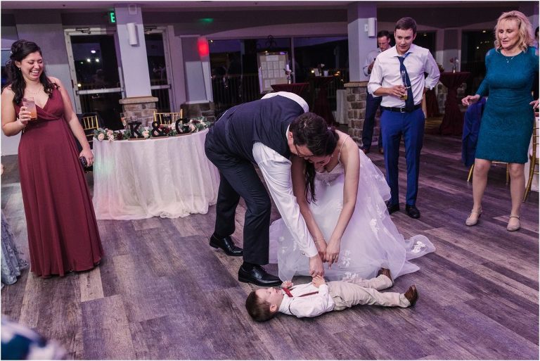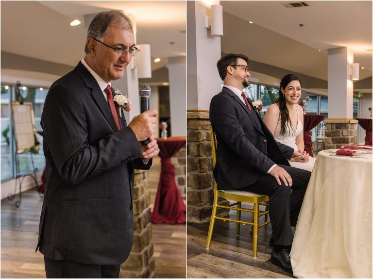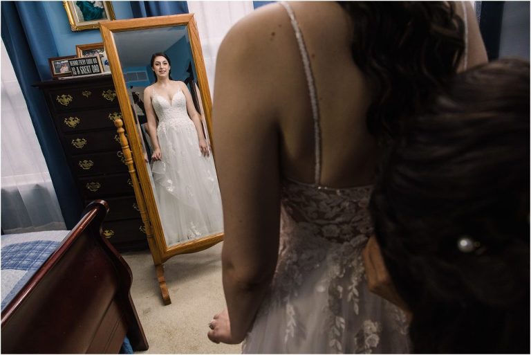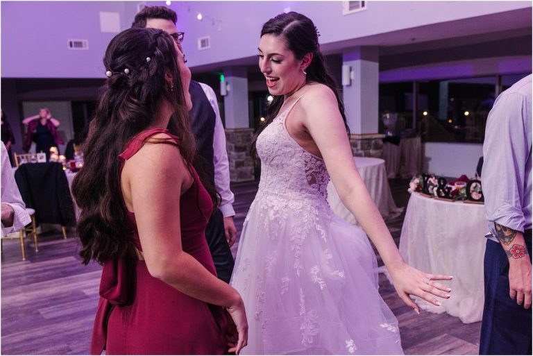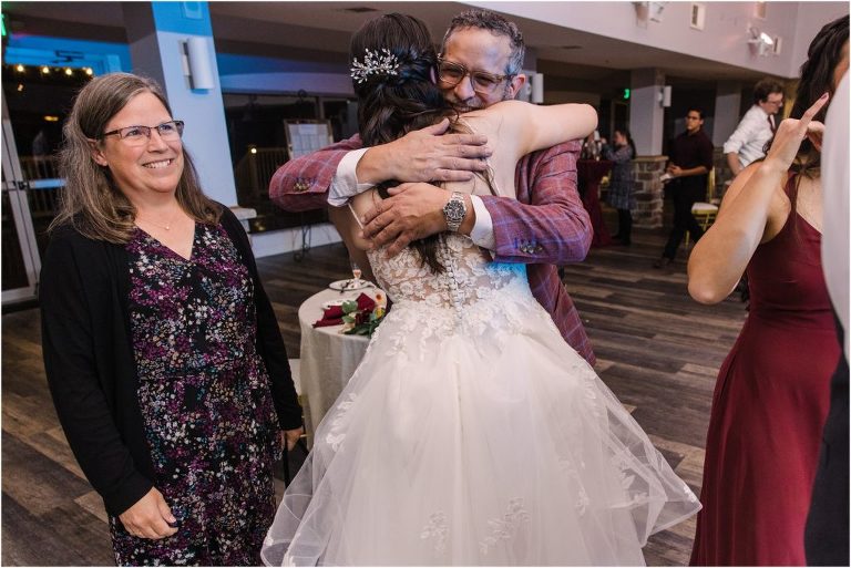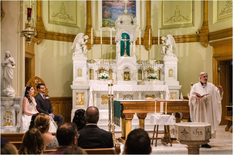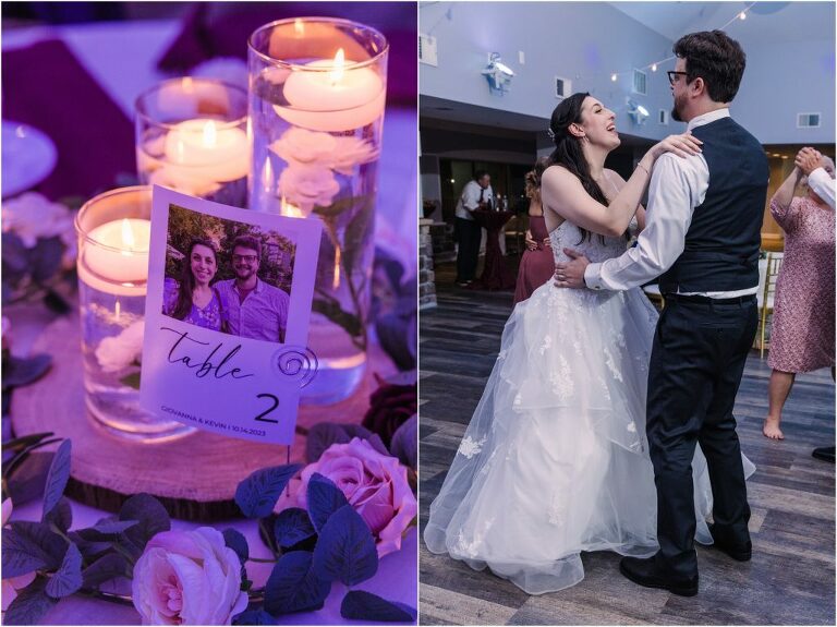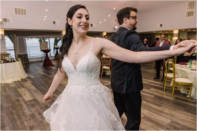 Giovanna & Kevin married at their beautiful family church, St. Augustine Church in Elkridge, Maryland. I loved the inside of the church with all of the arches and starred ceiling! Next was a reception at Bayfront Club on the water in Edgemere where these two celebrated with their family and friends. The rain didn’t stop these two from spending some time outside for pictures and I loved the dock and bay grasses. A fun detail was the custom bookshelf made by Giovanna’s grandfather. Each book was filled with homemade cookies as a favor for each guest. Their first dance included lots of spins and fun moves and at the end, Giovanna and Kevin had a sparkler exit out front!