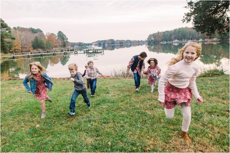 The Dumais Family all came together to celebrate the Thanksgiving holiday this year in St. Michaels, Maryland. The family is growing so much and the latest additions are 3 year old Lucie and 2 year old Ben, both cute as could be! Everyone looked very coordinated with their maroon, pink and blues and we lucked out with a pretty comfortable November day. We hit the dock and then the lawn overlooking the bay where the kids raced each other and played ring around the rosie!