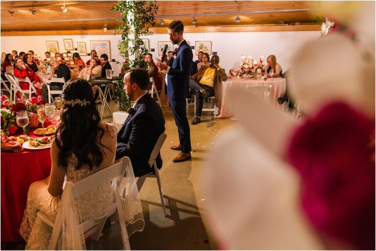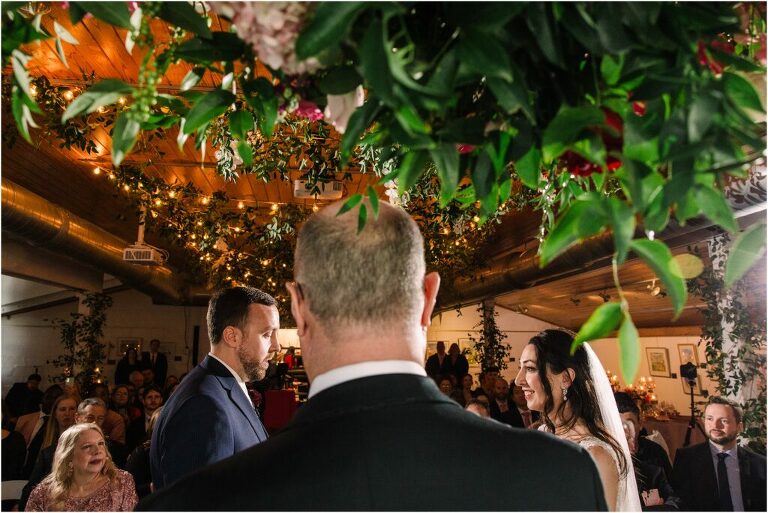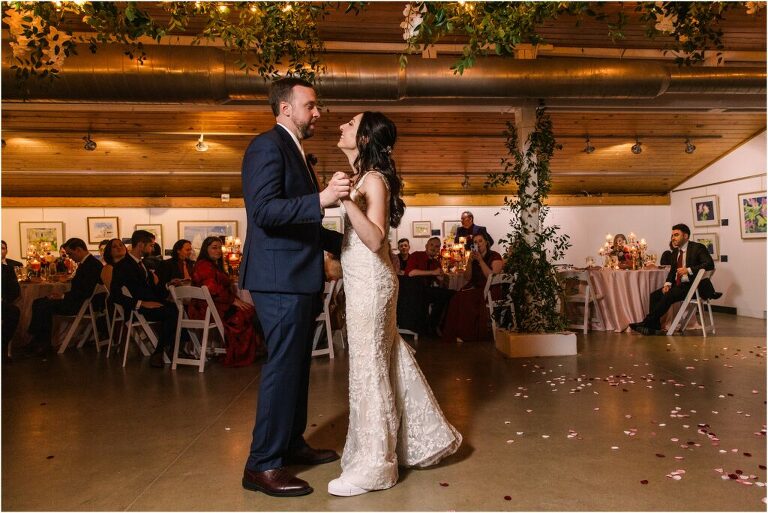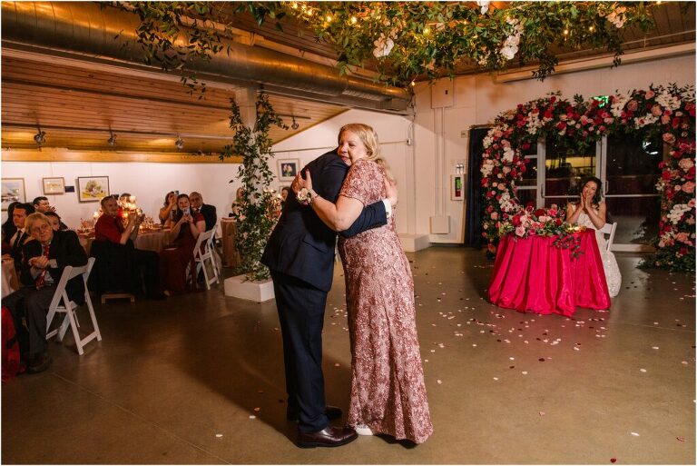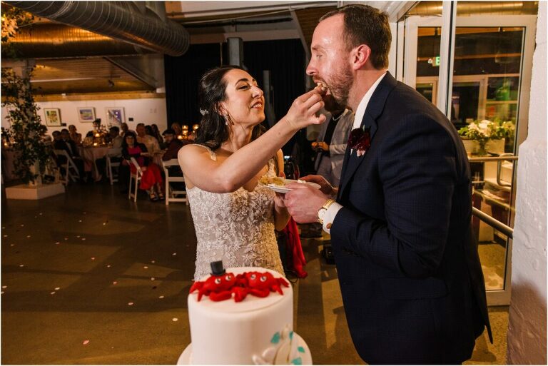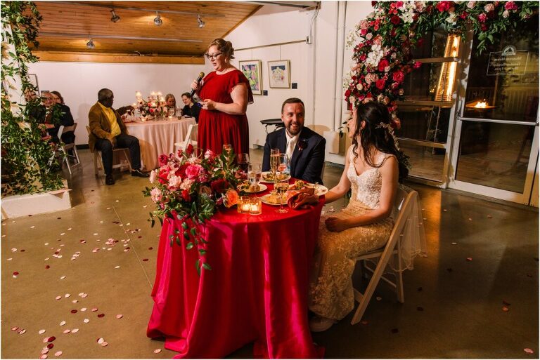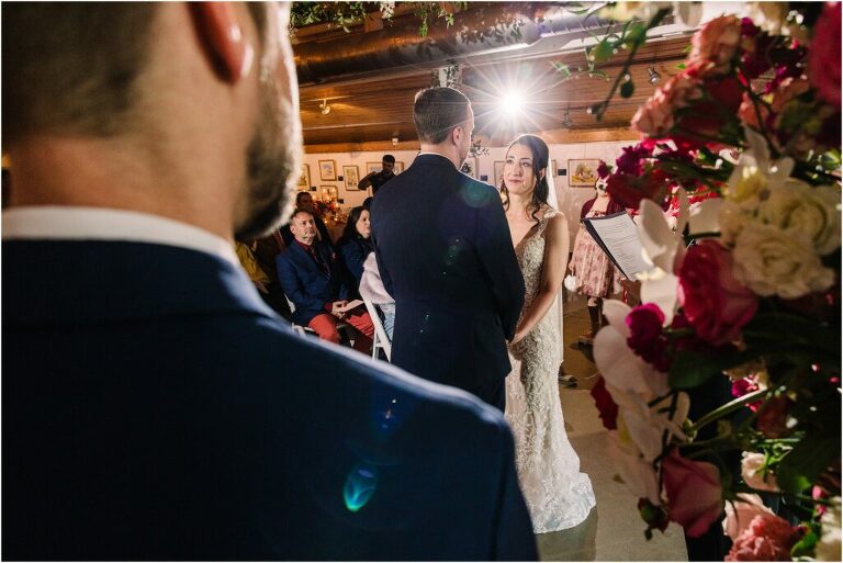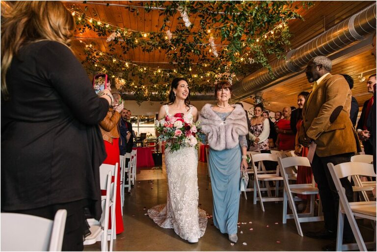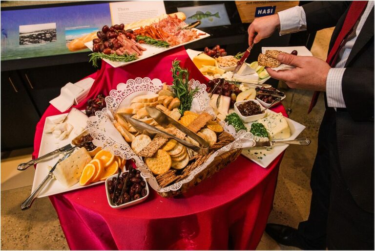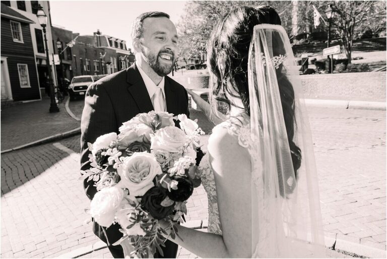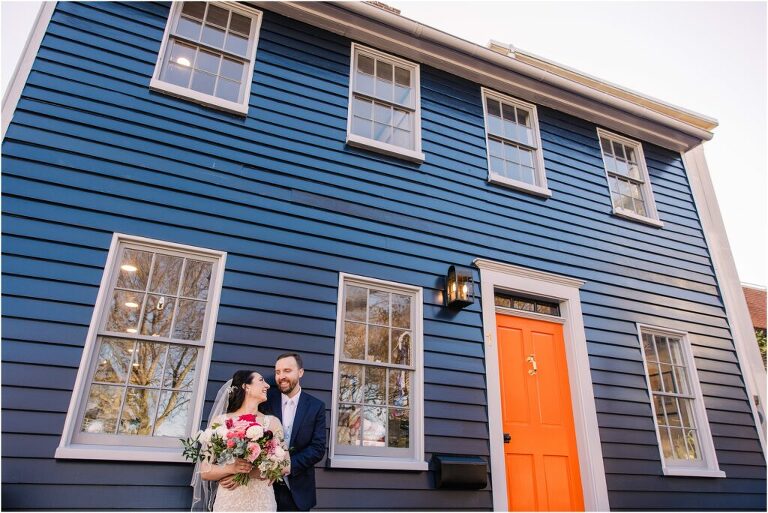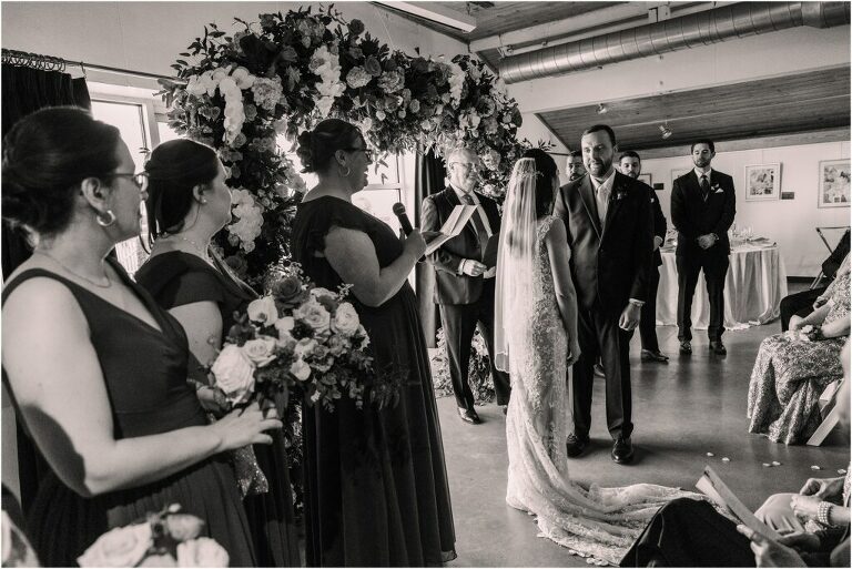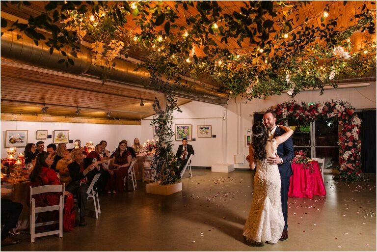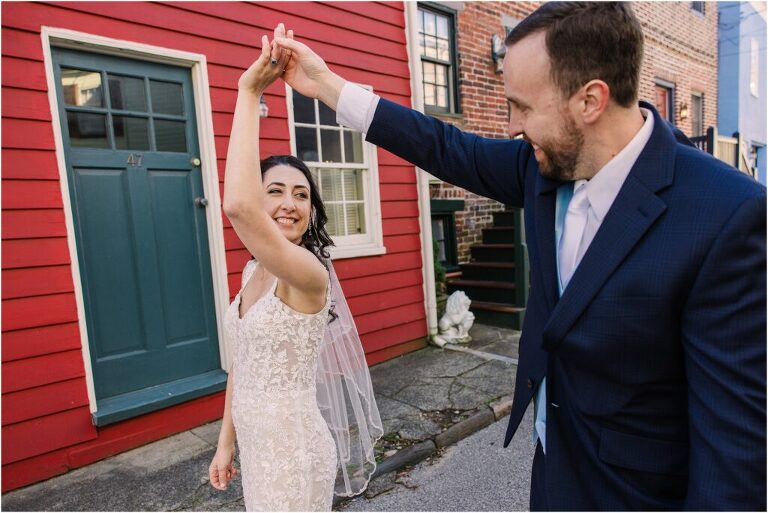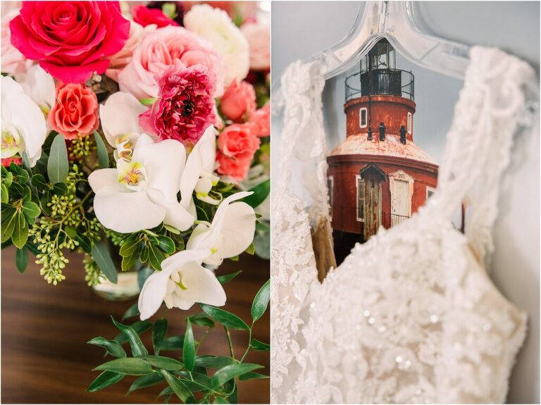 Valentine’s Day is very special to Alex and Keven because it is on this date that they first met 9 years ago in Baltimore! They decided to tie the knot on Valentine’s Day this year at the Annapolis Maritime Museum with lots of pink and red details including an impressive custom heart shaped floral arch. They even asked all of their guests to wear red and pink which was perfect for the theme! Annapolis is also a special place for Alex & Keven as they had their first kiss near the capital dome and Keven also proposed in the same spot. We started out with a first look at this very spot and toured some of the picturesque streets throughout downtown. Their romantic ceremony took place inside with the ceiling covered in flowing greenery and white orchids. A cute detail was the wedding cake with personal details including the capital dome, two crabs, and natty boh proposing to the utz girl! Guests enjoyed s’mores by the fire and a fun sparkler exit at the end!