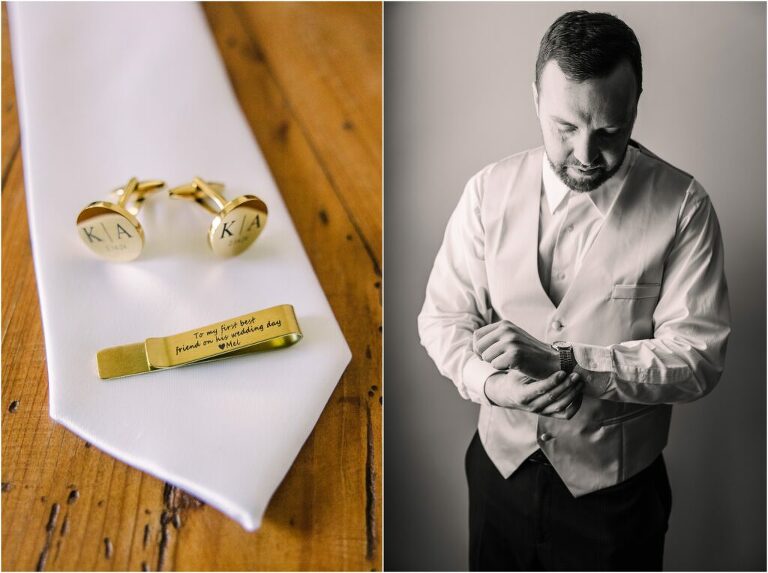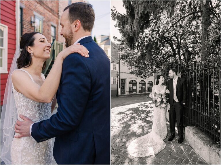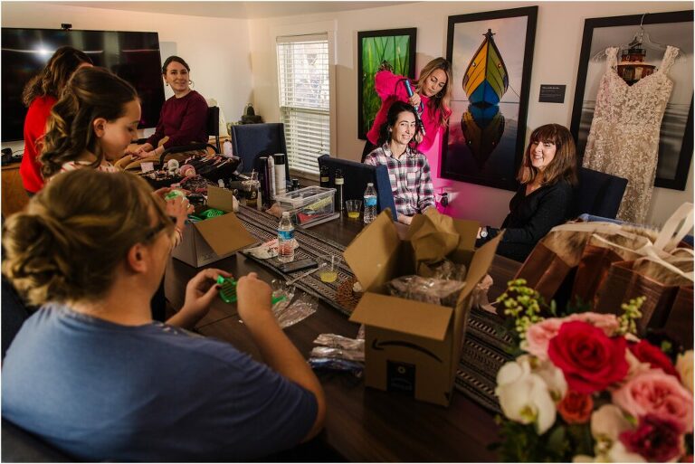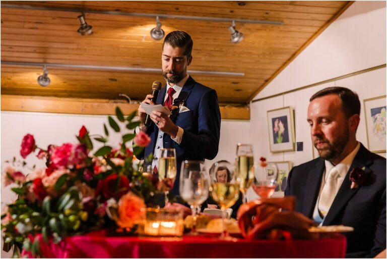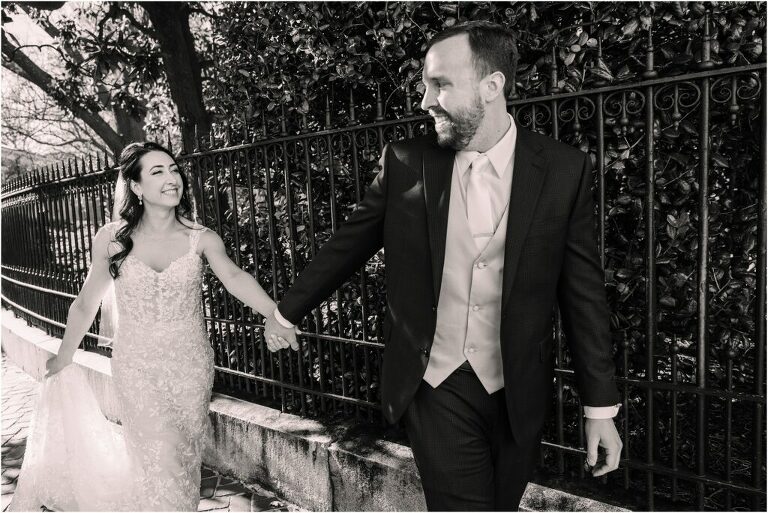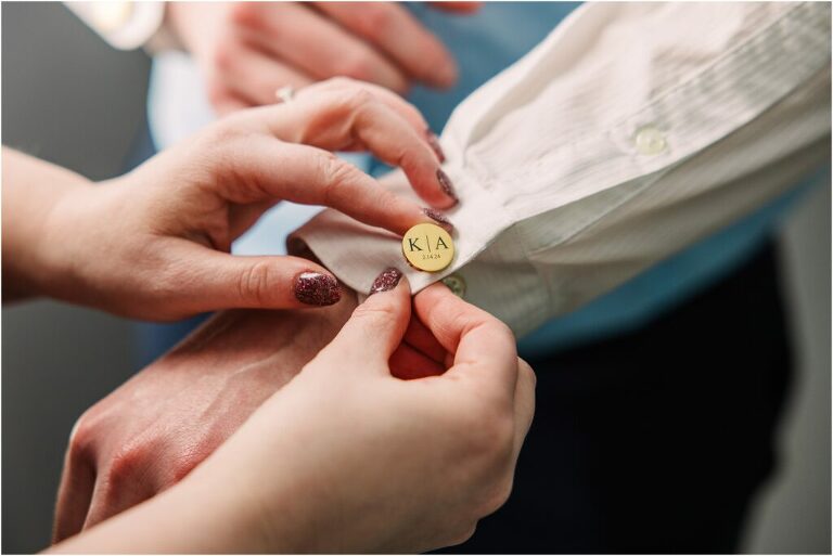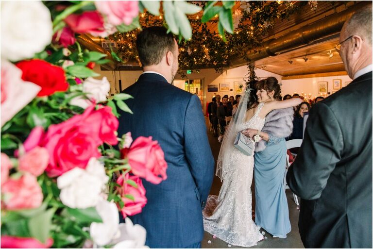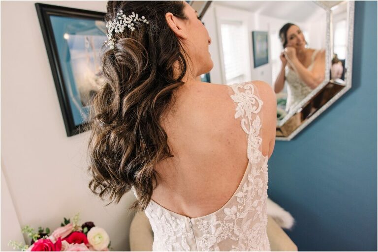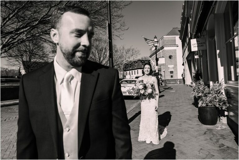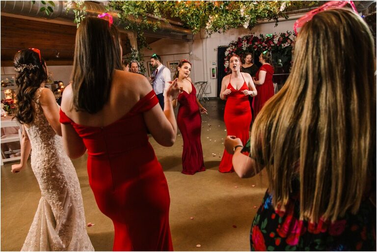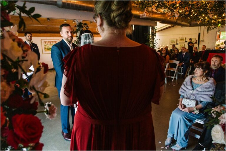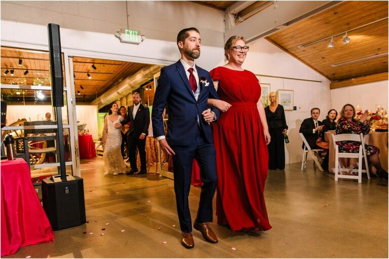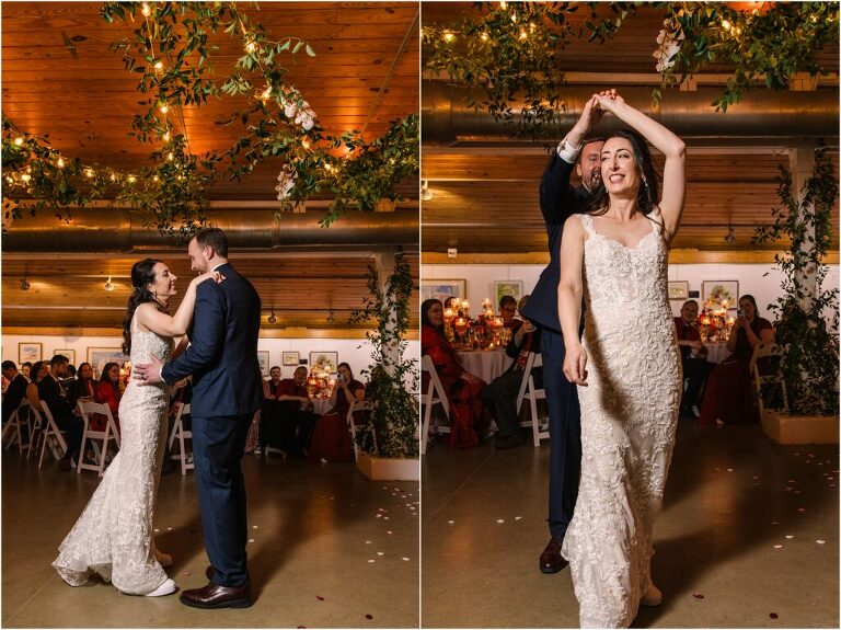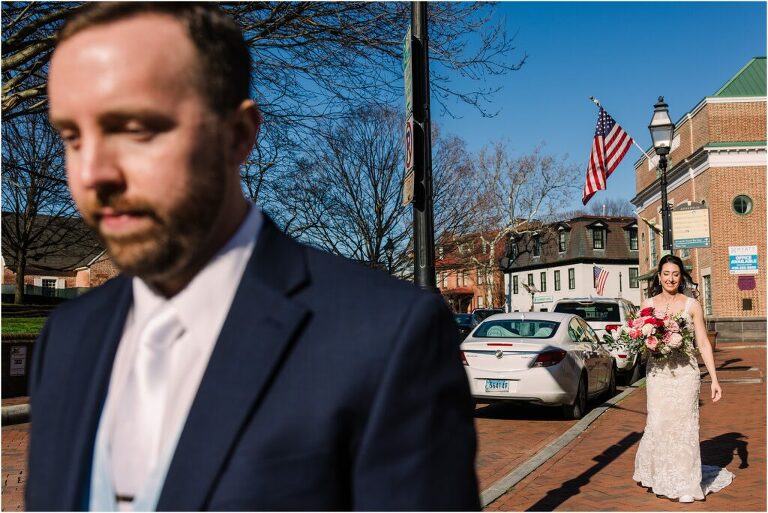Valentine’s Day is very special to Alex and Keven because it is on this date that they first met 9 years ago in Baltimore! They decided to tie the knot on Valentine’s Day this year at the Annapolis Maritime Museum with lots of pink and red details including an impressive custom heart shaped floral arch. They even asked all of their guests to wear red and pink which was perfect for the theme! Annapolis is also a special place for Alex & Keven as they had their first kiss near the capital dome and Keven also proposed in the same spot. We started out with a first look at this very spot and toured some of the picturesque streets throughout downtown. Their romantic ceremony took place inside with the ceiling covered in flowing greenery and white orchids. A cute detail was the wedding cake with personal details including the capital dome, two crabs, and natty boh proposing to the utz girl! Guests enjoyed s’mores by the fire and a fun sparkler exit at the end!