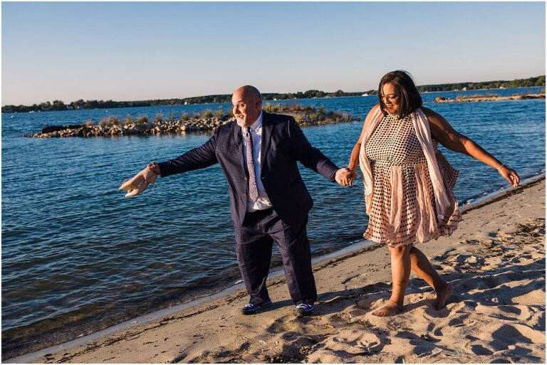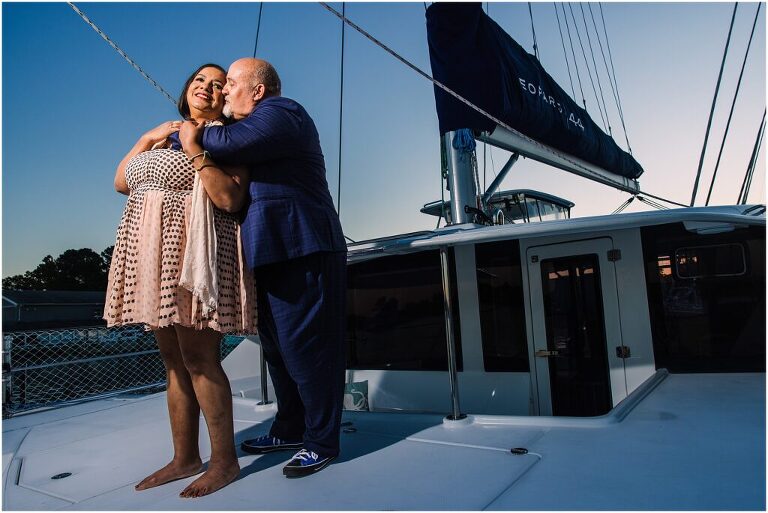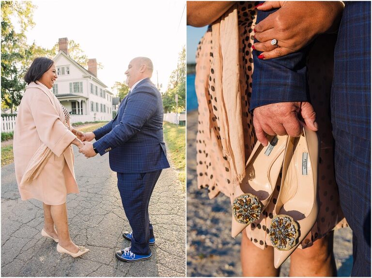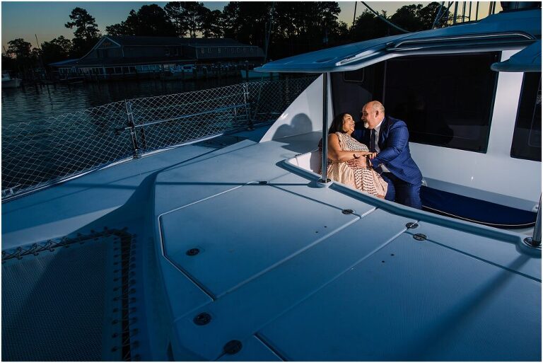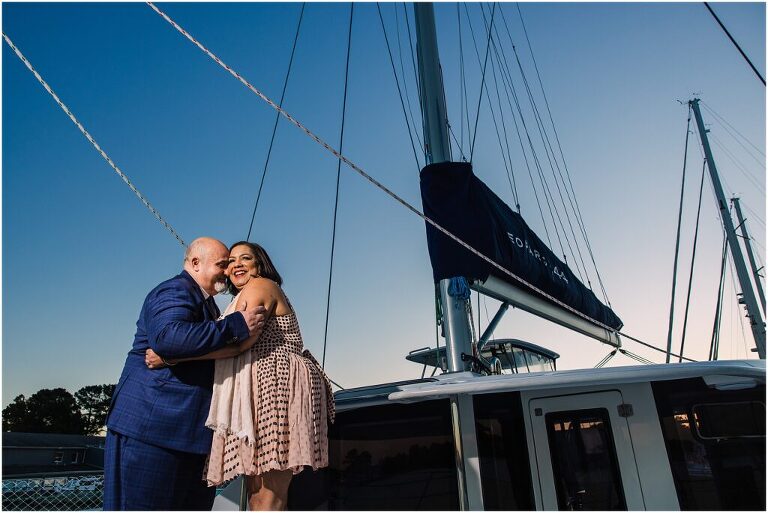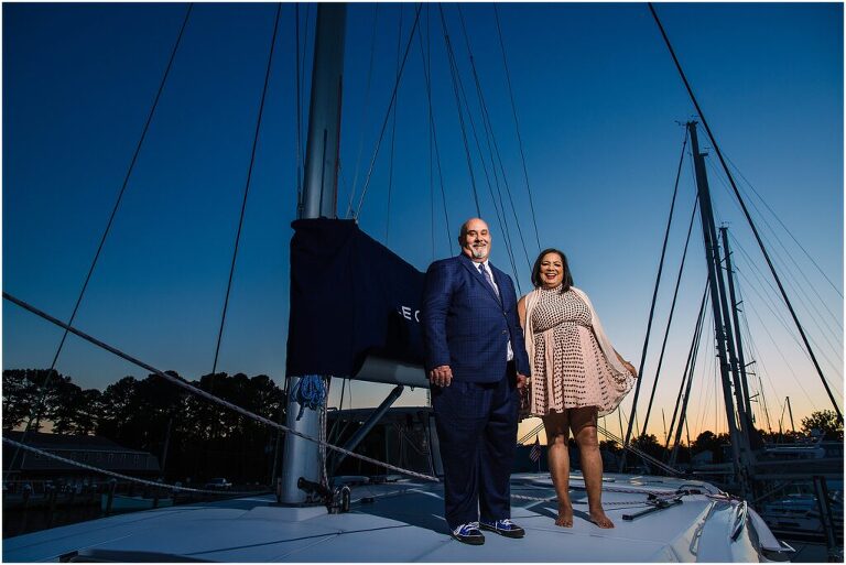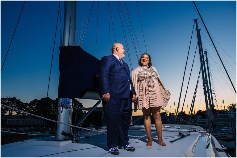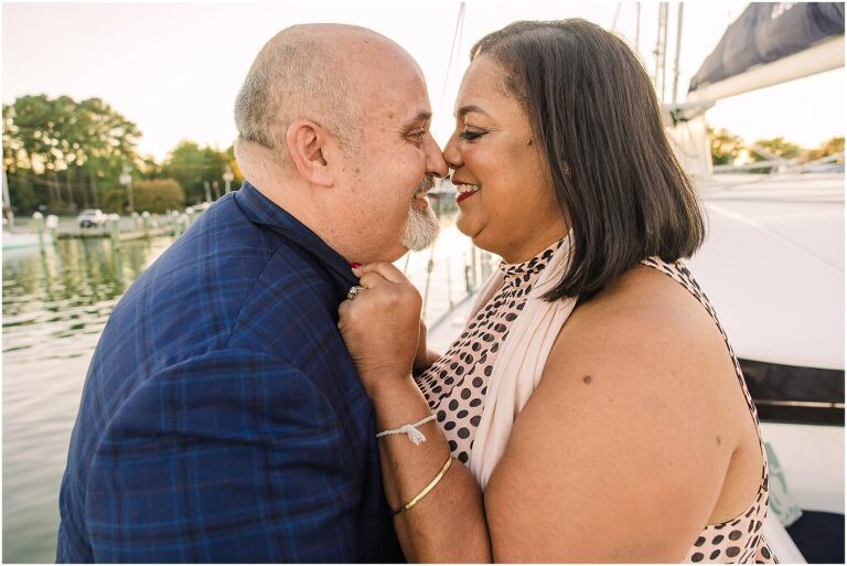 Tonie & Ken met me in Oxford, Maryland for their engagement shoot, a place where Tonie has a lot of family history. We started at the Nellie Brooks Leatherberry Cook Shop built in the 1940’s, now an African American Museum, where Tonie’s grandmother used to sell amazing soups and pies for the churchgoers! Next we visited the center of town to see the ferry making it rounds and went a walk along the strand beach. We ended on our sailboat for some fun sunset images! These two are a blast and love to laugh together. I can’t wait for the wedding day next year!