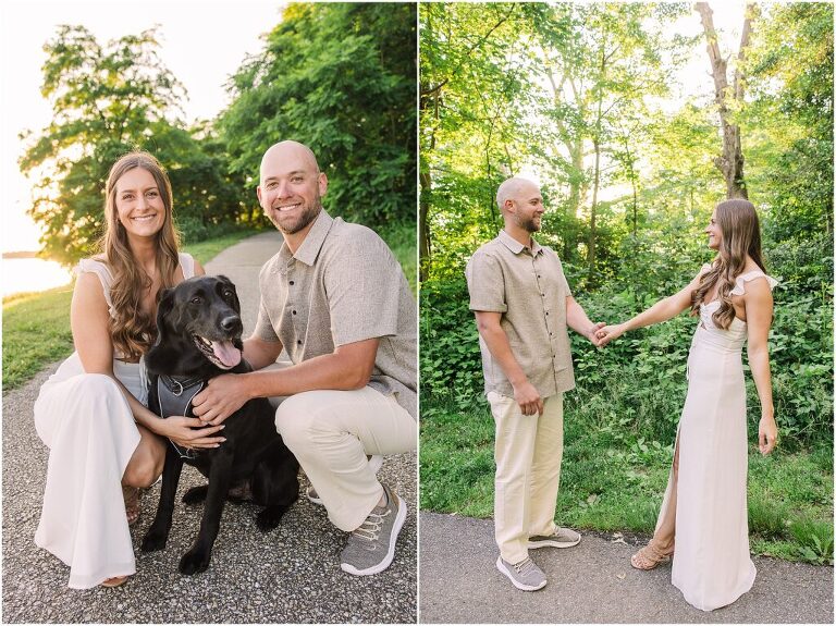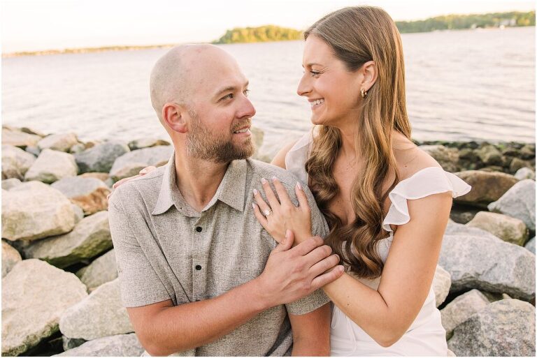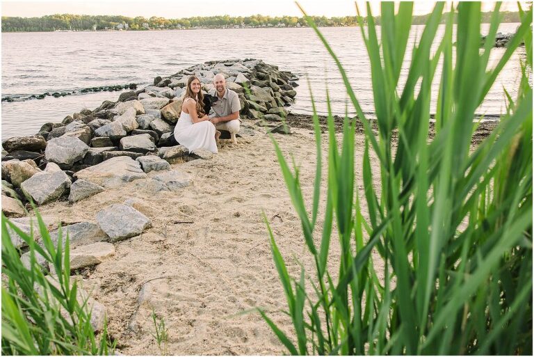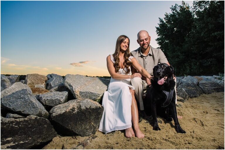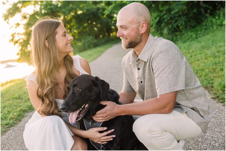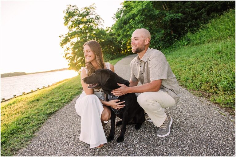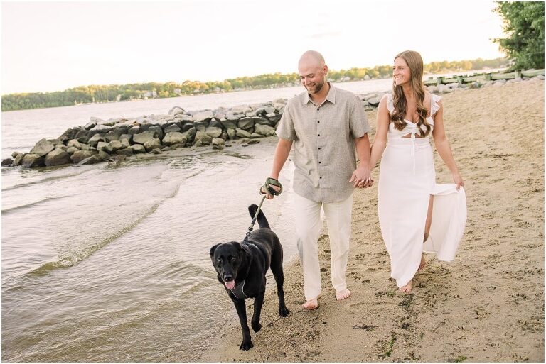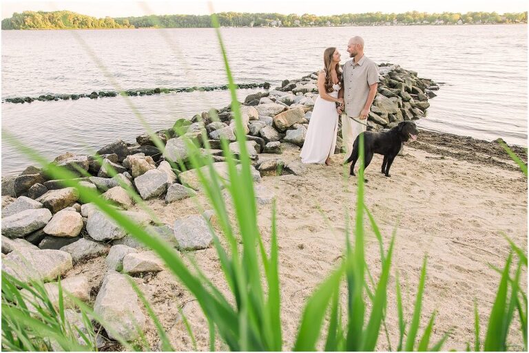I met Emma & Jake at Quiet Waters Park in Annapolis, Maryland for their spring engagement session. They brought along their black lab Bud who absolutely loved checking everything out and exploring the beach! Emma & Jake both love the water and the South River backdrop was the perfect setting showing off the beauty of the bay. These two first met at country concert and will be sharing a first dance this fall at Herrington on the Bay to the same music!