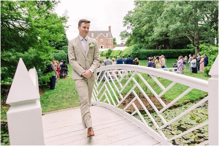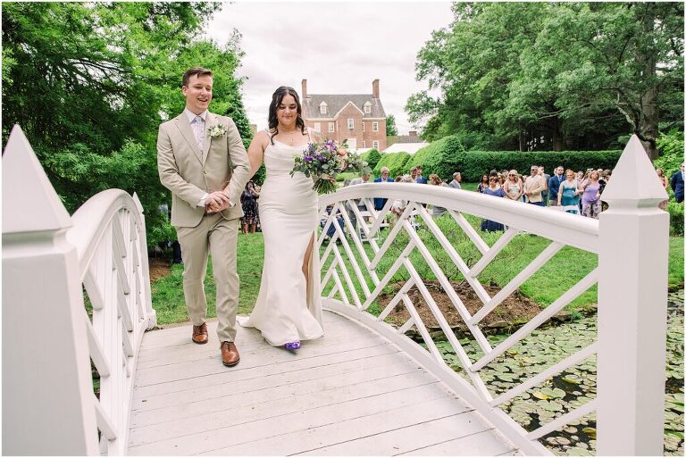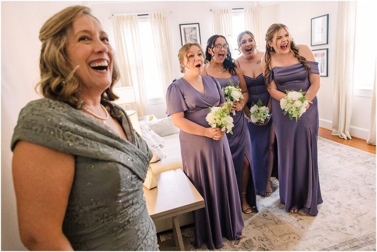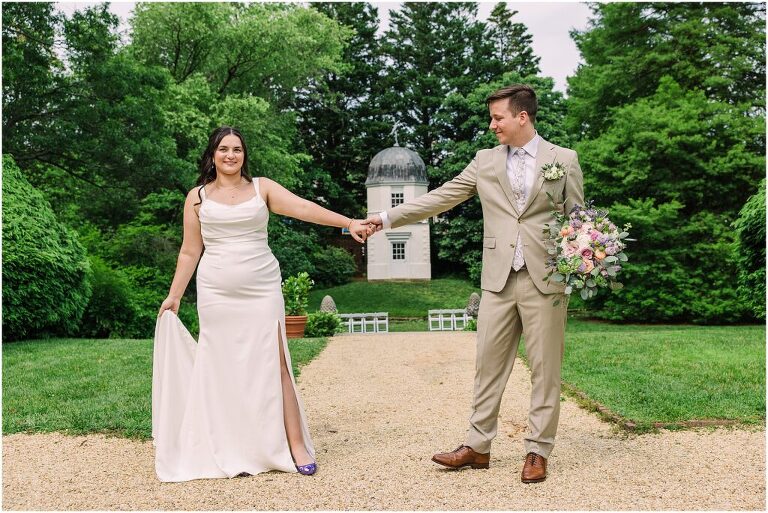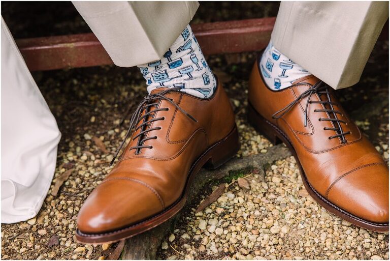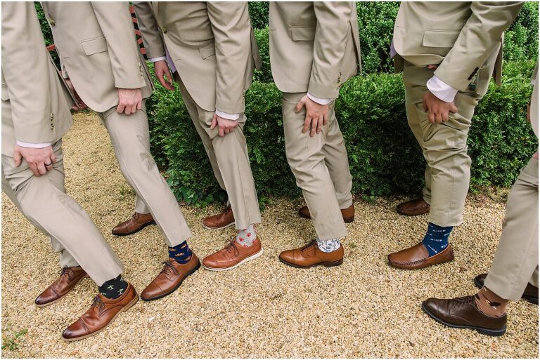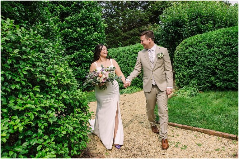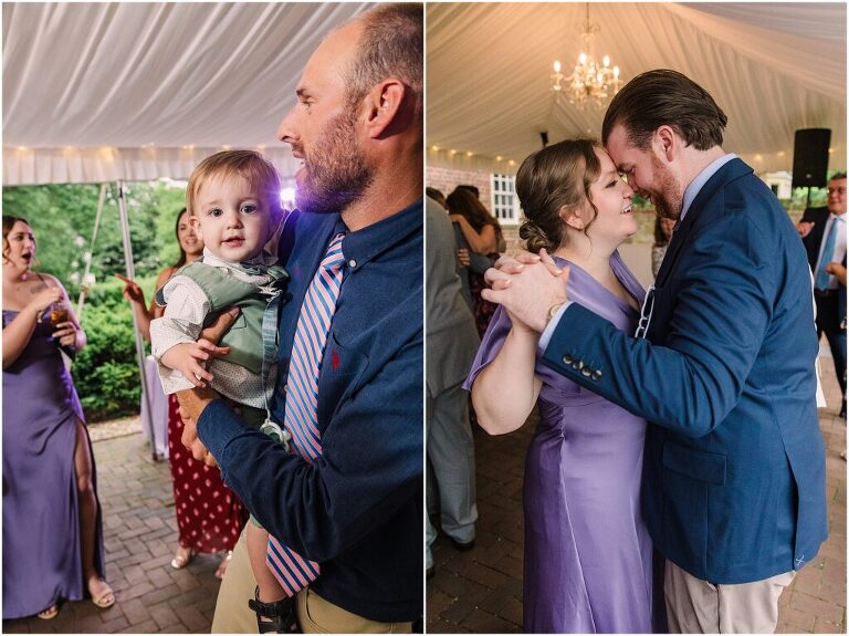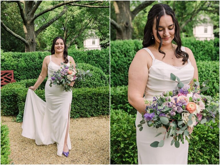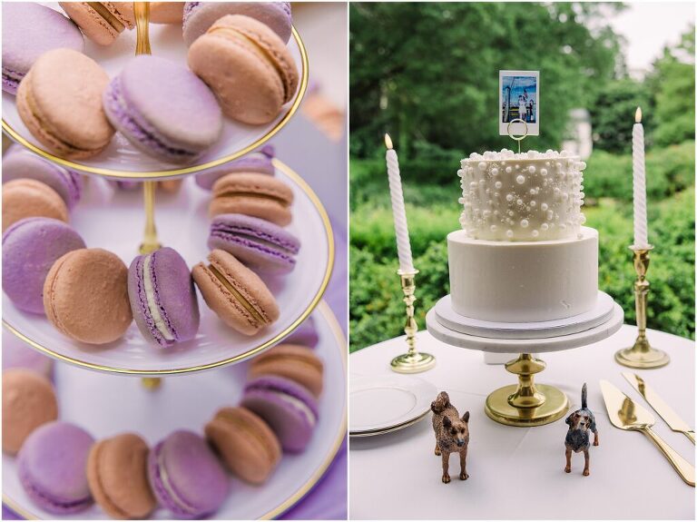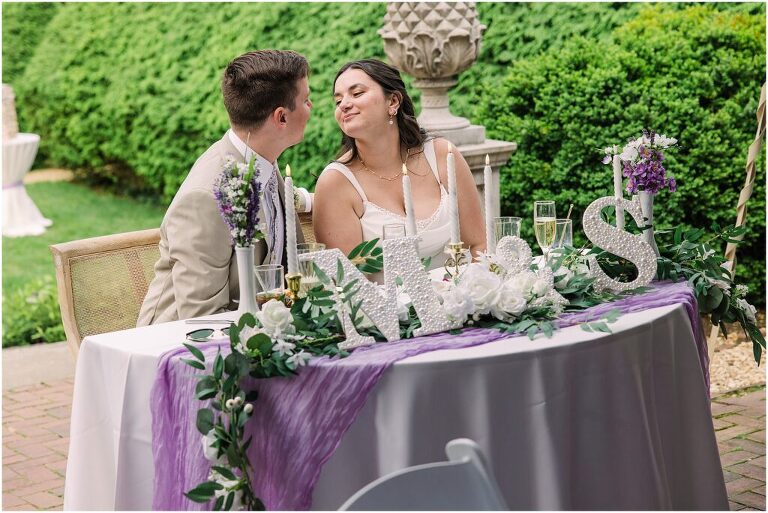 Sara & Mike celebrated their beautiful garden party wedding at the William Paca House & Garden in Annapolis, Maryland. The main color of the day was purple and included some gorgeous heels, wisteria colored bridesmaid dresses and ties, and even purple macaroons! Sara loves to craft and she created so many amazing details for her wedding. My favorite was the custom decoupage jenga set she created with colorful flower patterns! There was also a neat custom place card board with room tag keys for each of their guests. Mike picked out tie clips fitting for each of his groomsmen including a lobster, mustache, anchor, keyboard and fishhook. To go along with the purple theme, we did a fun lighting shot in a greenery tunnel towards the end of the night! Congratulations Sara & Mike!