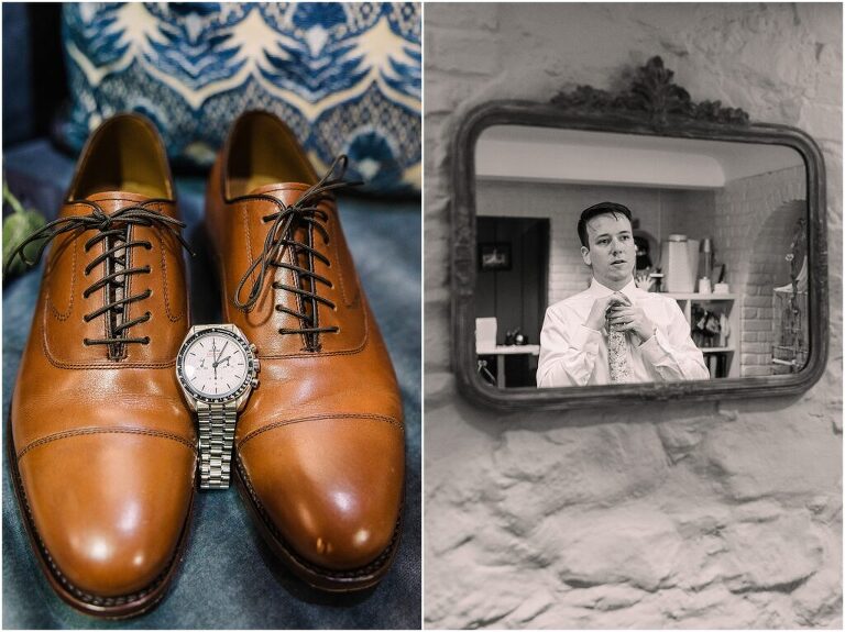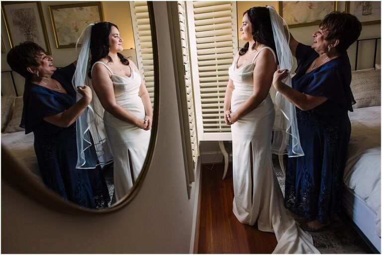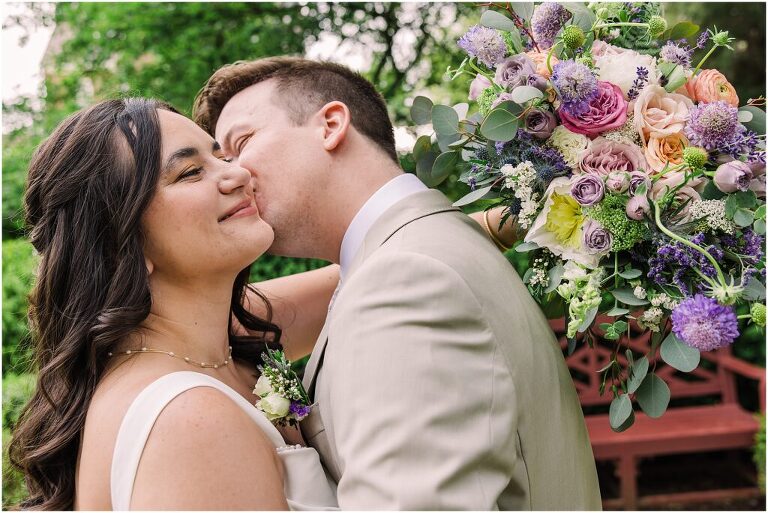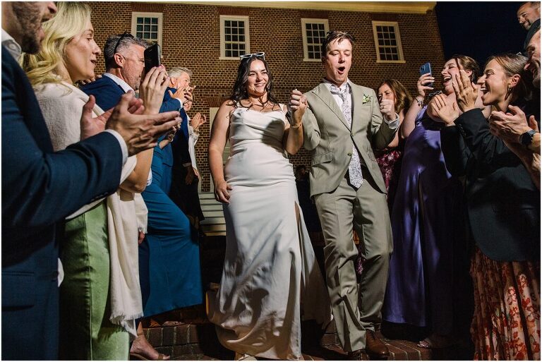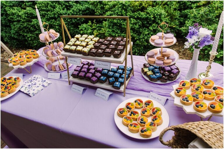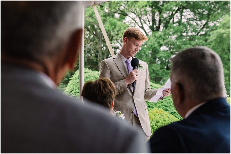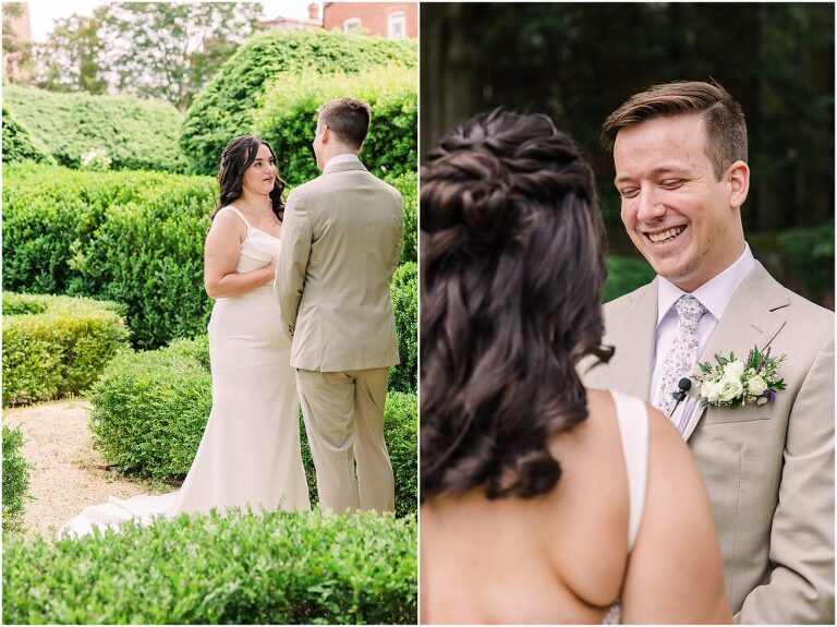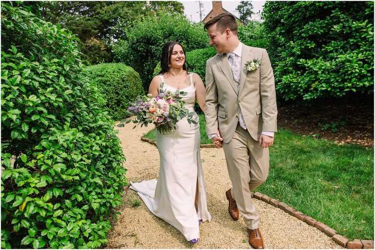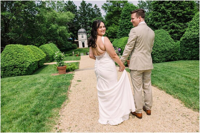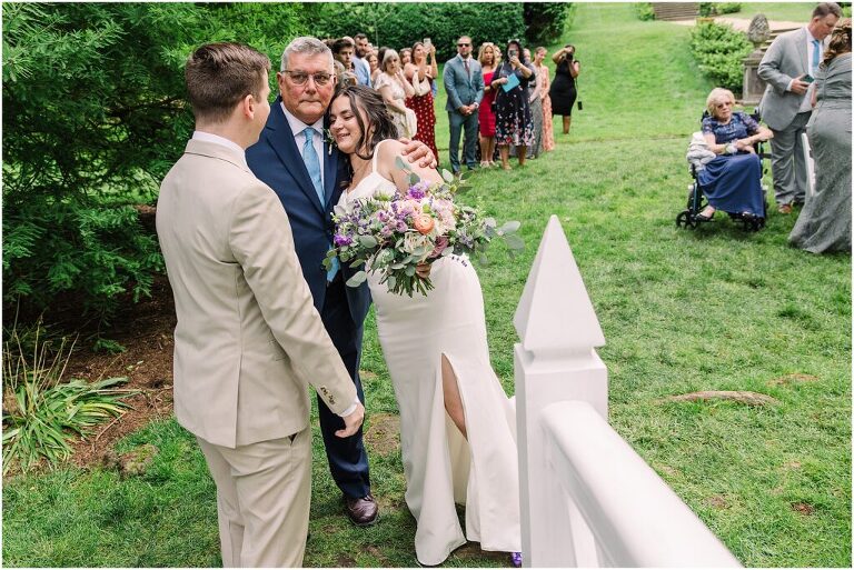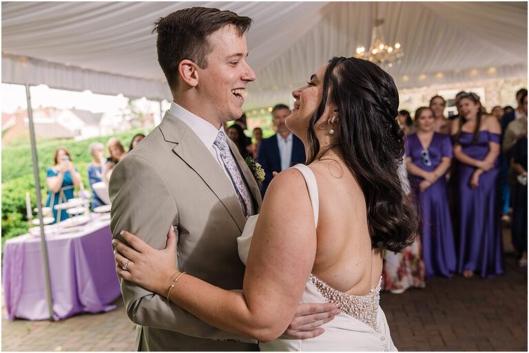Sara & Mike celebrated their beautiful garden party wedding at the William Paca House & Garden in Annapolis, Maryland. The main color of the day was purple and included some gorgeous heels, wisteria colored bridesmaid dresses and ties, and even purple macaroons! Sara loves to craft and she created so many amazing details for her wedding. My favorite was the custom decoupage jenga set she created with colorful flower patterns! There was also a neat custom place card board with room tag keys for each of their guests. Mike picked out tie clips fitting for each of his groomsmen including a lobster, mustache, anchor, keyboard and fishhook. To go along with the purple theme, we did a fun lighting shot in a greenery tunnel towards the end of the night! Congratulations Sara & Mike!