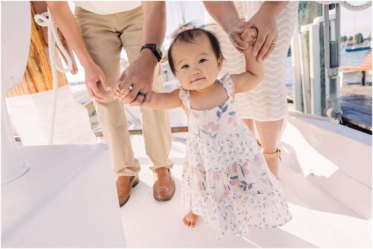 Evelyn just turned 12 months old and for the weekend her family visited beautiful Inn at Perry Cabin in St. Michaels, Maryland! She loved exploring the property and her sweet smiles were contagious! She is about to walk any day now and enjoyed standing on the skipjack and the lawn. Evelyn also loved checking out the flowers in the garden, especially the yellow ones which are her favorite color!