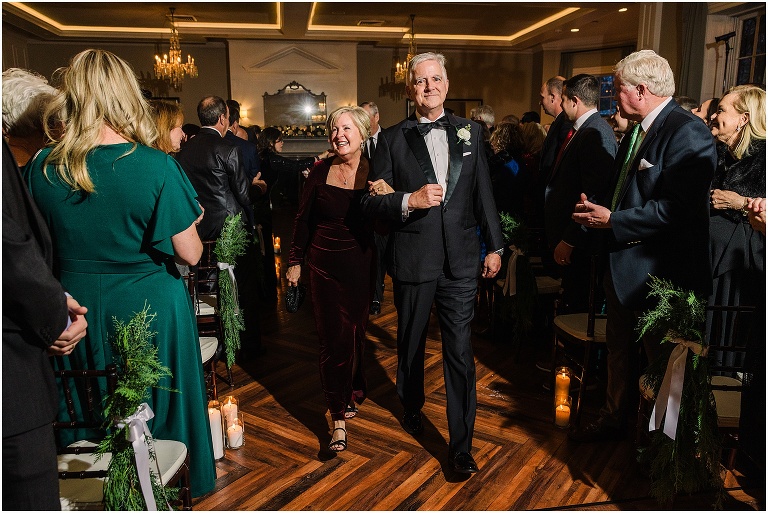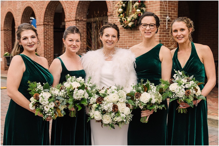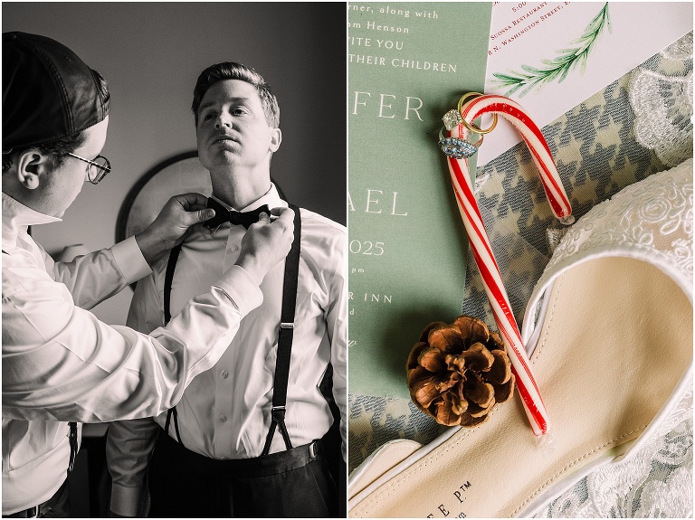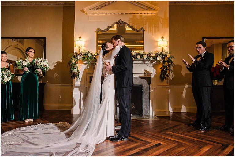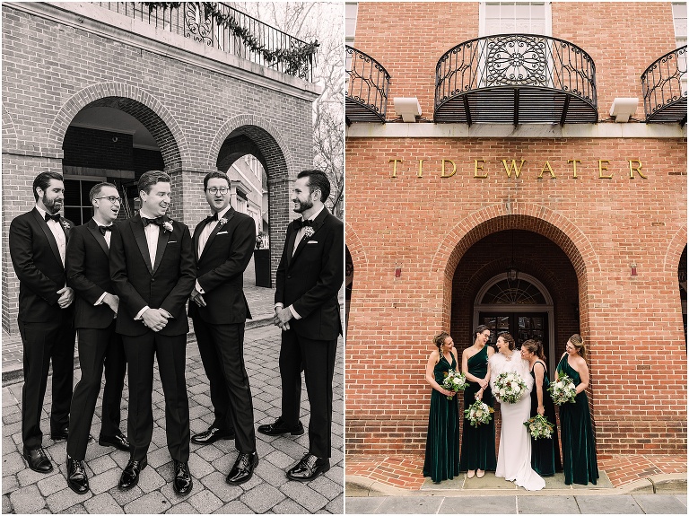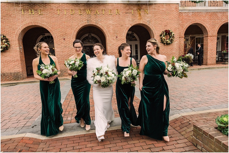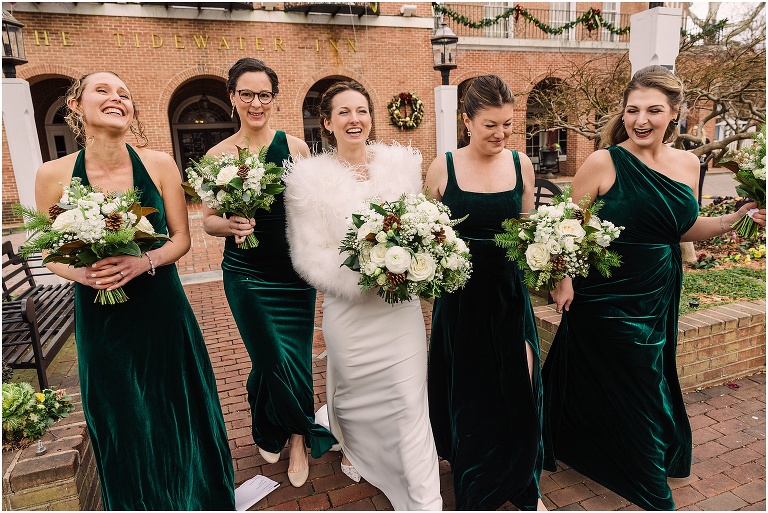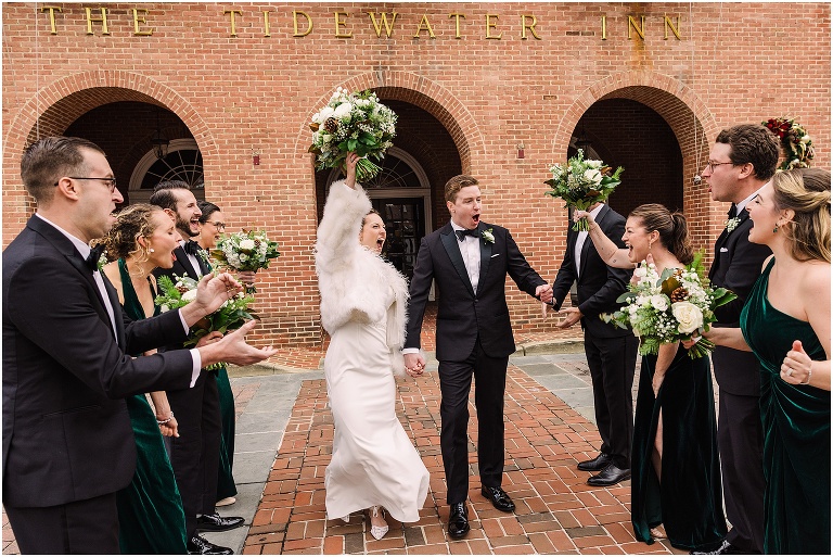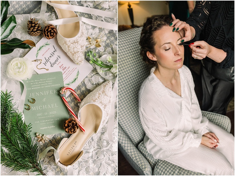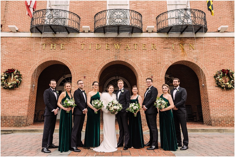 Jenn and Mike adore everything Christmas and brought that festive spirit to their stunning winter wedding at The Tidewater Inn in Easton, Maryland. The day was filled with elegant details—lush greenery and gold accents, velvet emerald bridesmaid dresses, and timeless black tuxes. We began with a first look in the gardens, followed by portraits with their bridal party and family. Their ceremony, officiated by Mike’s uncle, glowed with candlelight in the Crystal Room. The celebration continued in the Gold Ballroom, where heartfelt speeches sparked laughter, first dances were full of sweetness, and the night flowed seamlessly into an unforgettable party. With a romantic atmosphere from start to finish, it was truly the perfect December wedding.