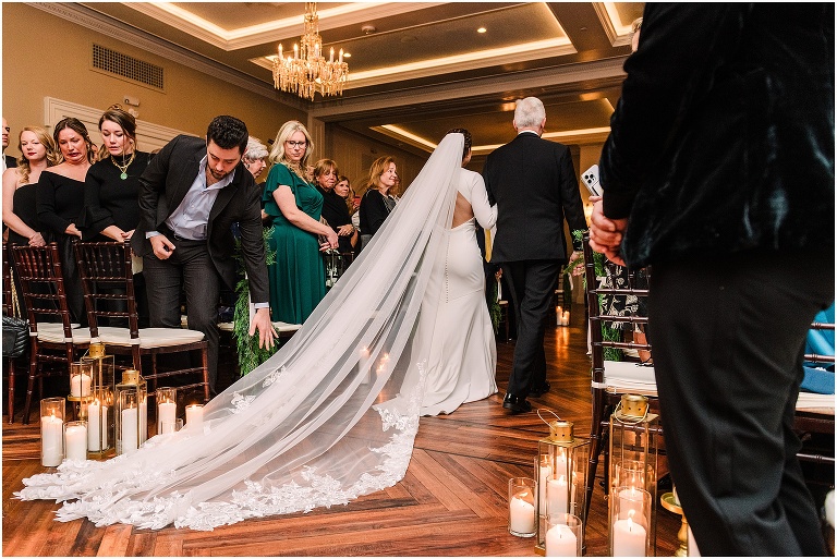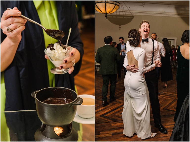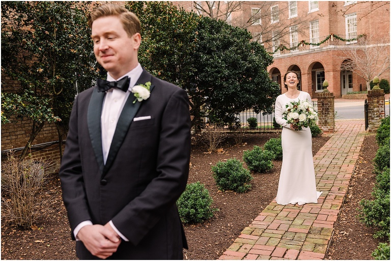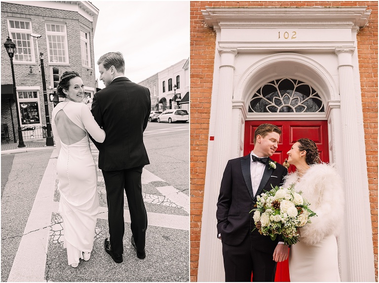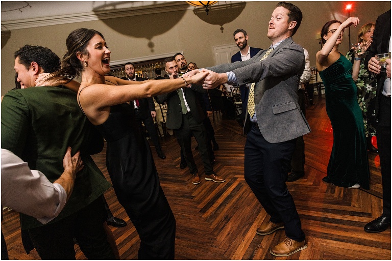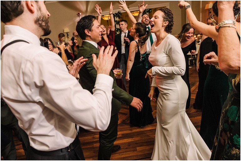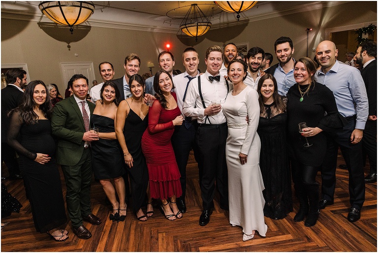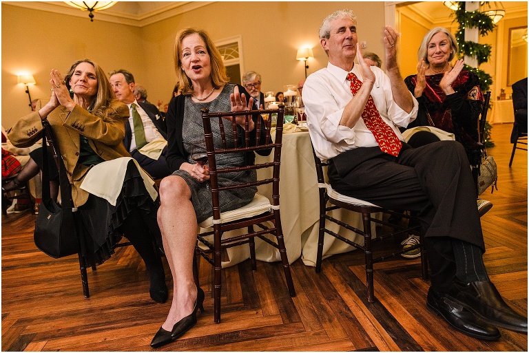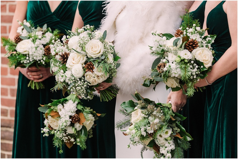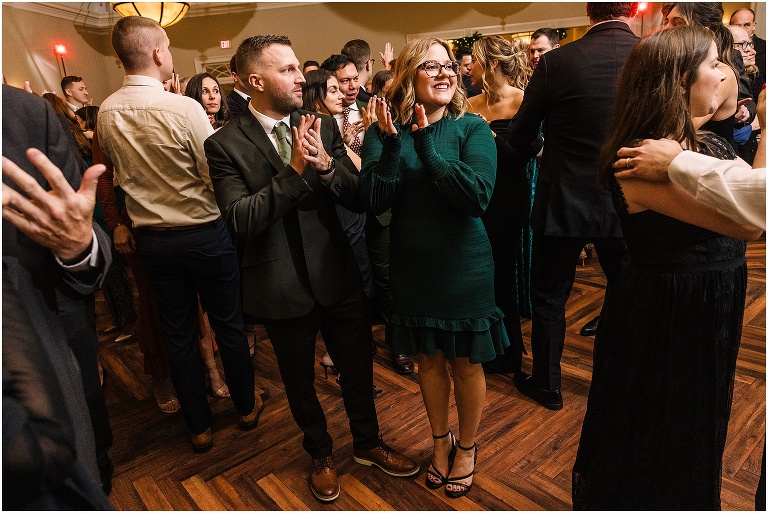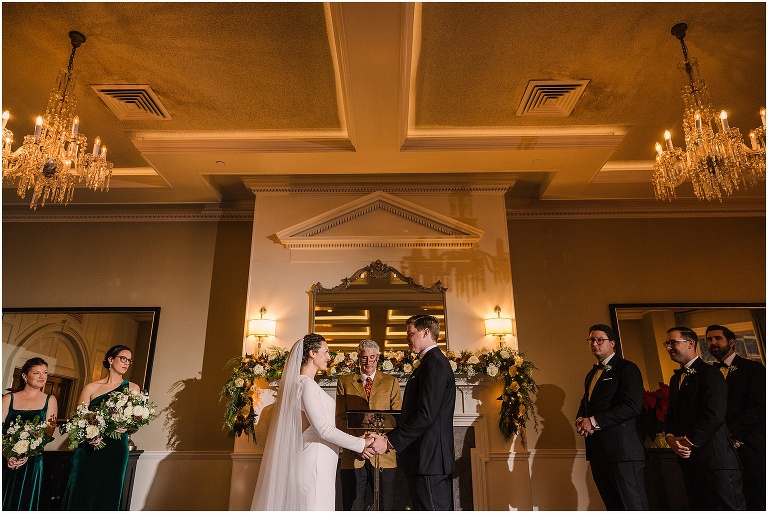 Jenn and Mike adore everything Christmas and brought that festive spirit to their stunning winter wedding at The Tidewater Inn in Easton, Maryland. The day was filled with elegant details—lush greenery and gold accents, velvet emerald bridesmaid dresses, and timeless black tuxes. We began with a first look in the gardens, followed by portraits with their bridal party and family. Their ceremony, officiated by Mike’s uncle, glowed with candlelight in the Crystal Room. The celebration continued in the Gold Ballroom, where heartfelt speeches sparked laughter, first dances were full of sweetness, and the night flowed seamlessly into an unforgettable party. With a romantic atmosphere from start to finish, it was truly the perfect December wedding.