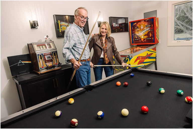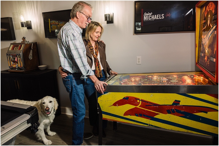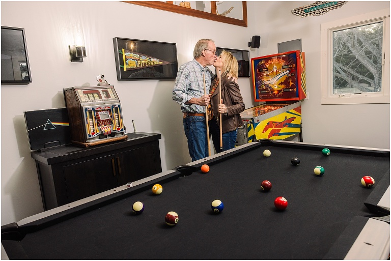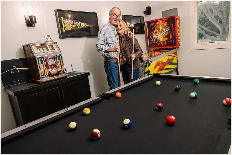 We wrapped up the session with a few fun shots in their game room, complete with an awesome pinball machine and pool table — the perfect ending to a relaxed and personal shoot that truly reflected them.